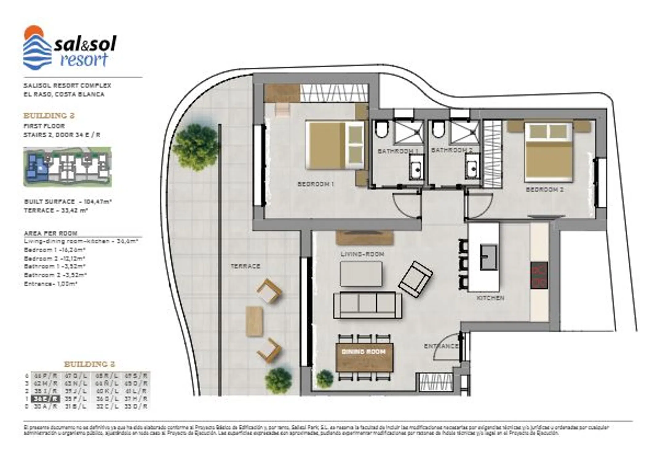 Descubre el exclusivo complejo Sal&Sol Resort en Guardamar del Segura, donde la elegancia se fusiona con la comodidad. Este moderno desarrollo presenta apartamentos de diseño de 2 dormitorios y 2 baños, con tamaños que alcanzan hasta los 235m2 y 5 villas adosadas de 3 dormitorios, 2 baños y un aseo de cortesía. Ubicado en una zona protegida de parques con jardines de cítricos y lagunas salinas, el complejo ofrece amplias terrazas que brindan impresionantes vistas al mar. Ideal para aquellos que buscan un hogar durante todo el año, nómadas digitales en busca de inspiración, o inversores que desean oportunidades de alquiler, SaliSol Resort se destaca por su versatilidad y calidad de vida excepcional. El complejo, rodeado de naturaleza, cuenta con una piscina climatizada, área verde y gimnasio disponible todo el año. Además, ofrece comodidades como un espacio de coworking, oficina inteligente, punto de café las 24 horas y carga para autos y scooters eléctricos. La conexión a Internet de fibra óptica de alta velocidad garantiza una conectividad óptima en todo momento. El diseño arquitectónico es otro punto destacado, con una fachada ondulada única creada por arquitectos de renombre de Dubái. Techos altos y ventanas panorámicas ofrecen una luminosidad excepcional. Las cocinas completamente equipadas con electrodomésticos de alta gama añaden un toque de lujo. Cada habitación está equipada con aire acondicionado central para un confort óptimo. La calidad de vida en Guardamar es insuperable, con una pluviometría baja, temperaturas mediterráneas a lo largo del año y una rica oferta de actividades deportivas. Desde deportes acuáticos hasta instalaciones deportivas de última generación, Guardamar del Segura se presenta como el lugar ideal para disfrutar de la vida activa en cualquier temporada. Con inmejorables conexiones a municipios circundantes y fácil acceso a importantes vías como la N332 y la AP-7, el aeropuerto se encuentra a menos de 30 minutos en coche. Descubre el estilo de vida único que Sal&Sol Resort tiene para ofrecer en la codiciada Guardamar del Segura. ¡Contáctanos hoy para programar tu visita y hacer de este lugar tu nuevo hogar!