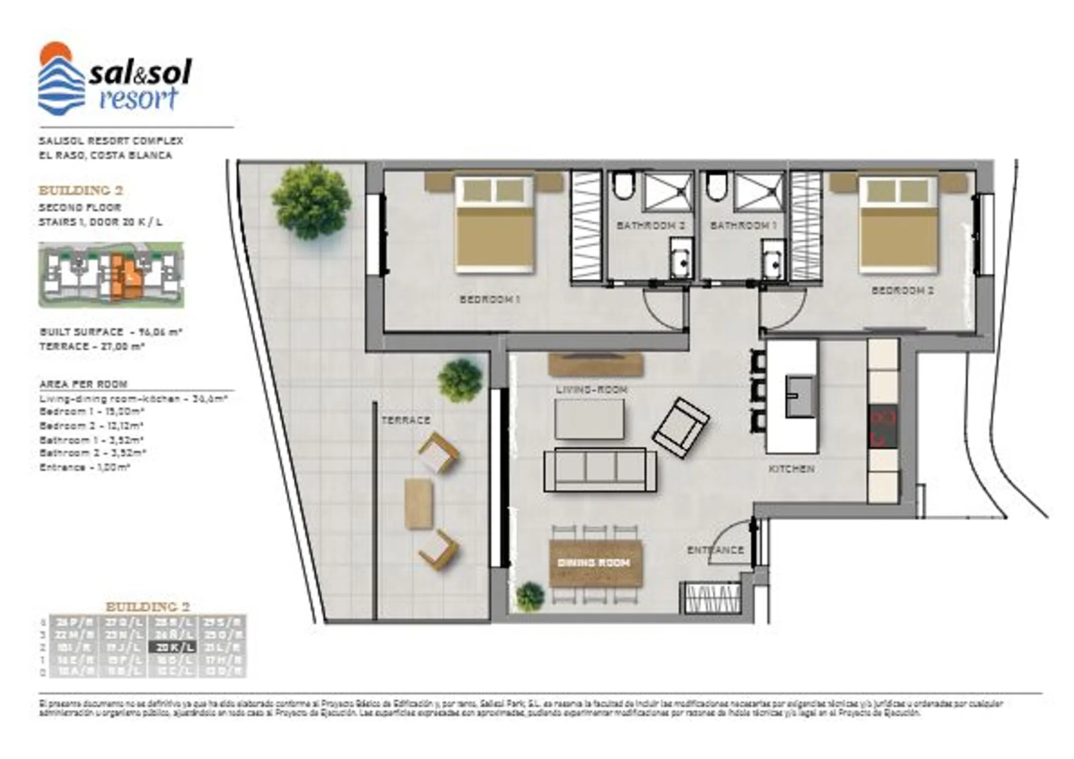 Descubre el exclusivo complejo Sal&Sol Resort en Guardamar del Segura, donde la elegancia se fusiona con la comodidad. Este moderno desarrollo presenta apartamentos de diseño de 2 dormitorios y 2 baños, con tamaños que alcanzan hasta los 235m2 y 5 villas adosadas de 3 dormitorios, 2 baños y un aseo de cortesía. Ubicado en una zona protegida de parques con jardines de cítricos y lagunas salinas, el complejo ofrece amplias terrazas que brindan impresionantes vistas al mar. Ideal para aquellos que buscan un hogar durante todo el año, nómadas digitales en busca de inspiración, o inversores que desean oportunidades de alquiler, SaliSol Resort se destaca por su versatilidad y calidad de vida excepcional. El complejo, rodeado de naturaleza, cuenta con una piscina climatizada, área verde y gimnasio disponible todo el año. Además, ofrece comodidades como un espacio de coworking, oficina inteligente, punto de café las 24 horas y carga para autos y scooters eléctricos. La conexión a Internet de fibra óptica de alta velocidad garantiza una conectividad óptima en todo momento. El diseño arquitectónico es otro punto destacado, con una fachada ondulada única creada por arquitectos de renombre de Dubái. Techos altos y ventanas panorámicas ofrecen una luminosidad excepcional. Las cocinas completamente equipadas con electrodomésticos de alta gama añaden un toque de lujo. Cada habitación está equipada con aire acondicionado central para un confort óptimo. La calidad de vida en Guardamar es insuperable, con una pluviometría baja, temperaturas mediterráneas a lo largo del año y una rica oferta de actividades deportivas. Desde deportes acuáticos hasta instalaciones deportivas de última generación, Guardamar del Segura se presenta como el lugar ideal para disfrutar de la vida activa en cualquier temporada. Con inmejorables conexiones a municipios circundantes y fácil acceso a importantes vías como la N332 y la AP-7, el aeropuerto se encuentra a menos de 30 minutos en coche. Descubre el estilo de vida único que Sal&Sol Resort tiene para ofrecer en la codiciada Guardamar del Segura. ¡Contáctanos hoy para programar tu visita y hacer de este lugar tu nuevo hogar!