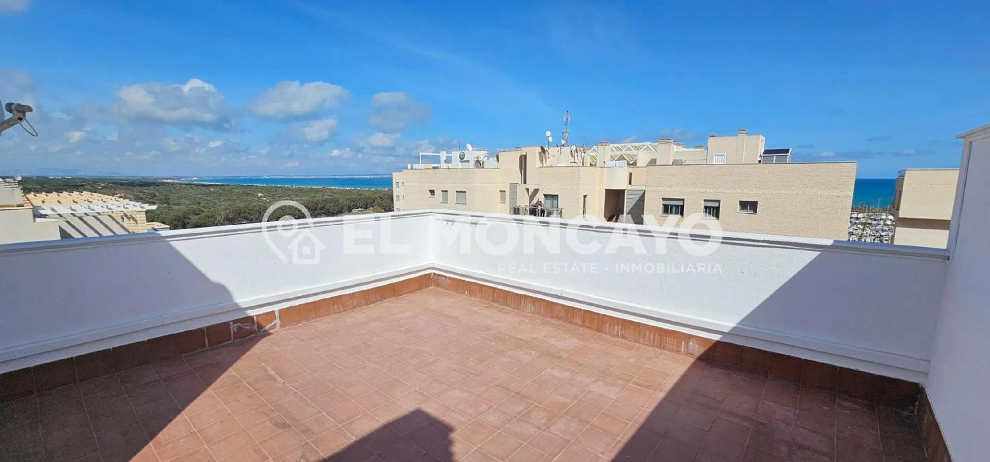 El Moncayo Properties pone a la venta este fantástico ático dúplex junto al puerto deportivo en Guardamar del Segura. La vivienda cuenta con 117m2 construidos distribuidos en las siguientes dependencias: En planta principal encontramos un amplio salón comedor, amueblado, con cocina americana totalmente equipada con electrodomésticos, split de aire acondicionado y acceso a una terraza con vistas al mar y a la pinada. Cuenta además con un aseo pequeño con aseo y lavabo. Mediante una escalera interior accedemos la primera planta donde encontramos tres dormitorios dobles con armarios empotrados, un baño completo con bañera, lavabo e inodoro y acceso a una terraza solárium con espectaculares vistas al paisaje. La urbanización además cuenta con amplias zonas ajardinadas, piscina comunitaria y plaza de aparcamiento en superficie. Junto a la pinada y al puerto deportivo, con impresionantes vistas al mar el cual se encuentra a tan solo 600m, rodeado de naturaleza y a tan solo 5 minutos del centro de esta bonita localidad costera. Cerca de colegios, supermercados y demás servicios. No dejes pasar esta oportunidad. Llámanos y ven a visitarla!