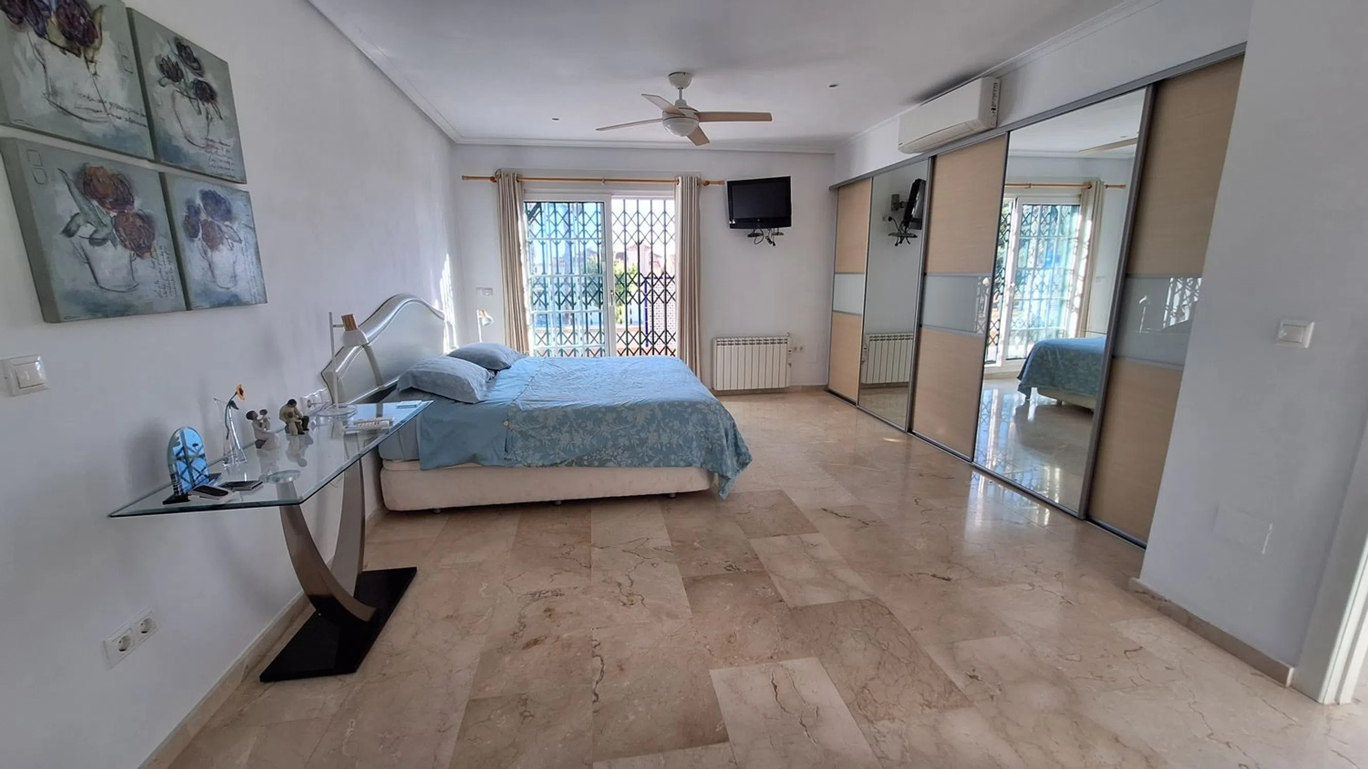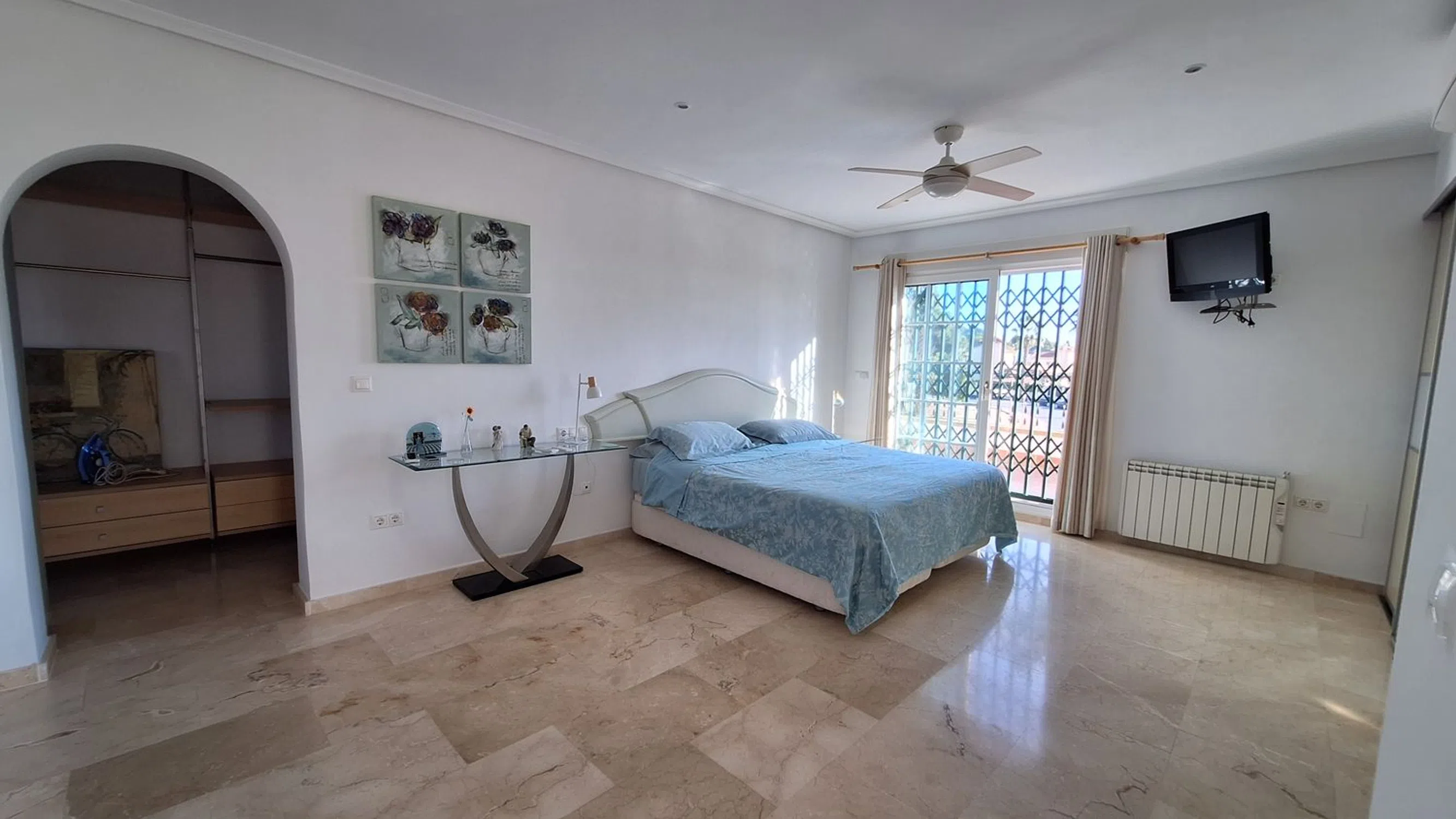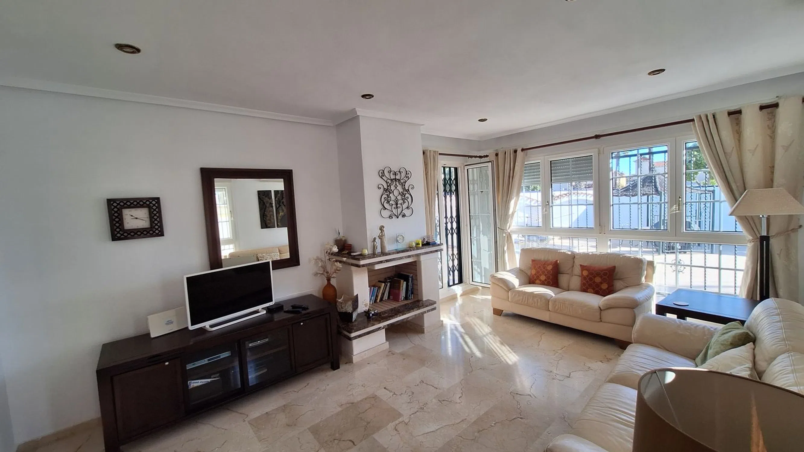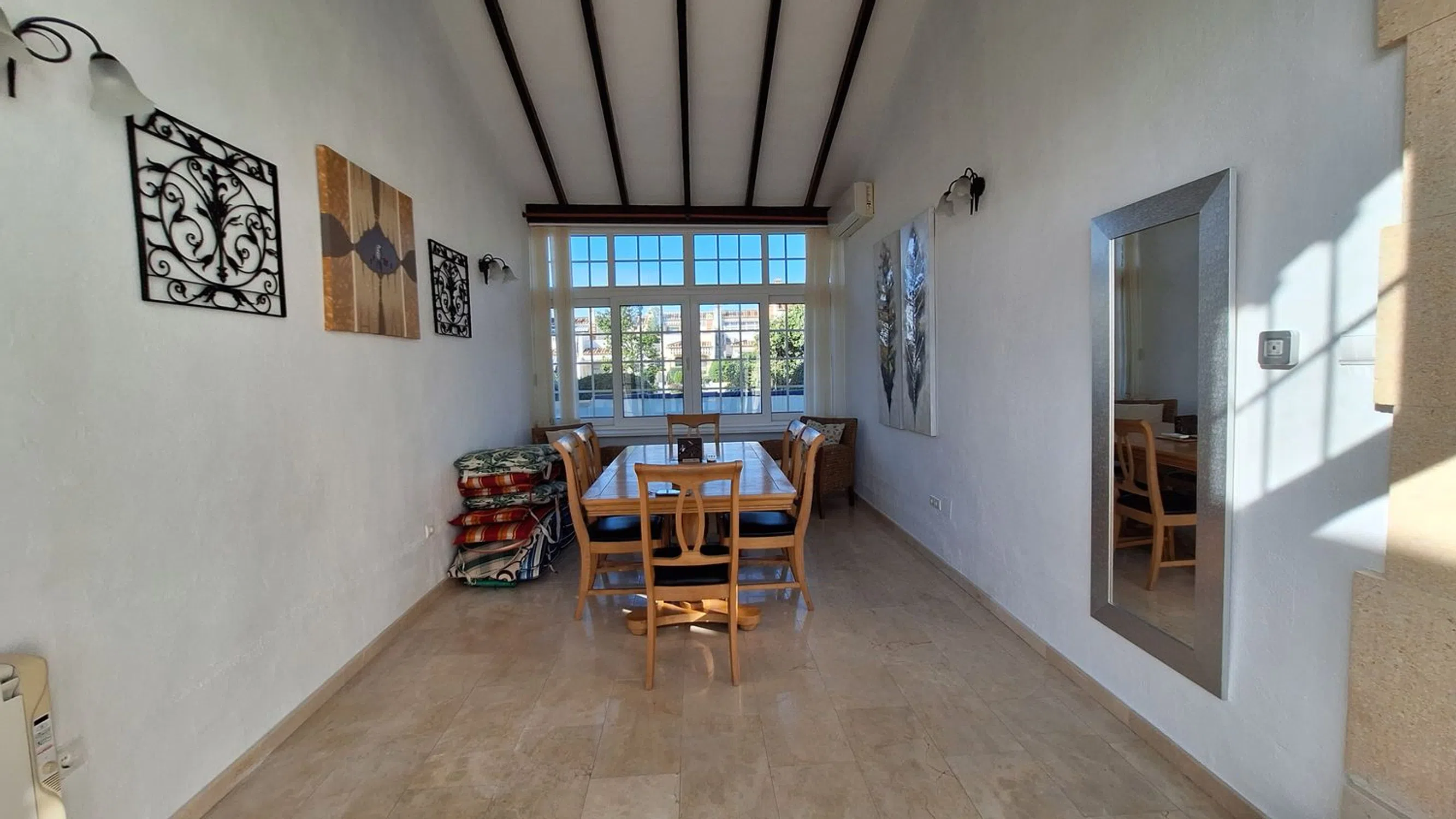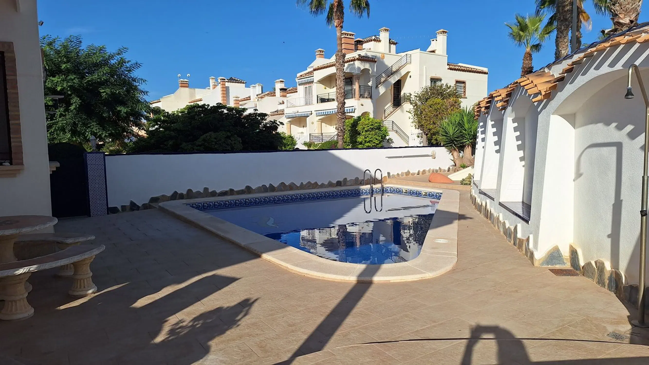 A rare opportunity to purchase this spacious and well-presented detached villa, ideally located on a 400 m² corner plot within easy walking distance of the popular bars, restaurants, and amenities of El Raso. This attractive property offers a fantastic blend of comfort, versatility, and Mediterranean charm. Outside, you’ll find a large private swimming pool, off-road parking, and a garage, all surrounded by low-maintenance terraces perfect for relaxing or entertaining. Inside, the villa features a bright and airy lounge with large windows that flood the space with natural light, a separate fully fitted kitchen, and a conservatory currently used as a dining area. The ground floor also comprises two double bedrooms and a family bathroom, providing ideal accommodation for guests or family members. Upstairs, the spacious master suite includes an en-suite shower room, dressing area, and access to a private sun terrace — perfect for enjoying the sunshine and views. Additional spaces include a sun room and a gym area, adding flexibility to suit your lifestyle needs. The home benefits from air conditioning throughout and offers excellent potential for personalisation or investment. Whether you’re seeking a permanent residence, a family holiday home, or a rental opportunity, this property ticks every box. Oportunidad única de adquirir este amplio y bien presentado chalet independiente, situado en una parcela esquinera de 400 m², a muy poca distancia a pie de los populares bares, restaurantes y servicios de El Raso. Esta atractiva propiedad ofrece una fantástica combinación de comodidad, versatilidad y encanto mediterráneo. En el exterior encontrarás una gran piscina privada, aparcamiento dentro de la parcela y un garaje, todo rodeado de terrazas de bajo mantenimiento ideales para relajarse o recibir invitados. En el interior, la vivienda cuenta con un salón luminoso y espacioso gracias a sus amplios ventanales, una cocina independiente totalmente equipada y un invernadero actualmente utilizado como comedor. La planta baja también dispone de dos dormitorios dobles y un baño familiar, proporcionando un alojamiento ideal para familiares o invitados. En la planta superior, la amplia suite principal incluye un cuarto de baño en suite con ducha, vestidor y acceso a una terraza solárium — perfecta para disfrutar del sol y las vistas. Además, la propiedad cuenta con una sala acristalada y un espacio de gimnasio, ofreciendo flexibilidad para adaptarse a tus necesidades. La vivienda dispone de aire acondicionado en toda la casa y ofrece excelente potencial para personalizar o invertir. Tanto si buscas una residencia permanente, una casa de vacaciones familiar o una oportunidad de inversión, esta propiedad lo tiene todo.