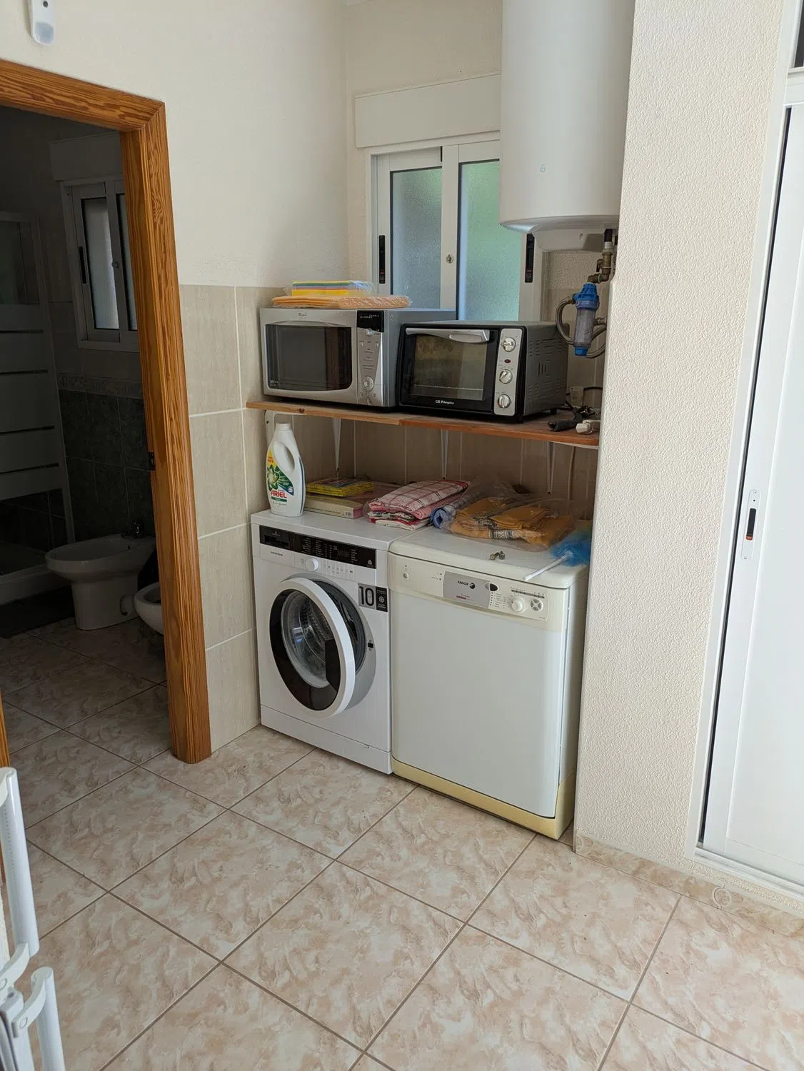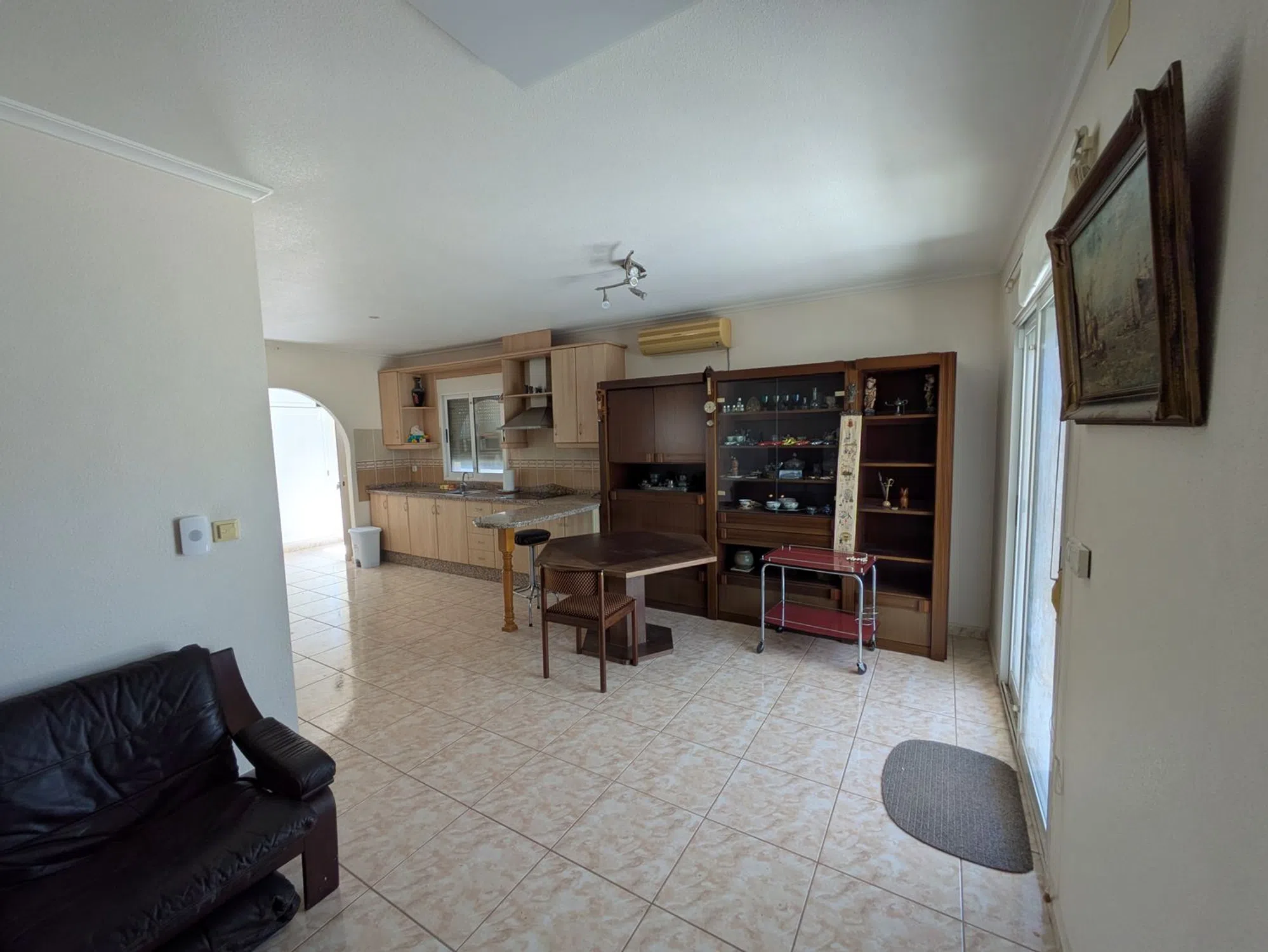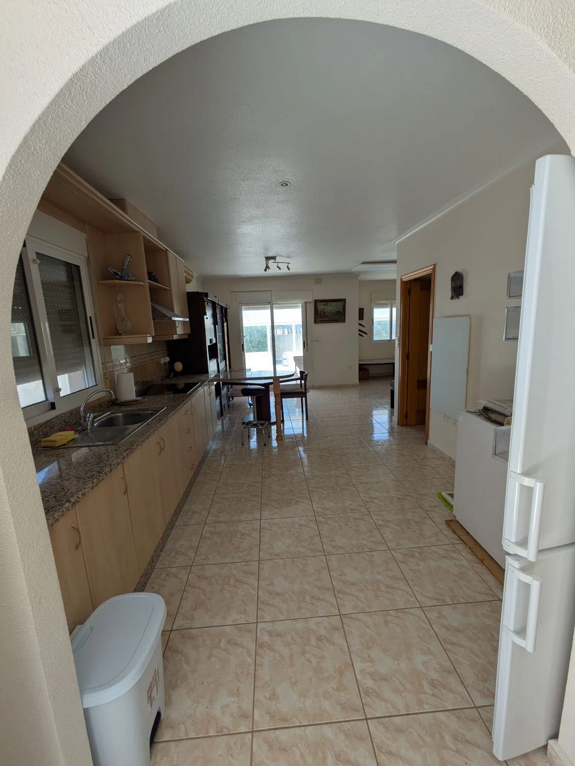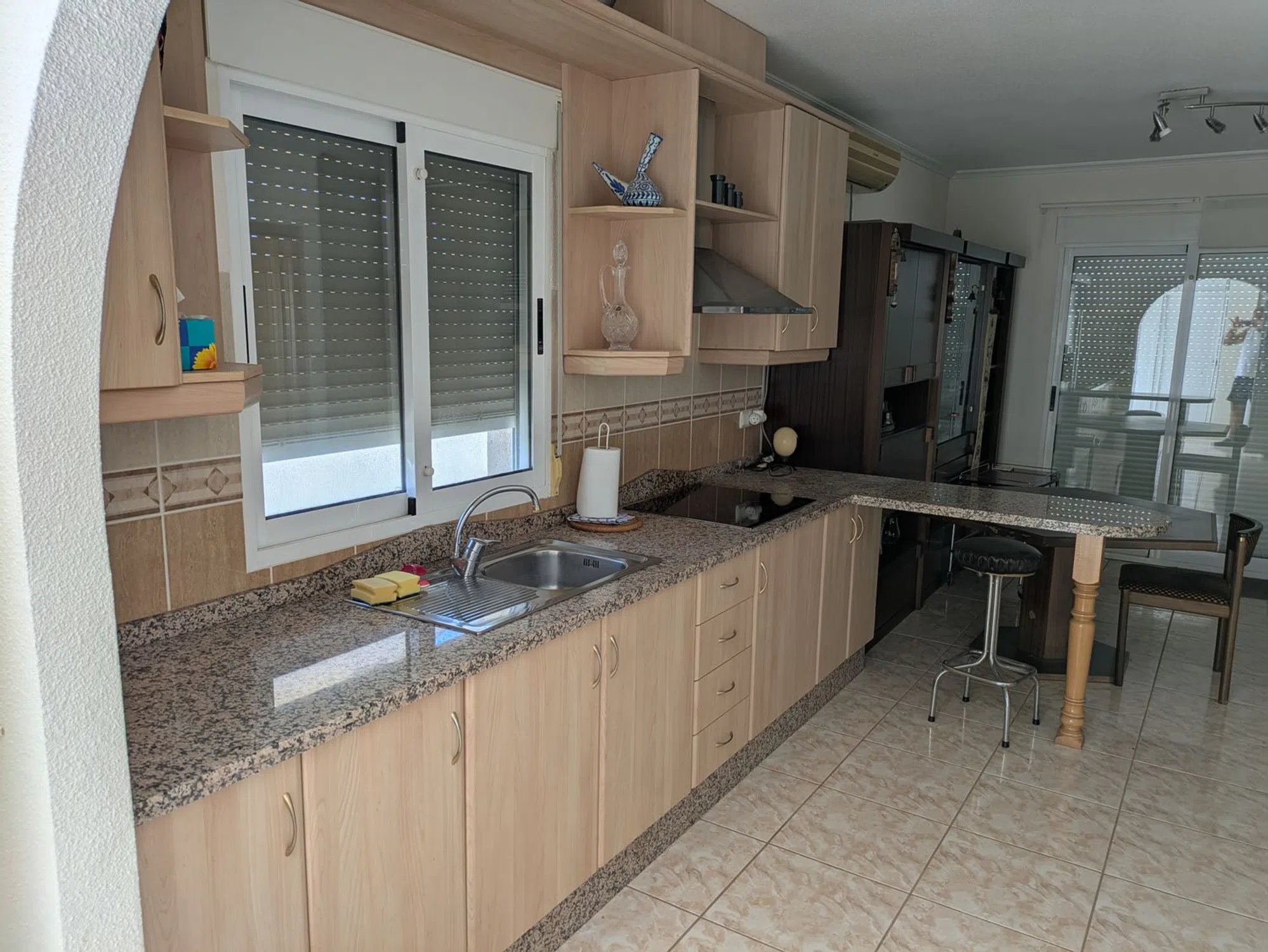 Planta baja: 2 dormitorios con 2 baños en suite, cocina-comedor-salón diáfano en forma de L, aire acondicionado, calefacción por suelo radiante, 6 paneles infrarrojos con termostato independiente (2 baños, 2 dormitorios, 2 salones-comedor). • Solárium y dormitorio en la primera planta, con acceso por escalera exterior. • Piscina de 7 x 3 m con cubierta sobre raíles de aluminio y policarbonato de 4 hojas entrelazadas. Vaciado con bomba nueva y sistema de electrólisis/sal en armario propio. • Taller independiente con toma de corriente trasera de 3,4 x 2,4 m. • Electrodomésticos: frigorífico/congelador, vitrocerámica, lavadora, lavavajillas, microondas y horno pequeño. Muebles, televisor de pantalla plana. • Terraza acristalada con 2 puertas con cerradura y 6 toldos con apertura manual. • Conexión de luz y agua. • Sistema de alarma en funcionamiento. • Pestillos de seguridad instalados en todas las puertas y ventanas corredizas del patio. • Restaurante en la finca abierto 6 días a la semana a 1 minuto a pie de la casa.