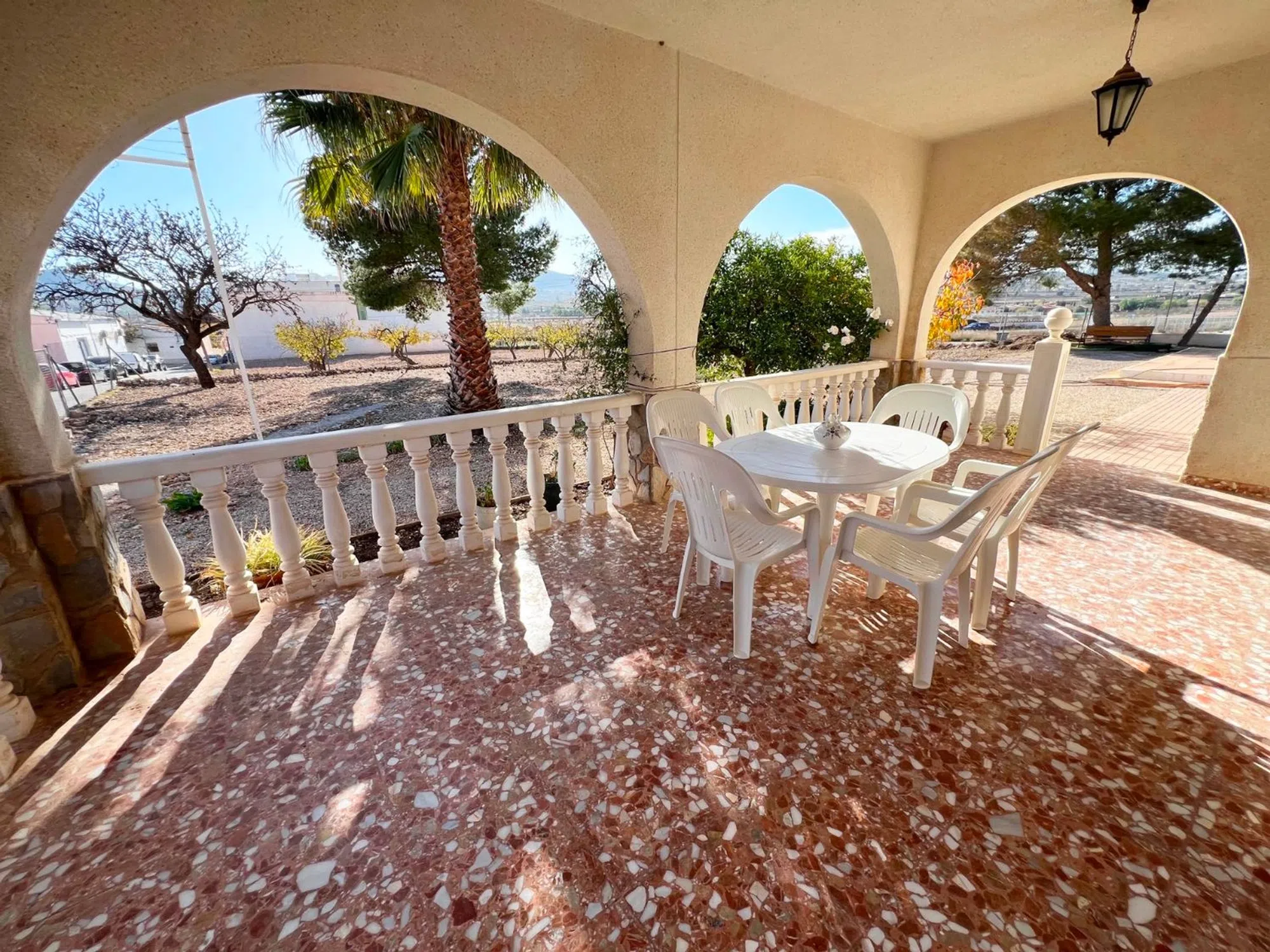 Os presentamos esta maravillosa villa situada en una ubicación inmejorable, a tan solo cinco minutos a pie del centro del pueblo. Desde aquí, tendrás a tu alcance todos los servicios necesarios: bares, restaurantes, supermercados, panadería, farmacia, centro médico, así como actividades culturales y deportivas para disfrutar en cualquier momento del año. La parcela está totalmente vallada, garantizando privacidad y seguridad. En el exterior, podrás disfrutar de una piscina con ducha, un precioso jardín con árboles frutales, un área de barbacoa, un trastero y un carport metálico. Además, el porche cubierto ofrece un espacio ideal para relajarse y contemplar las impresionantes vistas a las montañas que rodean el valle. La villa se distribuye en dos plantas y cuenta con un total de seis dormitorios y dos baños. En la planta baja encontramos un salón-comedor amplio y luminoso, la cocina, el lavadero, cuatro dormitorios y un baño completo. En la planta superior, hay dos dormitorios más, otro baño y una terraza-solarium desde la que se pueden disfrutar unas vistas espectaculares de las montañas y del entorno natural que rodea el pueblo. Lo mejor de esta propiedad es su ubicación privilegiada: cerca de todo lo necesario para el día a día, pero al mismo tiempo en un entorno tranquilo y apacible, donde poder disfrutar de la privacidad y de la naturaleza. Esta villa es perfecta para quienes buscan comodidad, espacio y estilo de vida mediterráneo en el corazón del Valle de Hondón.
