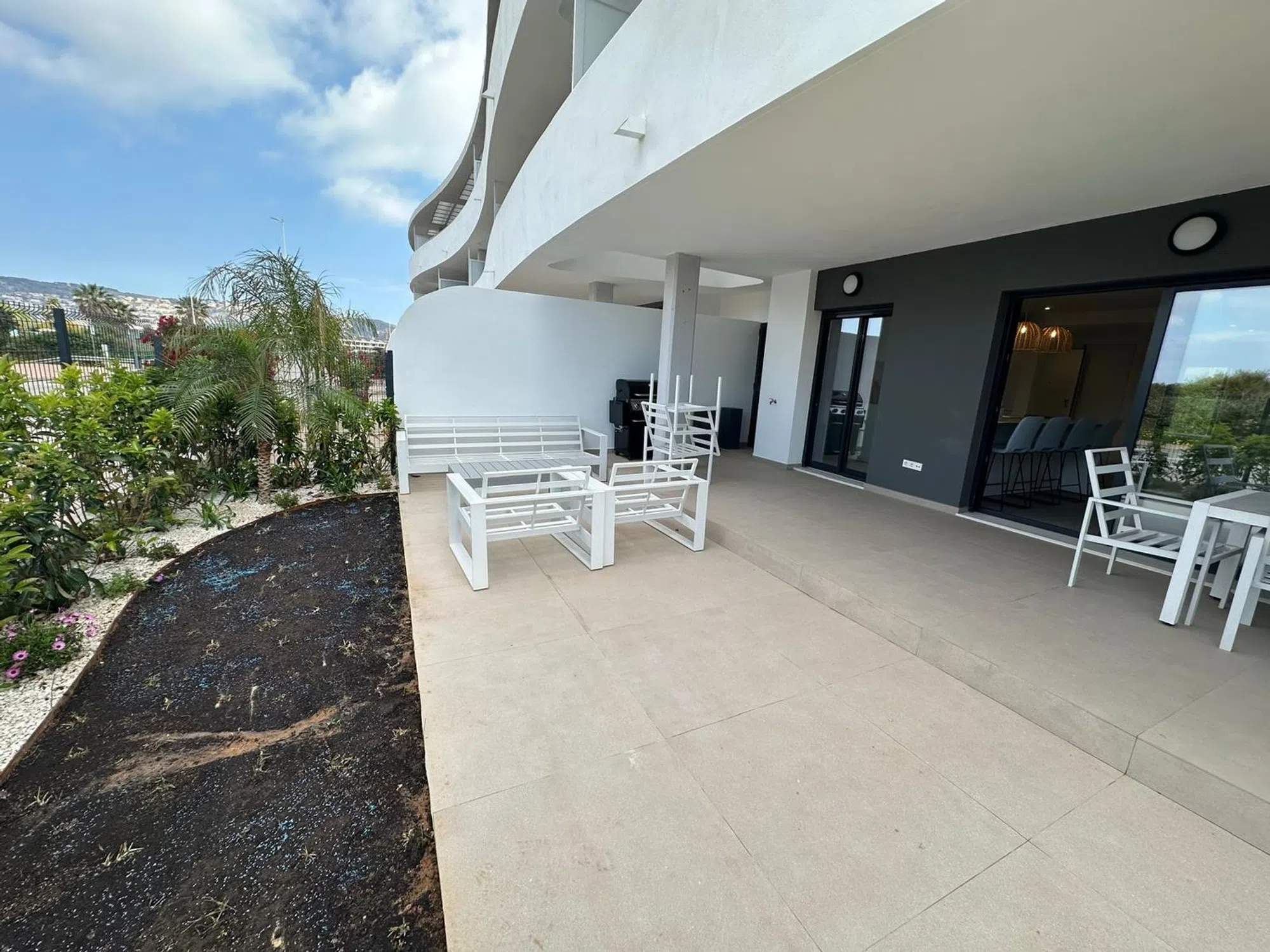 El piso está situado en la planta baja del edificio, lo que permite obtener un jardín privado, extra grande, 161m2. con 3 terrazas: terraza cubierta tiene 32,04m2, terraza descubierta tiene 13m2, segunda terraza descubierta tiene 22m2. El piso en sí consta de 3 dormitorios, 2 baños, salón comedor, cocina americana totalmente equipada, lavadero. El piso tiene 134,39 m2 construidos. El proyecto cuenta con cuidadas zonas comunes pensadas para la comodidad y disfrute de los propietarios: control de accesos, zonas ajardinadas, piscina con solarium, parking con preinstalación de puntos de carga para vehículos eléctricos y trasteros individuales. La piscina comunitaria contará con cloración salina e iluminación nocturna. Las zonas verdes comunes contarán con un sistema de riego por goteo programable para garantizar un consumo responsable del agua. El acceso interior a la urbanización contará con un sistema de videoportero y una taquilla exterior comunitaria para la recepción de pedidos. Todos los itinerarios dispondrán de rampas y anchura suficiente para facilitar el acceso y circulación de personas con movilidad reducida. Los ascensores tendrán acceso directo al garaje y estarán acabados en espejo y acero inoxidable, con alarma y servicio telefónico para emergencias.La iluminación de las zonas comunes se realizará con luminarias LED con detectores de presencia para reducir la contaminación lumínica y el gasto eléctrico.Las viviendas dispondrán de un sistema de seguridad y videovigilancia conectado a una central de alarmas con comunicación directa con la policía. En una urbanización exclusiva, con sólo 16 viviendas que tendrán una distribución moderna con amplios salones con cocina integrada, lavadero independiente, dormitorios con armarios empotrados y dos baños por vivienda. Con doble orientación y por tanto con ventilación cruzada y mucha luz natural. Todos los suelos de su vivienda serán de gres porcelánico, antideslizante en baños y terrazas. Las paredes y falsos techos serán de yeso laminado (doble placa para tabiquería con aislamiento térmico y acústico) y estarán pintados con pintura plástica lisa de color claro. La división entre viviendas y zonas comunes también tendrá un tabique de ladrillo cerámico. Ya sea por ocio o por trabajo, su vivienda dispondrá de la mejor conexión comunitaria a Internet de alta capacidad y redundante a través de fibra óptica y tomas de Internet en dormitorios y salón para garantizar el mejor acceso vía WiFi o cable en cualquier momento y lugar. Amplias terrazas para disfrutar del maravilloso clima mediterráneo y de las puestas de sol sobre la protegida huerta de Jávea, con el parque natural del Montgó como telón de fondo. Suelos de gres porcelánico antideslizante y paredes con revoco de mortero de cal. Las terrazas disponen de iluminación, tomas de corriente y grifos para facilitar el riego y la limpieza. Cocinas pensadas para disfrutar con el resto de la familia y amigos, perfectamente equipadas y diseñadas para su comodidad. Las cocinas se entregan totalmente amuebladas.