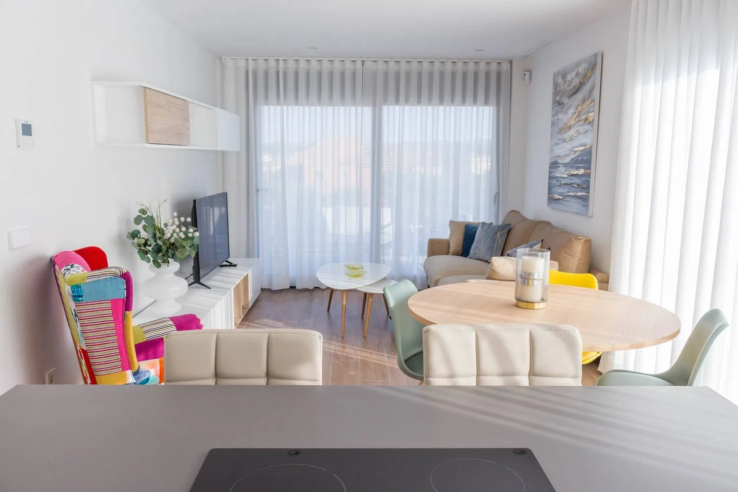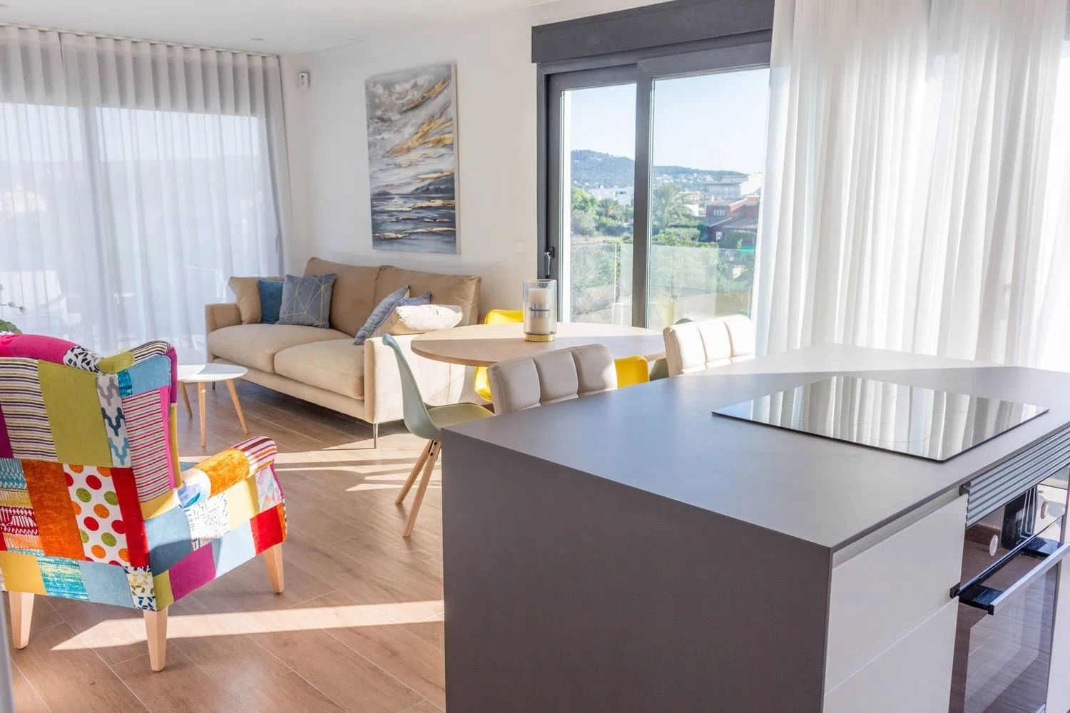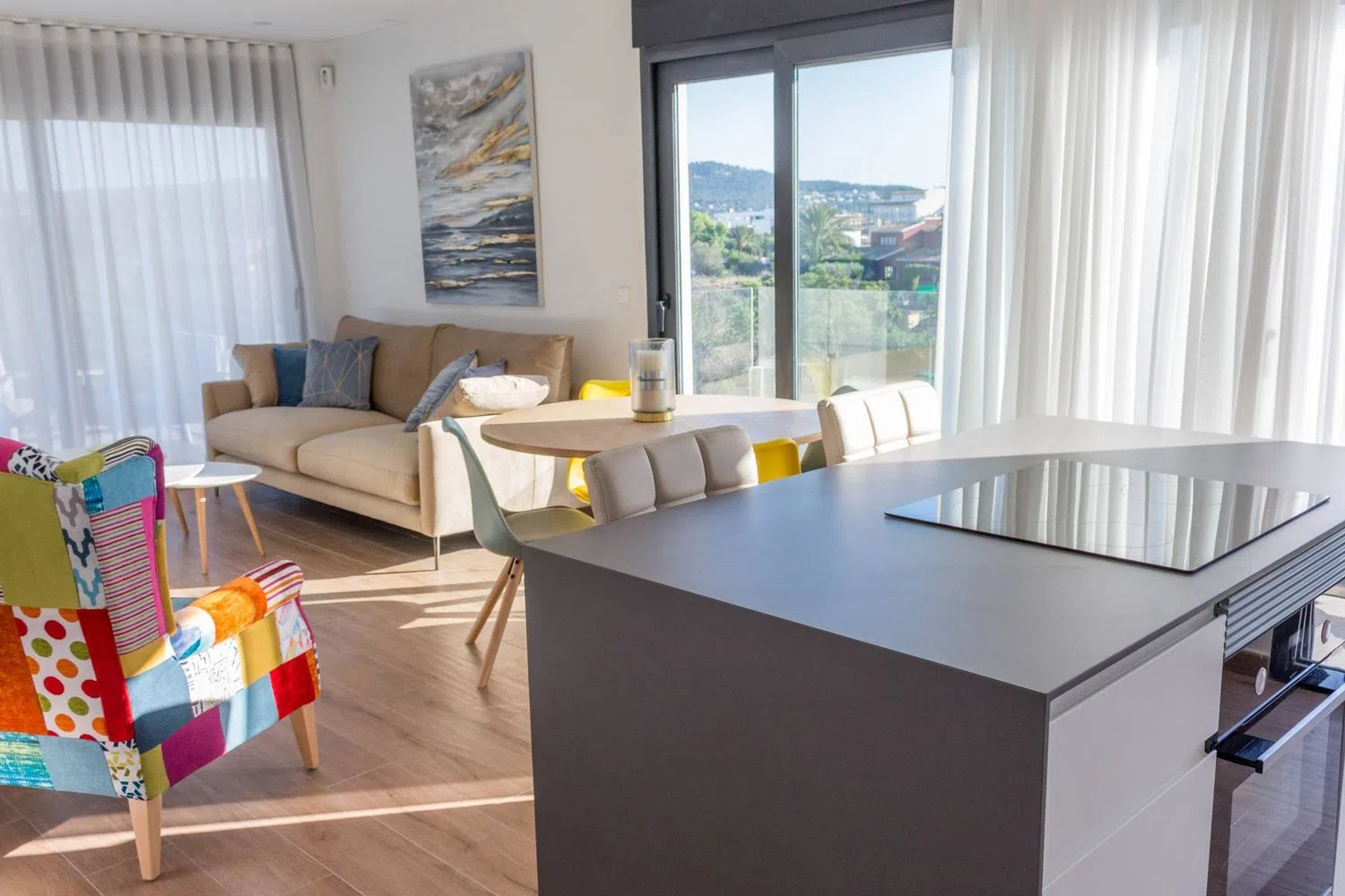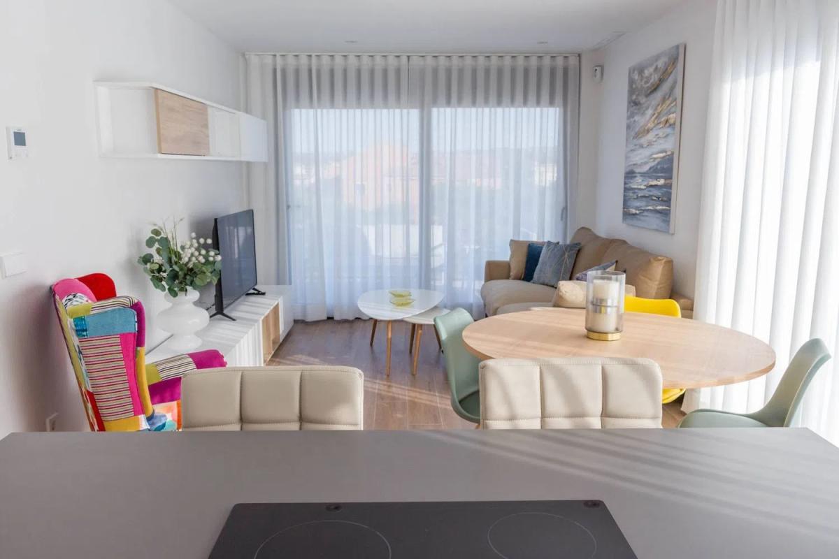 En el interior, el espacio habitable está diseñado con un estilo moderno y luminoso. La sala de estar de concepto abierto se conecta a la terraza, creando un ambiente ideal para el entretenimiento. Además, cuenta con tres acogedoras habitaciones dobles y dos modernos baños, uno de ellos en suite, lo que garantiza la máxima comodidad para todos los residentes.