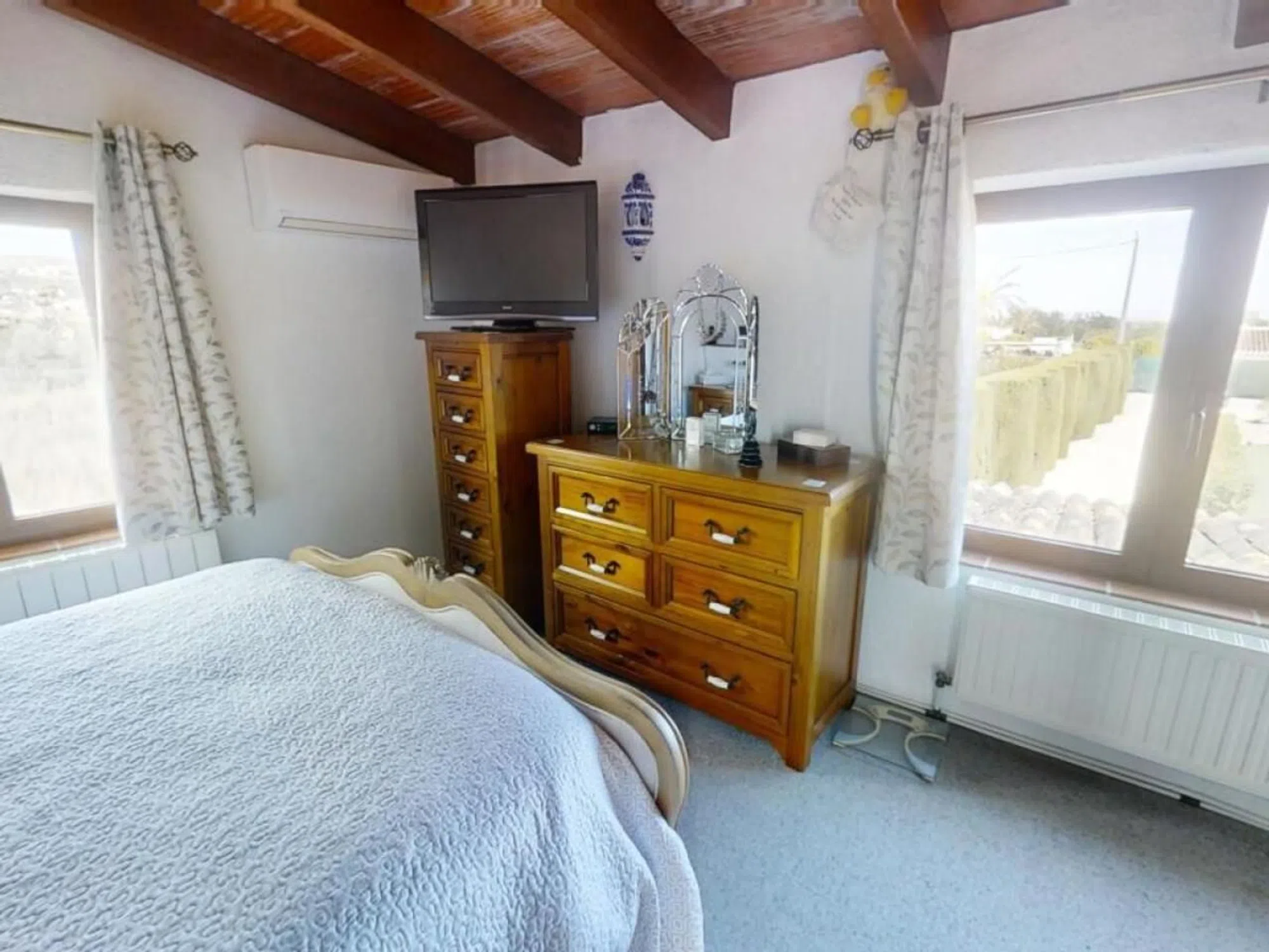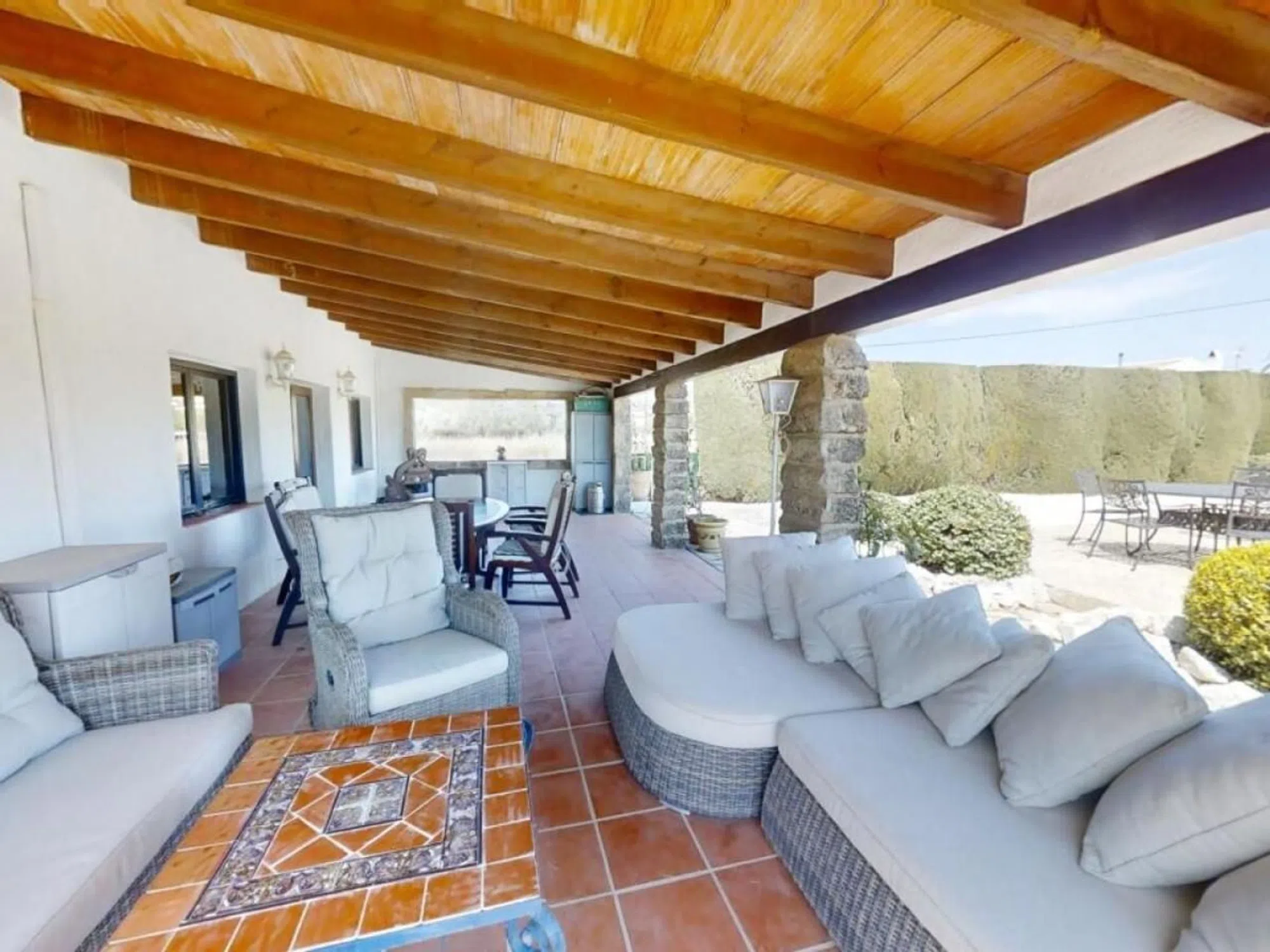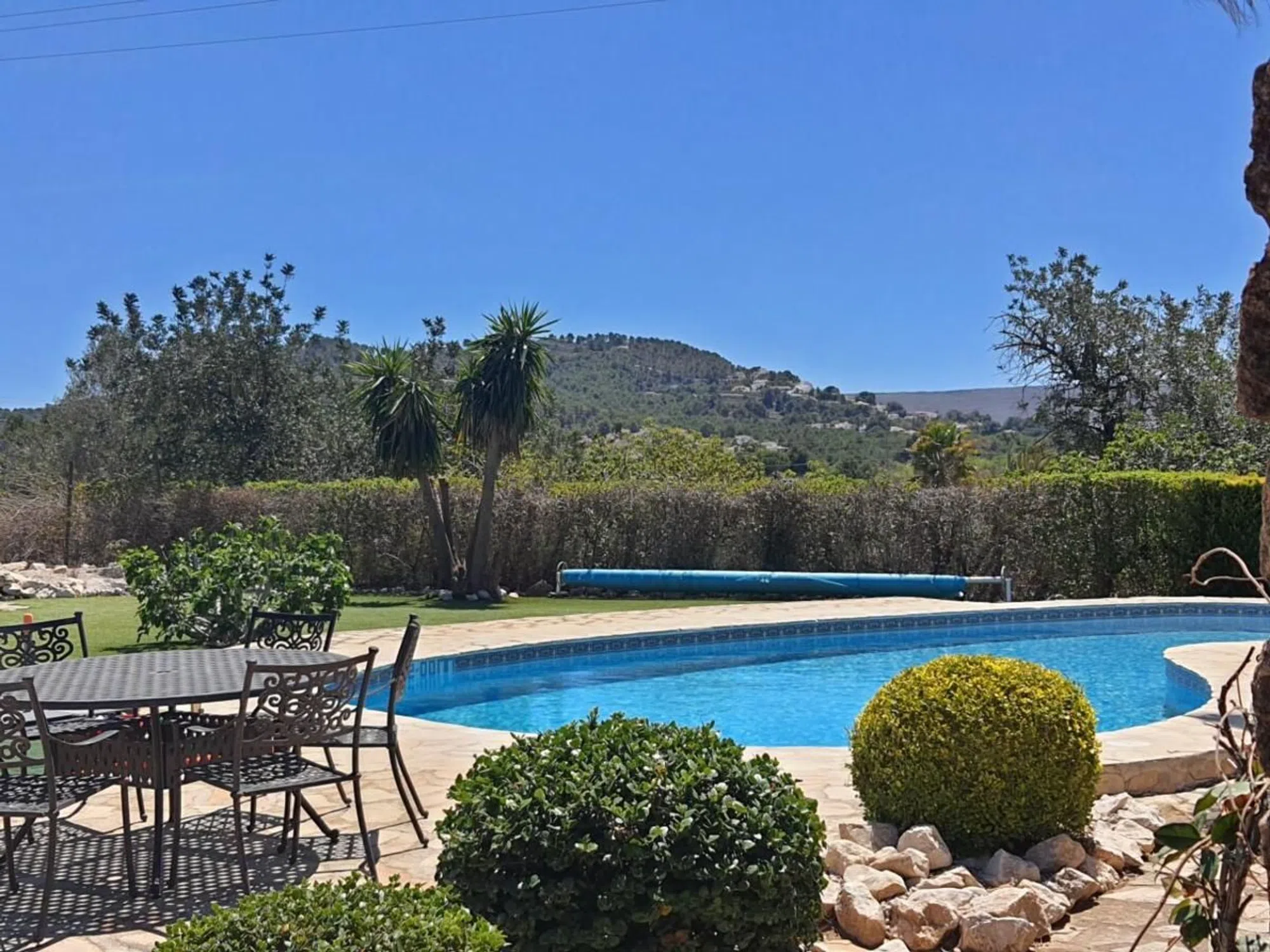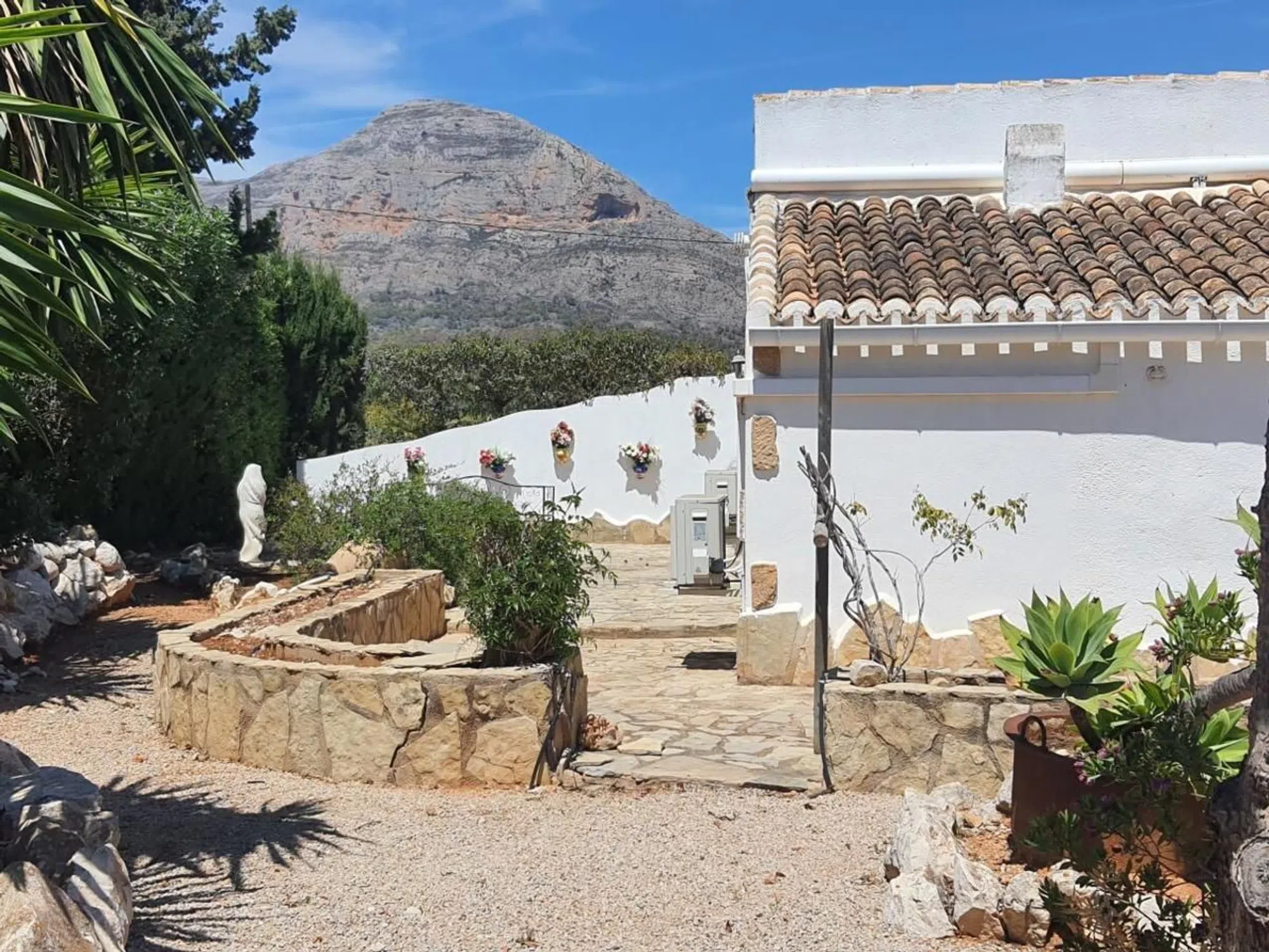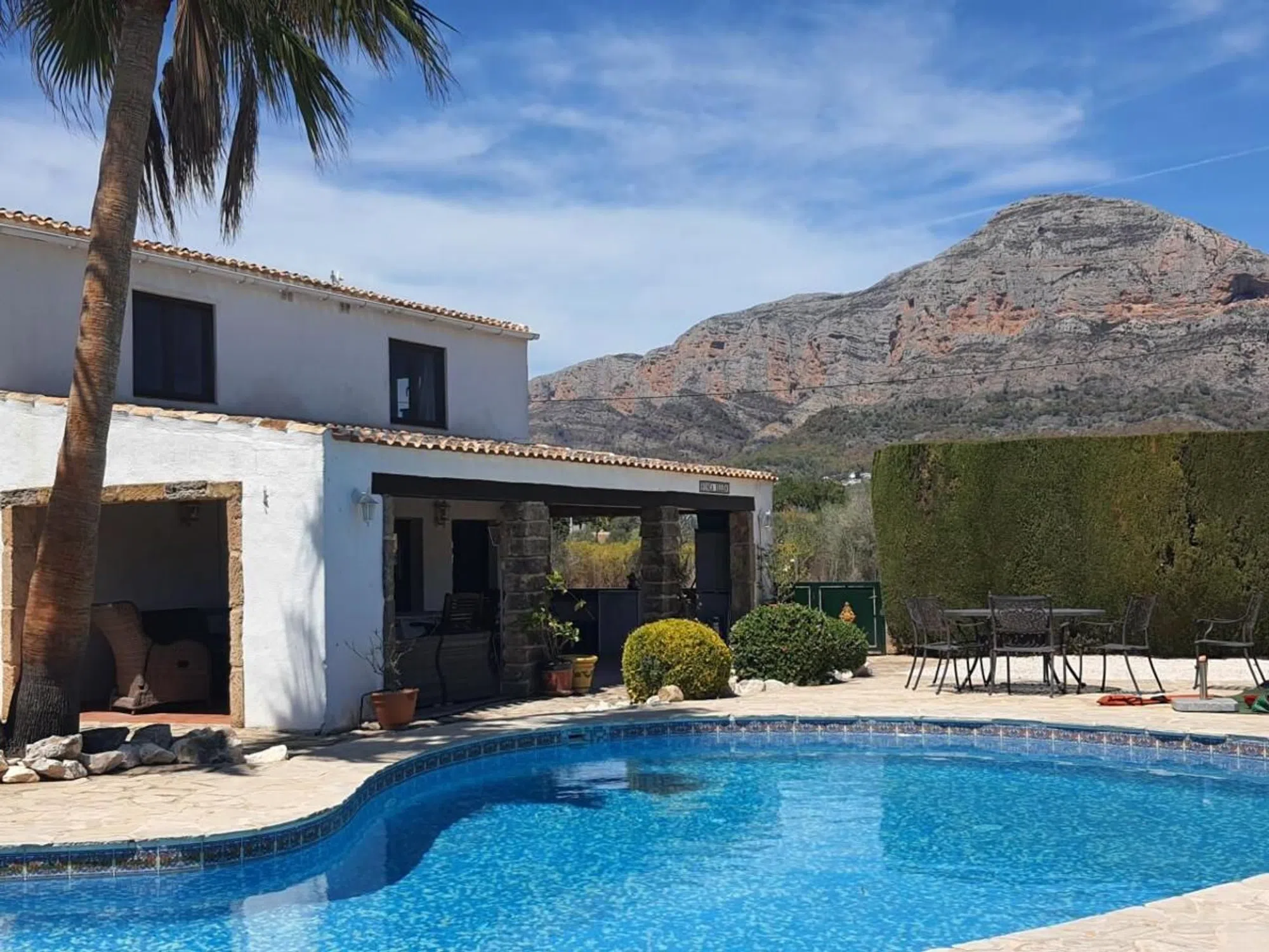 Finca te koop in Jávea met een prachtig uitzicht Deze charmante, karaktervolle woning is ideaal gelegen aan de rand van de historische binnenstad van Jávea. De locatie biedt snelle en gemakkelijke toegang tot de belangrijkste winkelstraten en natuurlijk de adembenemende kustlijn. De woning is een traditioneel landhuis, waarvan delen meer dan twee eeuwen oud zijn. Het beschikt over prachtige naya's - overdekte terrassen waar u heerlijk kunt ontspannen in de koele schaduw. Gelegen op vlak terrein, biedt de woning een open uitzicht op de Montgó-berg en de omliggende vallei. De buitenkant is al even aantrekkelijk, met rustige patio's, zonovergoten tuinen en een vrijgevormd zwembad. Aan het einde van de tuin vindt u een kleine boomgaard met diverse fruitbomen en een rustige visvijver met een waterval. Binnen in de woning U betreedt de woning via de open naya, die leidt naar een ruime woon-/eetkamer met een houtkachel. Een boog verbindt deze ruimte met de keuken, die de afgelopen jaren smaakvol is gemoderniseerd met behoud van de rustieke charme van het pand. Een paar treden vanuit de keuken leiden naar de slaapkamers en badkamers op de begane grond. Er zijn twee ruime tweepersoonsslaapkamers, beide met een eigen badkamer met douche en directe toegang tot de patiotuin aan de achterzijde. Een derde tweepersoonsslaapkamer heeft een aparte badkamer. Op de benedenverdieping is een andere naya omgebouwd tot een ontspannende binnen- en buitenruimte met vouwgordijnen – perfect om te genieten van warm weer of om af te sluiten als extra lounge. Aan het einde van deze ruimte bevindt zich nog een douche. Bovenverdieping Een trap leidt naar de bovenverdieping, waar u nog twee tweepersoonsslaapkamers vindt, elk met een eigen badkamer met douche. Een klein terras herbergt ook een wasruimte en een praktische ruimte om kleding aan de lucht te laten drogen. Extra voorzieningen • Verwarming en warm water worden verzorgd door een oliegestookte cv-ketel • Airconditioning is in de meeste kamers aanwezig • De woning beschikt over zowel leidingwater als een ondergrondse waterput • Een grote, hoge carport biedt overdekte parkeergelegenheid, inclusief ruimte voor een camper.