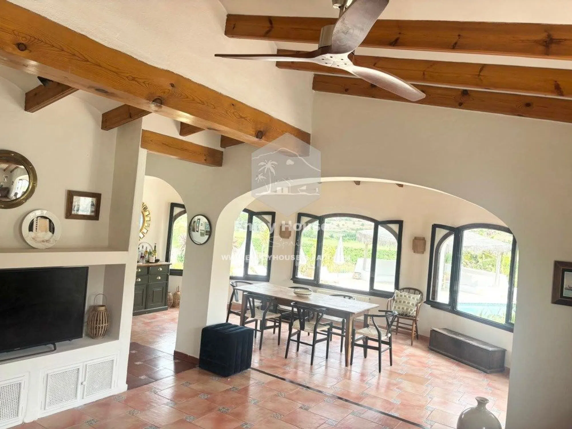 Bienvenidos a esta singular casa de campo, situada en el verde corazón de Benitachell, justo a las afueras de Jávea. Rodeada de tierras de cultivo onduladas, plantas tropicales y un oasis de tranquilidad, esta hermosa finca ofrece la máxima sensación de libertad y privacidad, y está a solo unos minutos en coche de la playa, las instalaciones del pueblo y colegios internacionales. Una casa con alma, historia y carácter Esta finca tiene más de 100 años y desprende autenticidad gracias a detalles originales como el cálido suelo de baldosas y una atractiva chimenea. Es una casa con alma, en la que el encanto del pasado se mezcla perfectamente con la comodidad de hoy. El espacioso salón está conectado directamente a una naya abierta (terraza cubierta), permitiendo que la vida interior y exterior se fusionen sin problemas. La cocina es espaciosa y está prácticamente amueblada, ideal para veladas culinarias con amigos o familia. Cuatro dormitorios Actualmente, la casa tiene cuatro dormitorios y 3 baños, lo que la hace aún más flexible y apta para toda la familia. El dormitorio principal y la habitación de invitados tienen su propio baño en suite, mientras que los otros dos dormitorios comparten un tercer baño. Muchos extras: para invitados, almacenamiento y relajación Junto a la residencia principal encontrarás una lavandería independiente, un sótano especialmente espacioso con mucho potencial (piensa en una sala de hobby, una bodega o un gimnasio) y un estudio independiente para invitados con baño privado, perfecto para invitados o como opción de alquiler. Vida al aire libre en su máxima expresión La piscina legalizada forma el centro radiante de la amplia parcela, rodeada de jardines exuberantes con palmeras, plantas mediterráneas y árboles frutales. Justo al lado de la piscina hay un atractivo rincón de relax al estilo Ibiza: tu refugio privado para largas noches de verano, siestas o bebidas acogedoras. Otras ventajas: La trama está completamente repartida Puerta de entrada eléctrica Aparcamiento en el lugar para dos coches Paz y privacidad absolutas, sin estar aislado Combinación ideal de vida rústica con comodidades modernas Déjate encantar con el encanto, la historia, la tranquilidad y el espacio de esta finca de más de 100 años llena de carácter. Esta no es una casa estándar: es un estilo de vida. Contáctanos hoy mismo para concertar una visita. Soña, experimenta y disfruta.. . de la verdadera España. ref: ENJ-VI-00321-C.