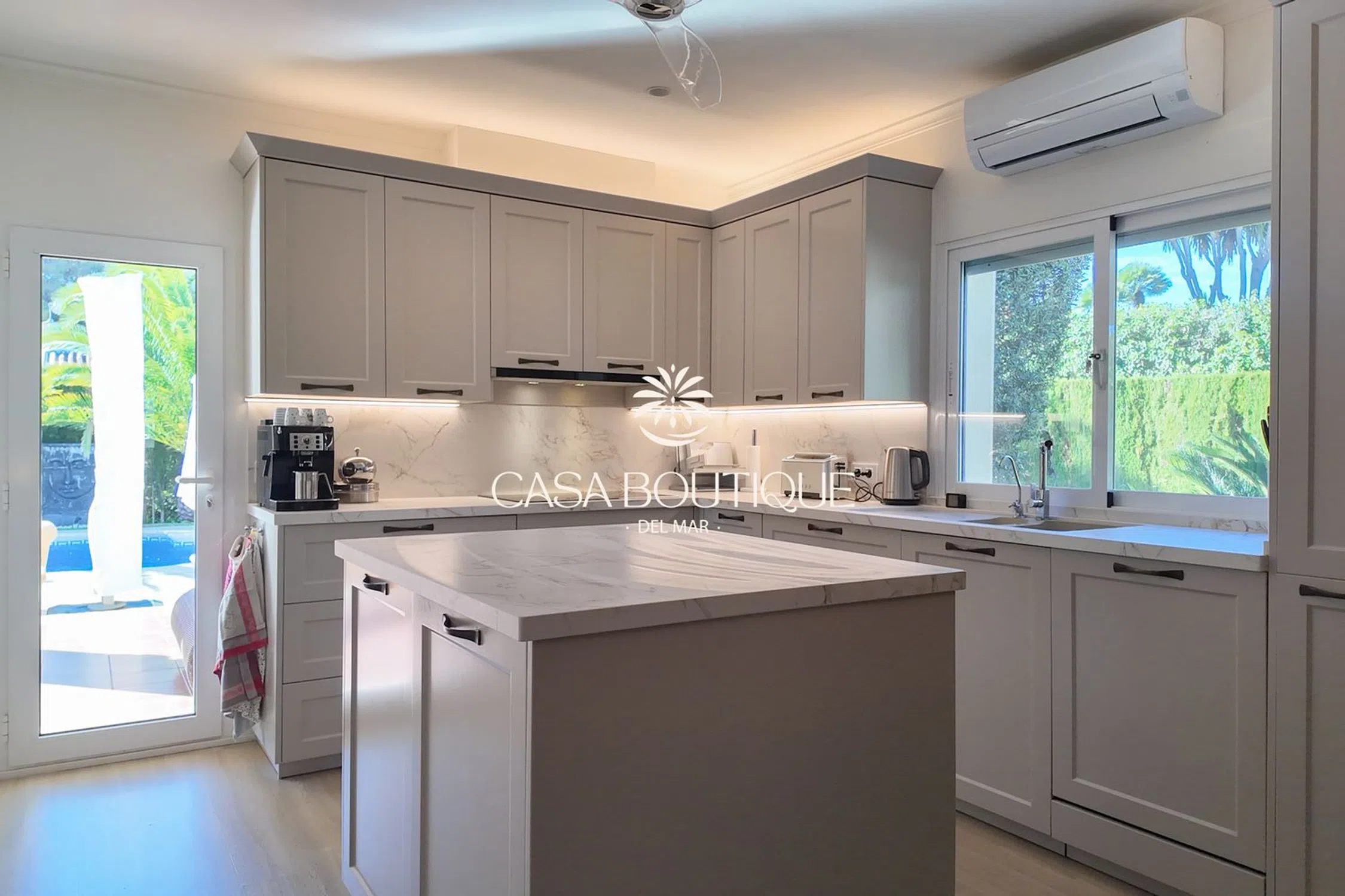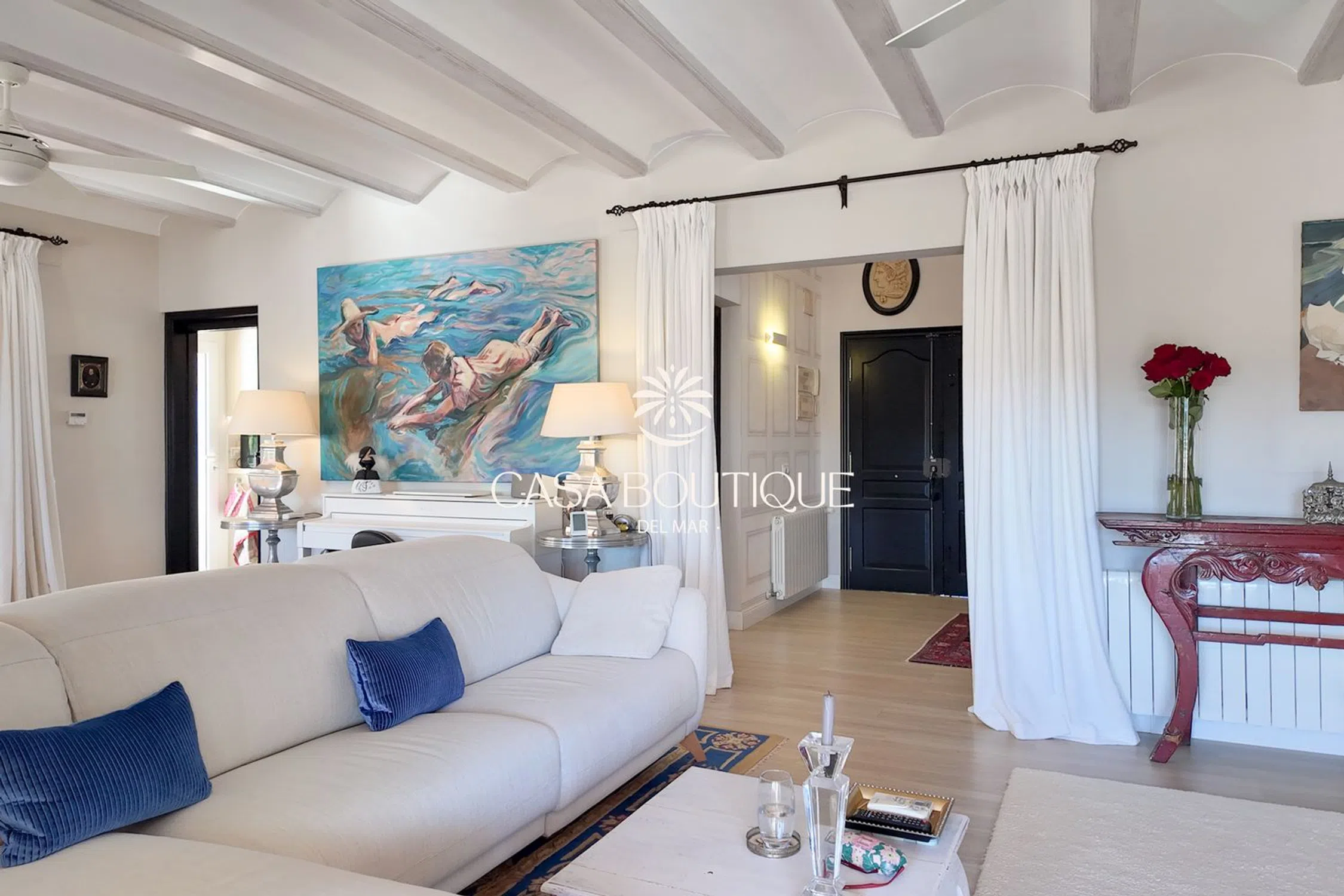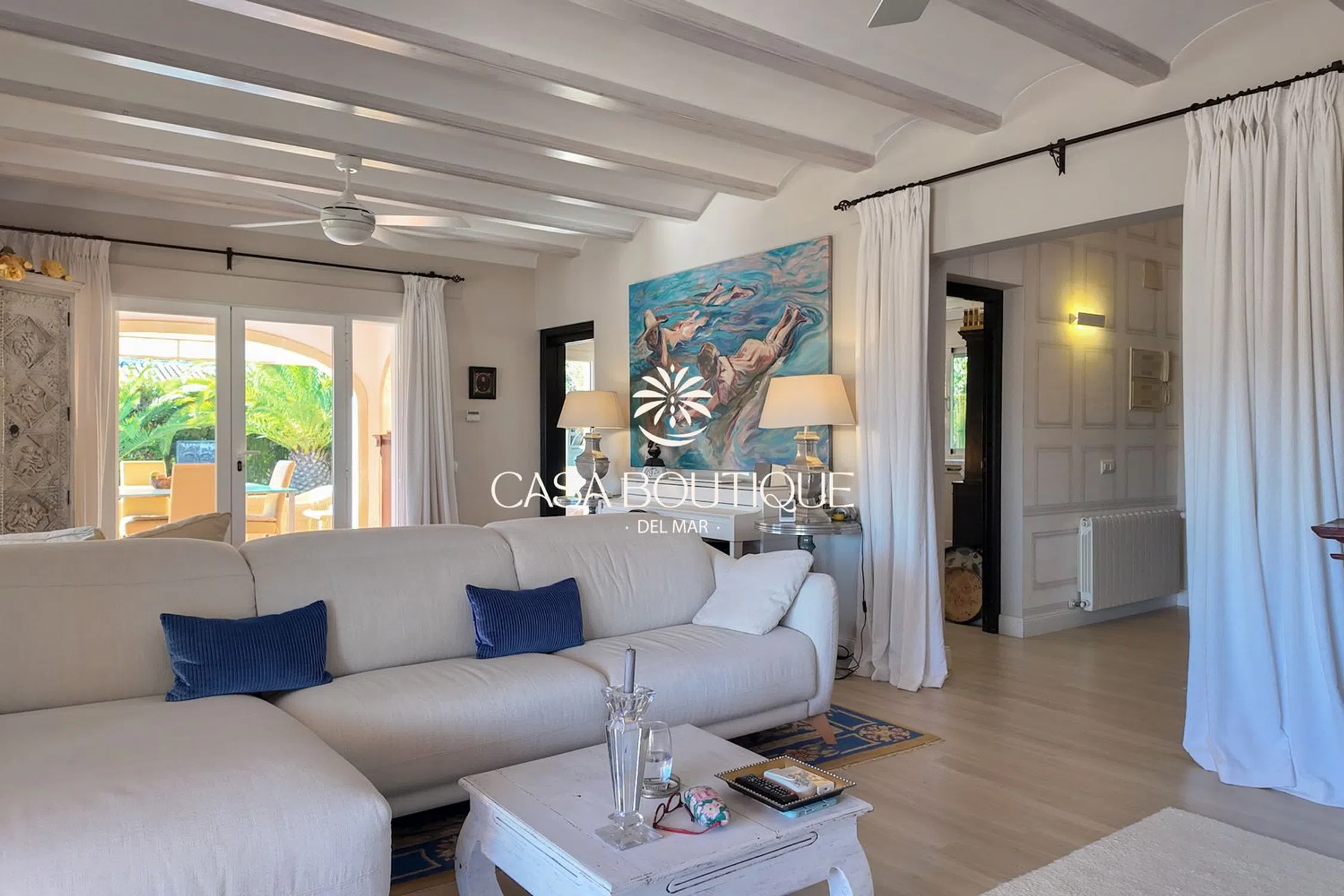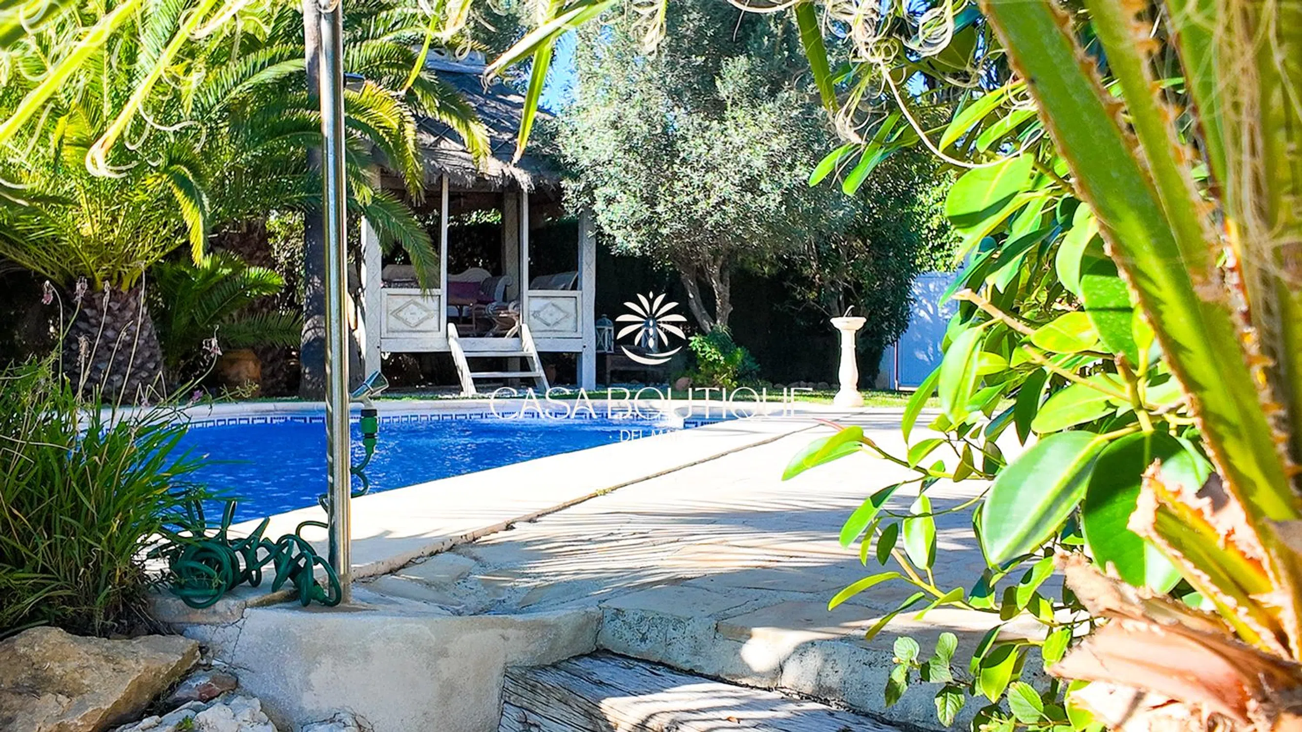 Situada en un terreno de poco más de 1.000 m², esta villa mediterránea disfruta de una posición dominante a 60 m sobre el valle, con orientación suroeste que garantiza vistas despejadas sobre las colinas de Jávea y total intimidad. Construida en 2003 y completamente renovada en 2017, la propiedad está rodeada de un jardín mediterráneo maduro salpicado de palmeras, cipreses y espacios exteriores diseñados para la relajación. La arquitectura retoma los códigos locales: arcos de piedra toscana, tejas canal, vigas a la vista y una naya acristalada que prolonga de forma natural la sala de estar principal. La entrada, diseñada en doble altura y adornada con un candelabro clásico, conduce a un salón luminoso con chimenea. El espacio de día se abre a una terraza cubierta y a la piscina, creando una circulación fluida entre el interior y el exterior —ideal para vivir todo el año bajo el clima de la Costa Blanca. La zona de noche incluye cuatro habitaciones dobles y tres baños, dos de ellos en suite. La suite principal, situada en la planta superior, dispone de vestidor, un baño con bañera y ducha separada, y una terraza privada que ofrece panorámicas del paisaje circundante. Una de las habitaciones tiene acceso independiente, ideal para invitados. En el exterior, la piscina de 10 x 5 m (renovada por Gunitec) constituye el centro de la vida al aire libre, acompañada de un gazebo balinés de 3,5 x 3,5 m, zonas chill‑out y rincones de comedor para disfrutar plenamente del clima. Las prestaciones incluyen 12 paneles solares con batería de 10 kW, estores recientes (incluido un estor eléctrico de alta gama), calefacción a gas (depósito), aire acondicionado reversible en toda la casa, sistema de alarma cableado con cámaras interiores y exteriores, mosquiteras nuevas, fibra óptica con Wi‑Fi exterior, garaje cerrado y aparcamiento para tres vehículos. Situada al final de un cul‑de‑sac y adosada a la urbanización demandada de El Tosalet, la casa ofrece la tranquilidad y la seguridad de esta zona sin gastos de comunidad. Una vivienda auténtica, lista para entrar a vivir, que combina el encanto mediterráneo de Jávea con equipamientos modernos para un estilo de vida sereno en la Costa Blanca.