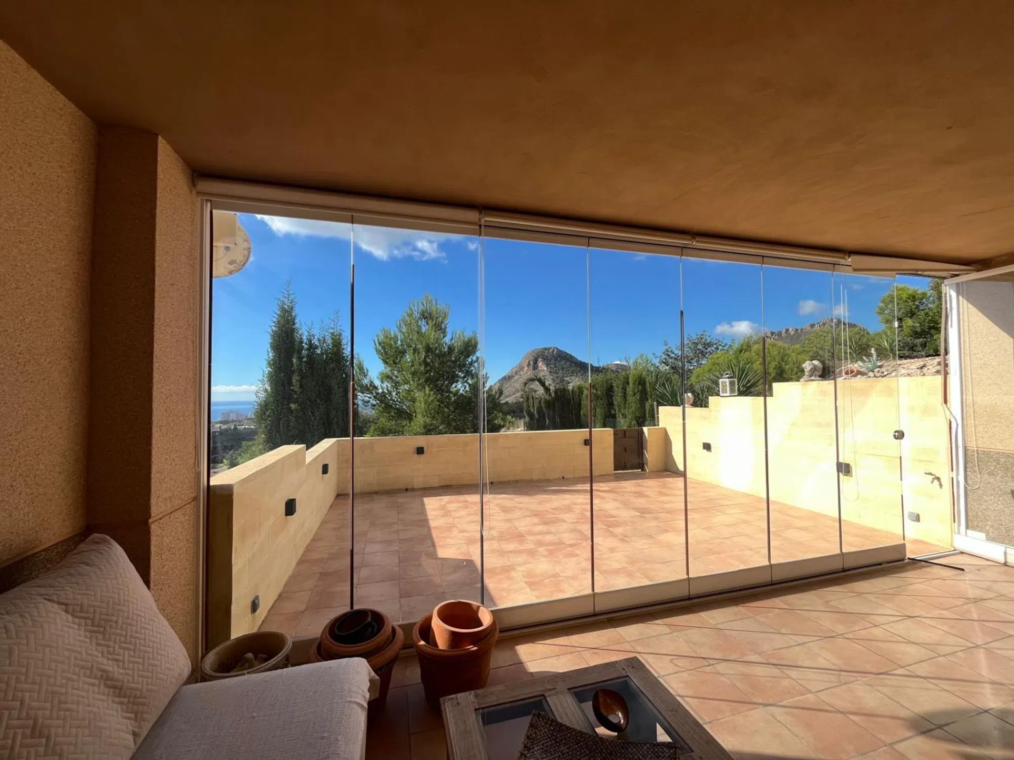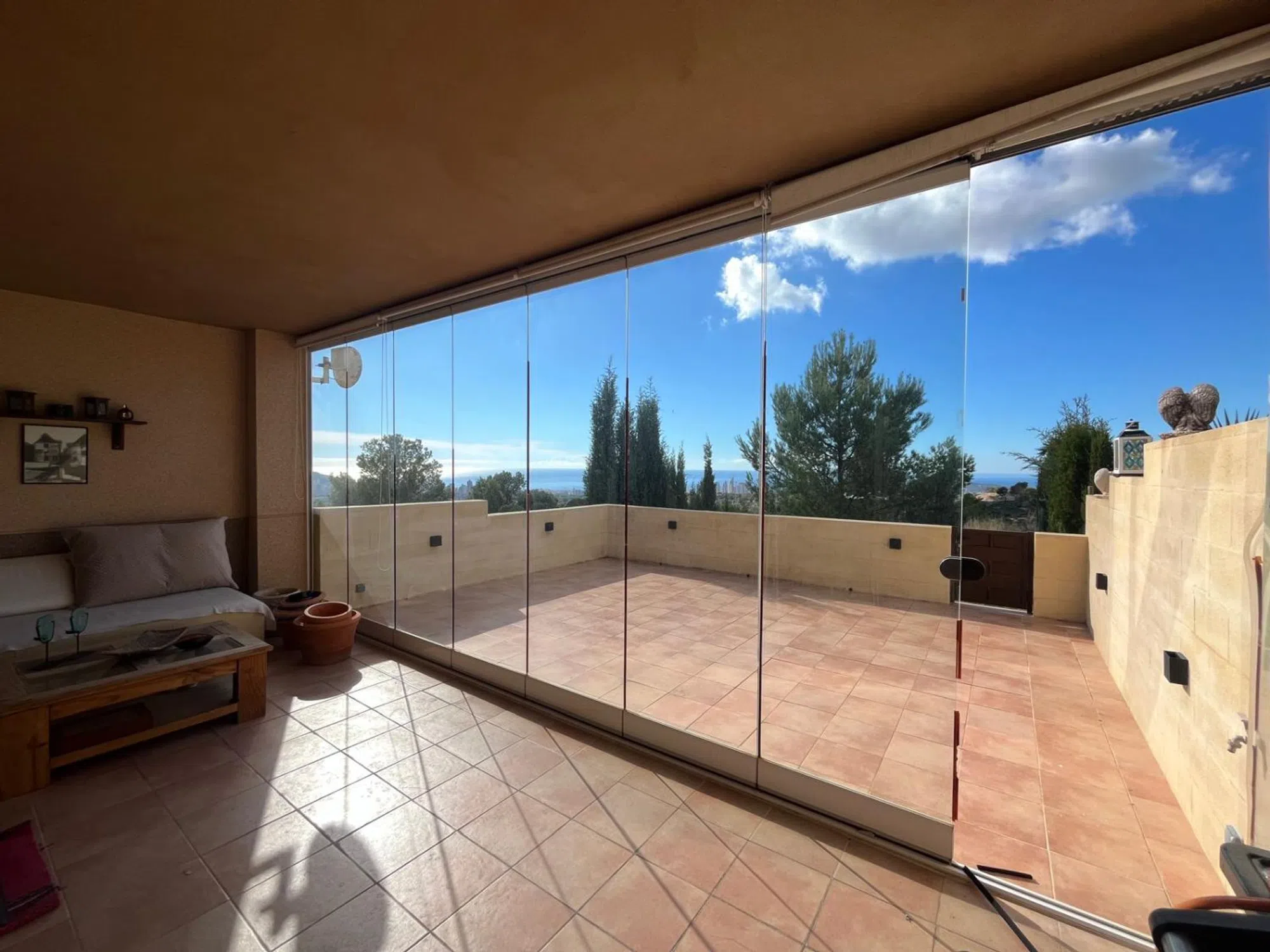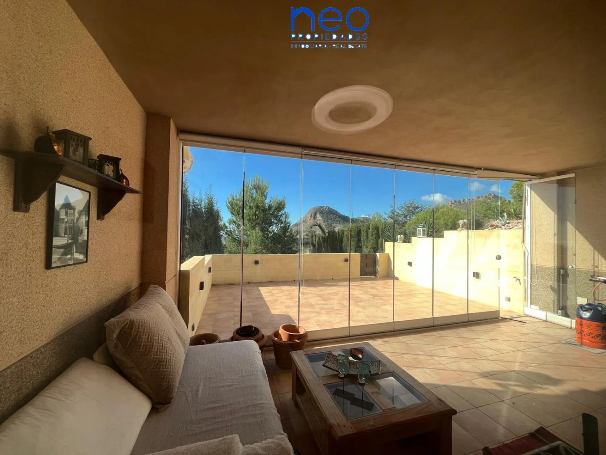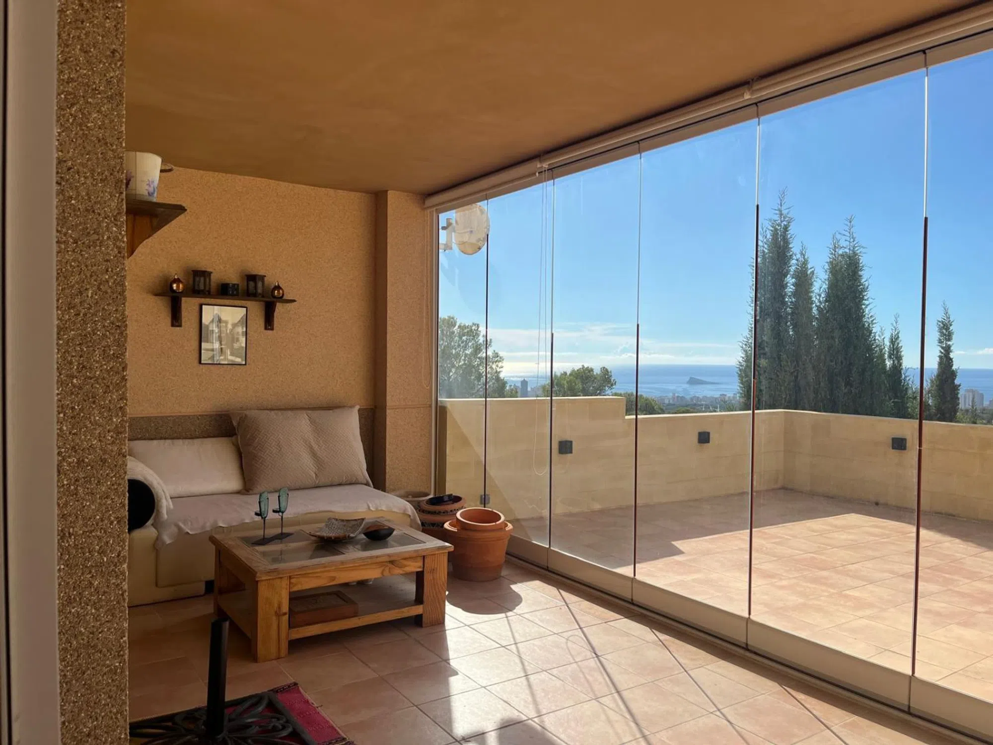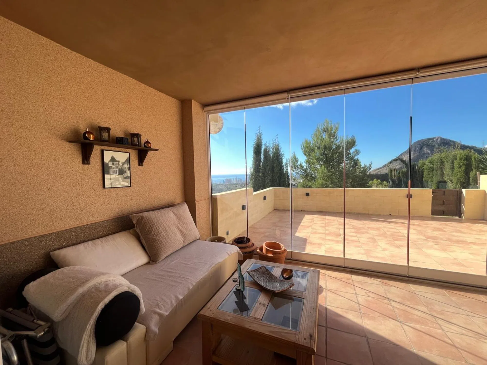 Neopropiedades pone en venta este encantador, amplio, y luminoso apartamento con vistas al mar, ubicado en una zona residencial de La Nucía ( cerca de los Huertos ecológicos, y de la Avenida Coloma). Tiene una superficie construida de 105 m², y cuenta con un diseño funcional y práctico ya que todas las estancias se encuentran en una única planta. Dispone de salón comedor, 3 dormitorios, 2 baños completos ( uno de ellos suites), cocina independiente totalmente amueblada, lavadero, y una amplia terraza acristalada ( con cortinas de cristal), con vistas al mar, y a la montaña. La terraza es muy amplia, una parte está cubierta y acristalada, y la otra parte recién reformada no se encuentra cubierta, espectaculares vistas al mar y montaña. Los materiales de construcción de buena calidad ( suelo gres, aluminio climalit, armario empotrado, calefacción con ralladores, termo de gas, etc). Su orientación sureste permite disfrutar del sol durante gran parte del día. Piscina Comunitaria, opcional, la cuota por disfrutar de ella es independiente. Incluye Plaza de Aparcamiento para un vehículo, exterior. En sus inmediaciones se encuentran todos los servicios esenciales como supermercados, farmacias, colegios, restaurantes, etc.. . El aeropuerto de Alicante se encuentra a 70 kms, y el Hospital comarcal de Villajoyosa está a tan sólo 15 minutos. Esta propiedad es ideal para vivir como primera vivienda, o para invertir y alquilar. Gastos IBI 392,22 €/ anual. Basura 123 €/anual. Comunidad 75 €/trimestre. Asesoramiento integral. No dude en contactar con Juani Muñoz en el teléfono o WhatsApp o email. Para más información y visita, no dude en contactarnos.