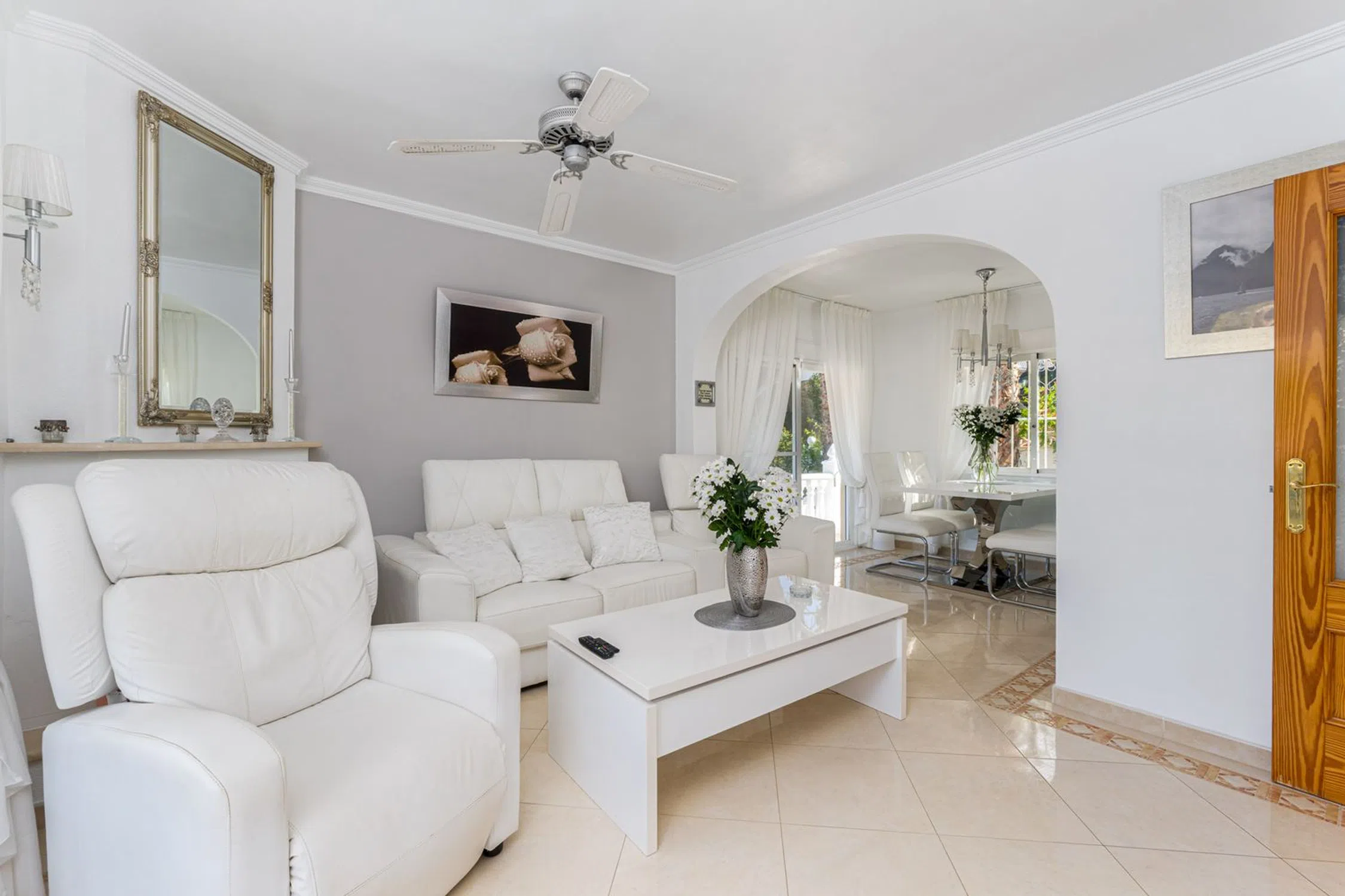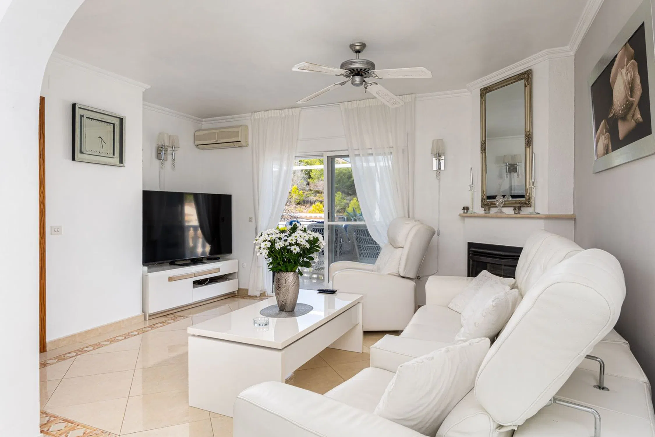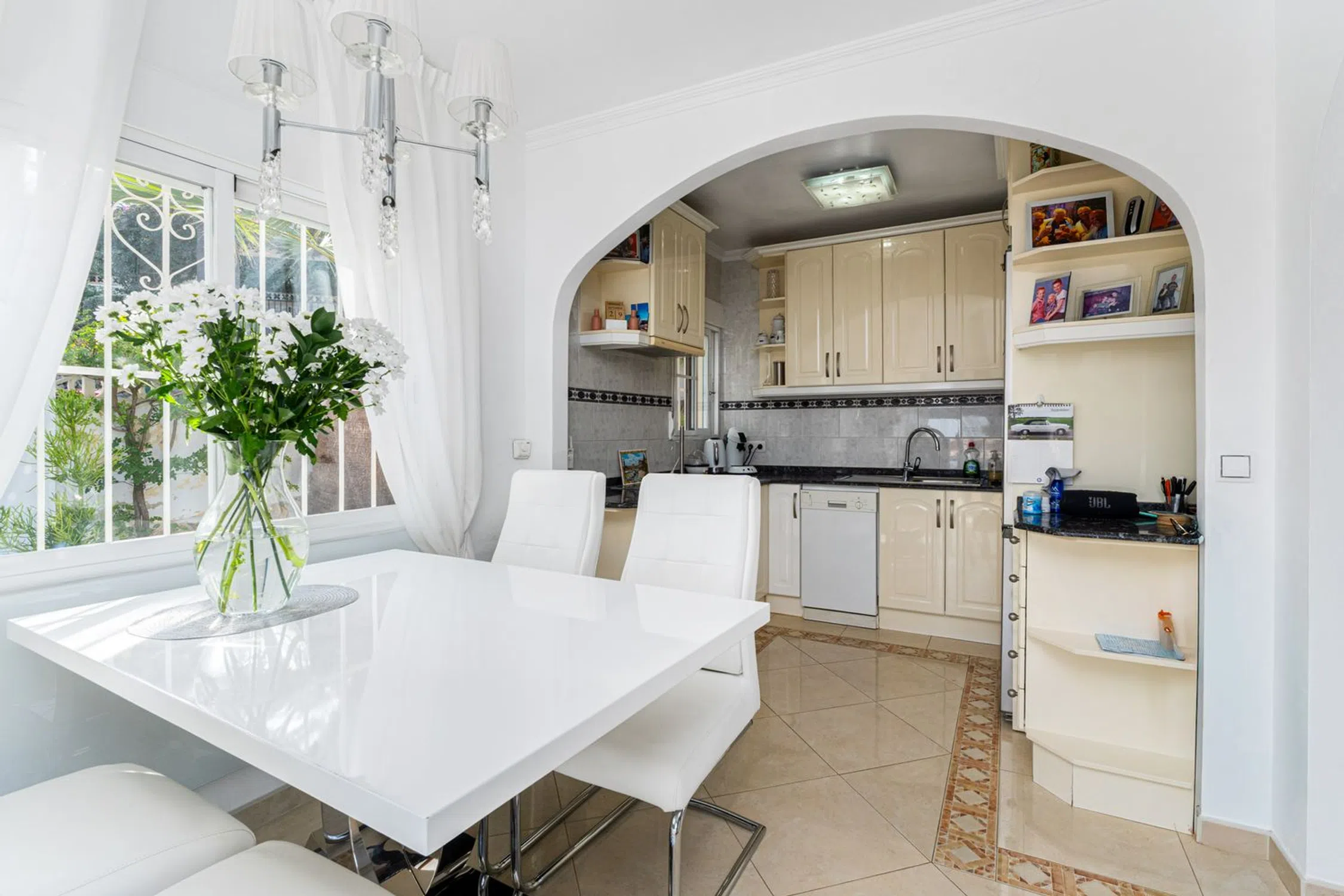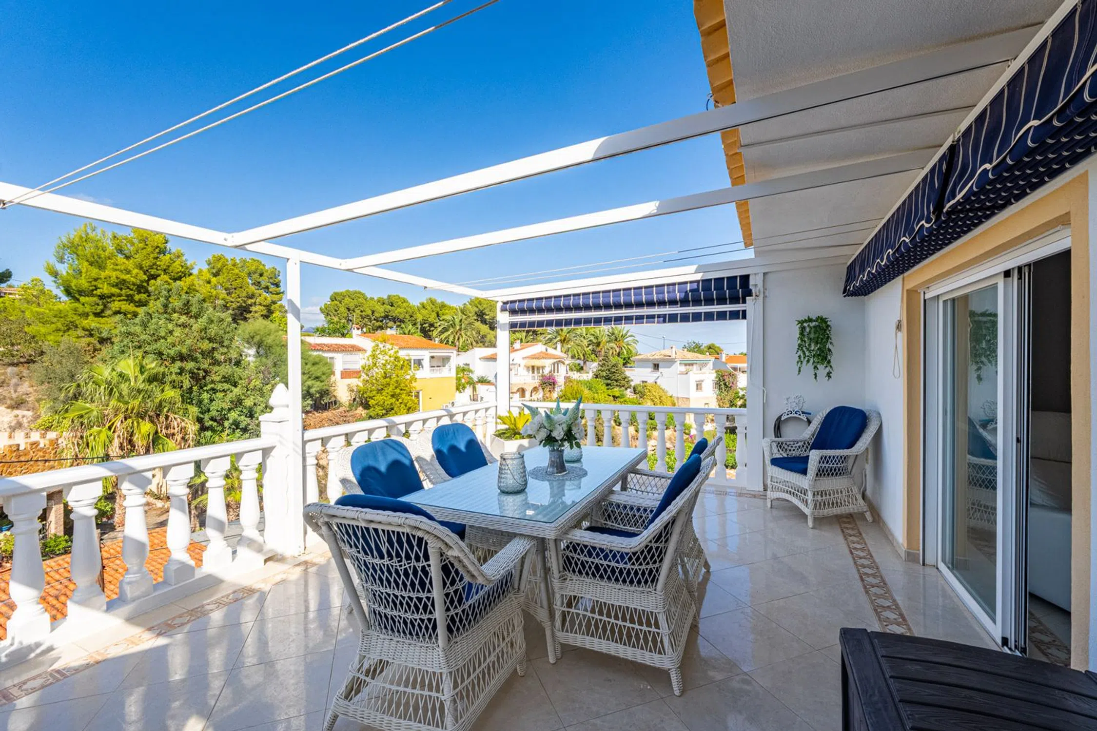 Casa Independiente con Vistas y Garaje en La Nucía Ubicada en una zona residencial tranquila y soleada, cerca de todos los servicios como restaurantes, supermercados, farmacia y tiendas, y a solo minutos de la Escuela Internacional Elian. Construida en 1975 y reformada en 2016, la propiedad se distribuye en tres plantas. Esta casa independiente se sitúa en una parcela con acceso desde dos calles: la entrada principal para peatones y una secundaria con acceso directo al garaje y espacios de estacionamiento. En la planta superior, un luminoso salón-comedor con chimenea de gas y grandes ventanales se abre a terrazas soleadas y sombreadas. La cocina abierta está totalmente equipada y también hay un baño de cortesía. En la planta inferior (nivel de la calle), hay cuatro dormitorios (uno con entrada independiente, ideal para huéspedes o una oficina), un baño completo y un lavadero con acceso directo a la piscina, además de un trastero. El exterior ofrece un jardín tropical con sistema de riego, varias terrazas perfectas para disfrutar durante todo el año, una piscina privada con una profundidad de 2.10 metros, y un amplio garaje con potencial de conversión en apartamento de huéspedes, gimnasio o taller. Esta vivienda incluye cuatro dormitorios y dos baños, un salón-comedor con chimenea, una cocina abierta, múltiples terrazas con sol y sombra equipadas con toldos, un jardín con sistema de riego, piscina privada, garaje con múltiples posibilidades y acceso desde dos calles. Situada en una urbanización tranquila pero bien comunicada, ofrece un oasis mediterráneo de confort y encanto en la Costa Blanca. 10 minutos a la playa45 minutos al Aeropuerto de Alicante1 hora 15 minutos al Aeropuerto de Valencia.