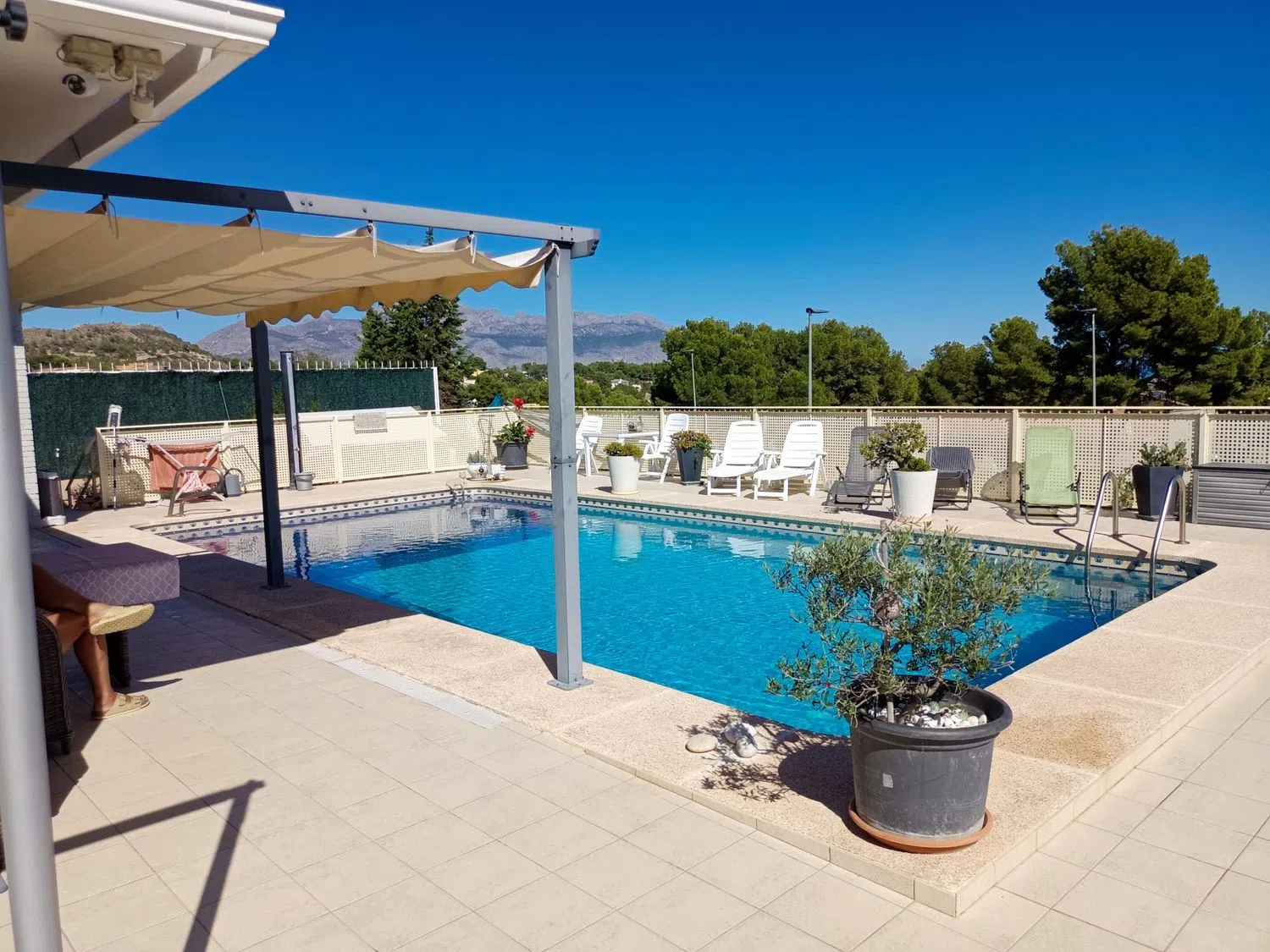 Bonita villa con impresionantes vistas en La Nucía. Todo en una sola planta ubicado cerca de tiendas y transporte. Al entrar en la villa, encontrará una agradable entrada, seguida de tres dormitorios de buen tamaño con armarios empotrados. Los baños son amplios y tienen un acabado de azulejos muy agradable. Un baño tiene una bañera y el otro tiene una ducha grande. Cuenta con una sala de estar abierta y una zona de comedor con acceso directo a la terraza y la piscina. Una cocina de excelente tamaño con todos los electrodomésticos modernos que ha sido completamente renovada en 2022. Dispone de una terraza y zona de piscina muy agradables, con maravillosas vistas al mar. Hay un amplio espacio de almacenamiento debajo de la villa, así como un lavadero. Hay un garaje en la propiedad y mucho espacio para aparcar más vehículos. El aire acondicionado y la calefacción central funcionan con electricidad, y hay un panel solar. El doble acristalamiento se utiliza en todas las ventanas. Para más información contacta con el notario!