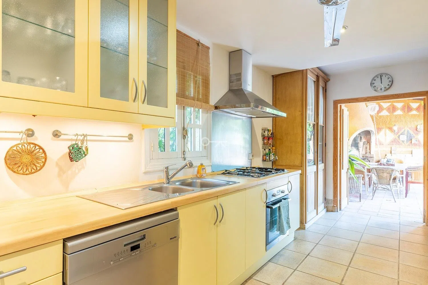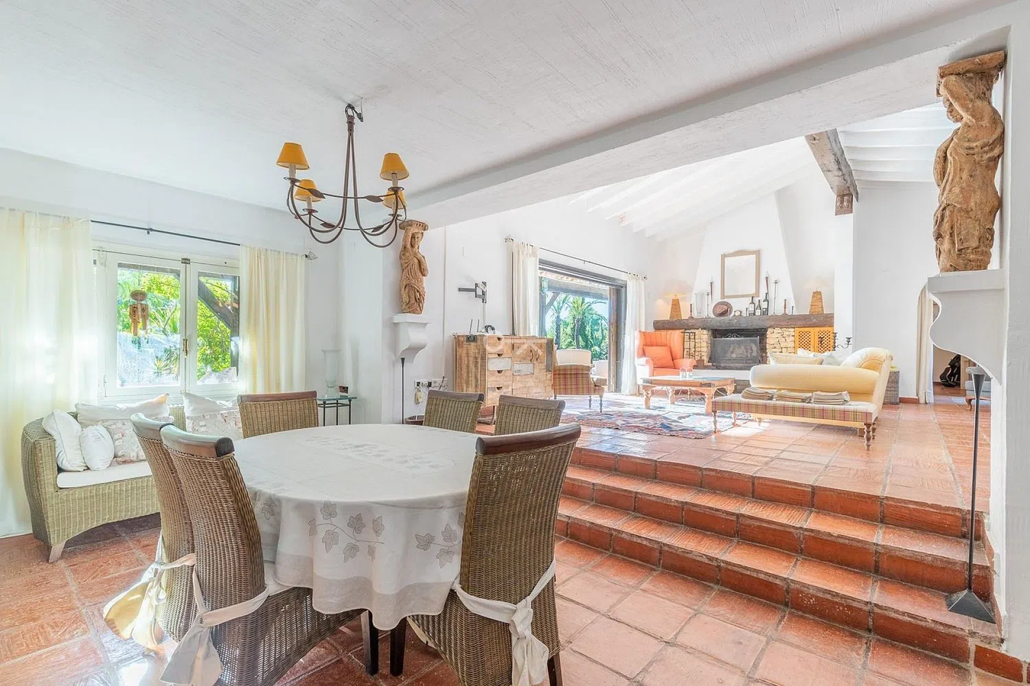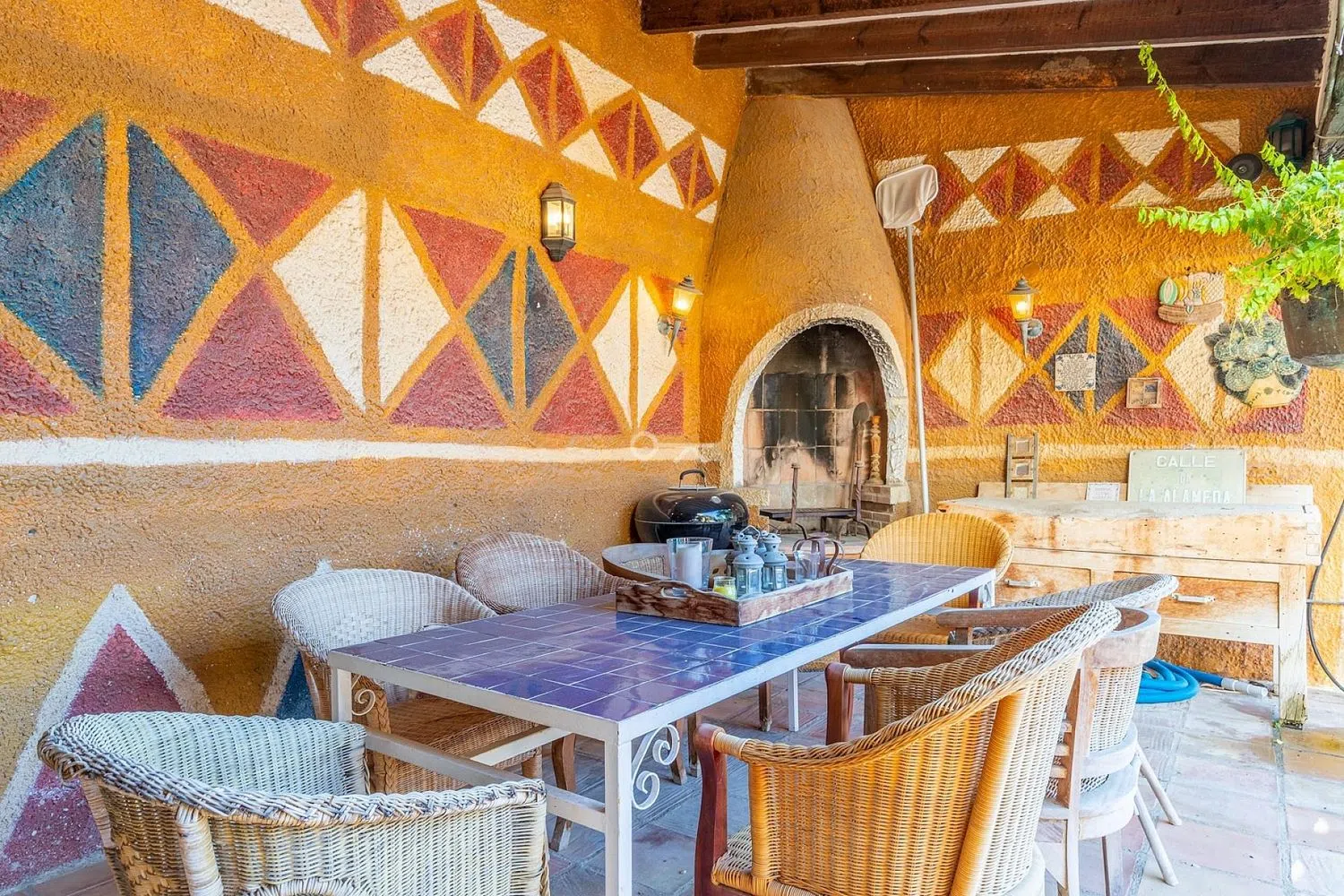 Esta encantadora villa mediterránea está situada en una urbanización tranquila y ofrece total privacidad gracias al gran jardín (doble parcela). La casa consta de un amplio salón/comedor, una cocina totalmente equipada, 4 dormitorios y 3 baños, 2 de ellos en suite. Todo está en una sola planta, excepto el dormitorio principal. Tiene una terraza privada con vistas panorámicas al horizonte de Benidorm y al mar Mediterráneo. Desde el salón se tiene acceso directo a la terraza, a la piscina climatizada y al jardín. Aquí podrá disfrutar del sol tranquilamente y sin ser molestado durante todo el día gracias a la orientación sur. Desde la cocina se camina directamente a la terraza cubierta y a la zona de barbacoa. La villa dispone de calefacción central (gas), aire acondicionado, alarma, chimenea y parking para 2 coches. Otro punto a favor de esta propiedad es su ubicación, cerca de varios comercios, a pocos minutos del campo de golf de Villaitana, del centro de Benidorm y de la playa y a 40 minutos en coche del aeropuerto de Alicante. La villa necesita ser modernizada un poco, pero sobre todo necesita un poco de amor para convertirla en una joya. .