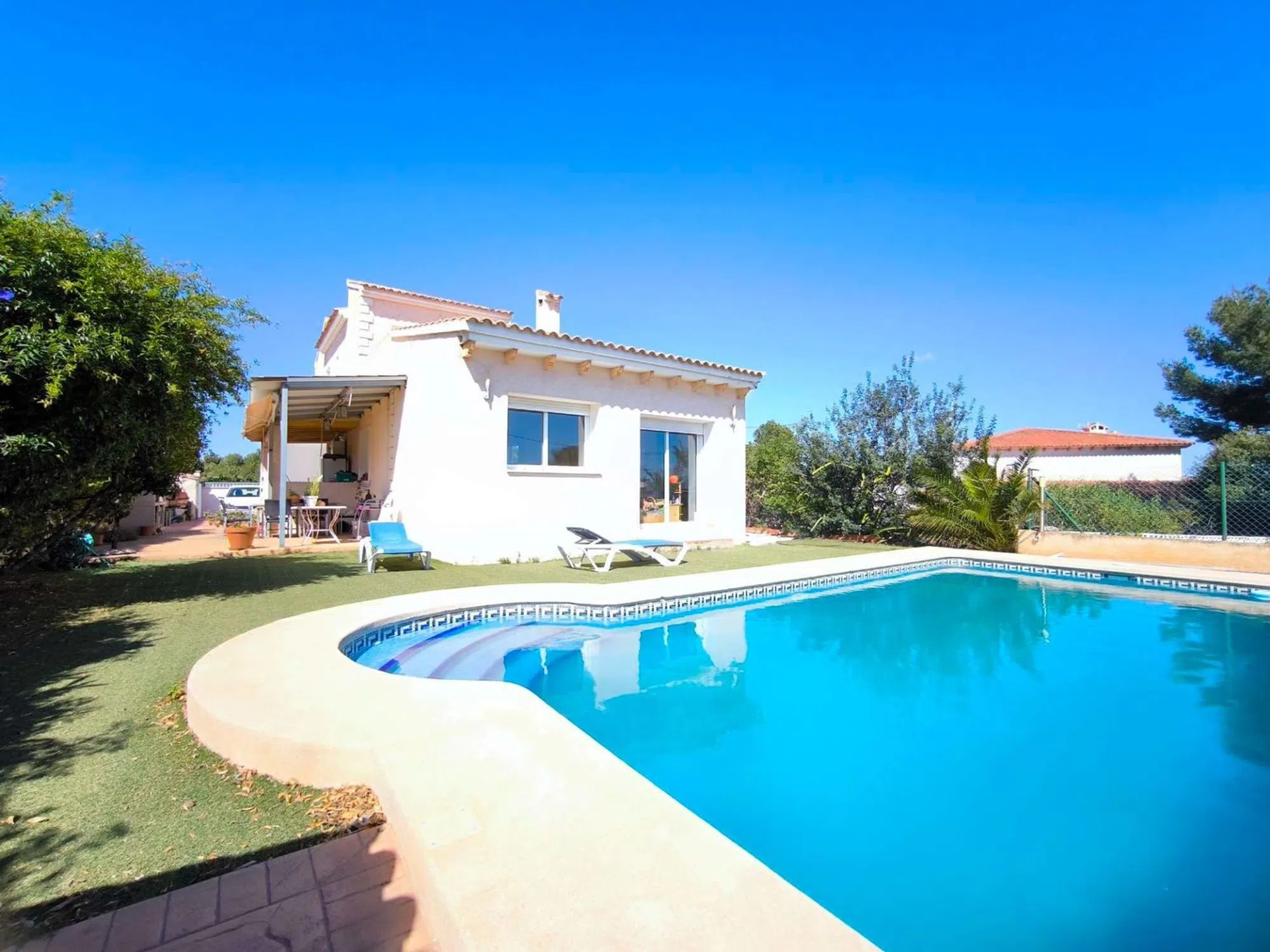 Exclusivo chalet independiente de dos plantas en ubicación privilegiada Se presenta esta magnífica propiedad, distribuida en dos plantas sobre parcela llana de fácil acceso, que combina espacios luminosos, privacidad y funcionalidad en un entorno residencial tranquilo. Exteriores: •Piscina privada de uso exclusivo •Zona de barbacoa cubierta •Amplio porche y terraza •Jardín de bajo mantenimiento •Aparcamiento para varios vehículos Distribución: Planta principal: •Recibidor amplio con armarios empotrados •Salón-comedor con salida directa a terraza y jardín •Cocina independiente totalmente equipada con zona de lavadero •Dormitorio/despacho con armarios •Baño completo con plato de ducha Planta superior: •Dormitorio principal con terraza privada (vistas al mar y montaña) y armarios empotrados •Dos dormitorios adicionales con capacidad para camas matrimoniales •Baño completo familiar Dotaciones destacadas: •Sistema de calefacción central por radiadores •Aire acondicionado tipo split en todas las estancias •Ventanas de doble acristalamiento •Ausencia de gastos comunitarios Situado en zona residencial consolidada, a menos de 5 minutos a pie de: •Supermercados y comercios básicos •Parada de transporte público •Servicios médicos y farmacias •Accesos principales (10 min en coche) Observaciones: Propiedad lista para entrada inmediata, ideal como residencia principal o segunda vivienda. Excelente relación calidad-precio en su segmento. ¿Desea programar una visita o recibir información adicional sobre esta oportunidad? Contactanos! [IW].