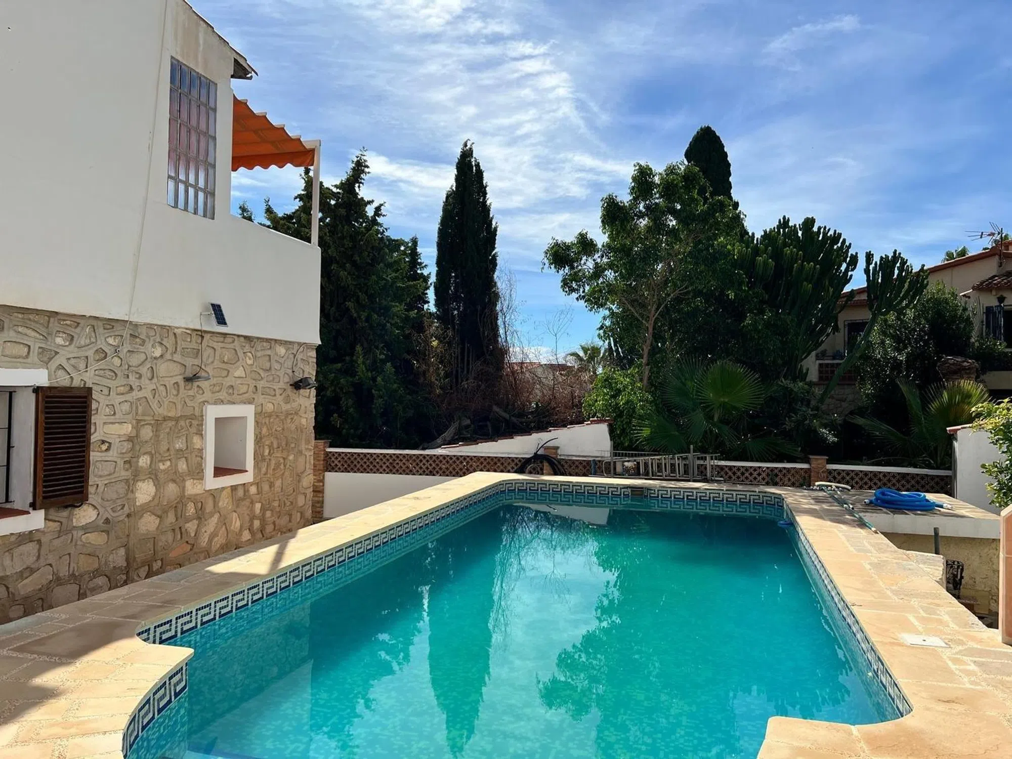 Magnífico Chalet Independiente con Apartamento y Piscina Privada, a Solo 10 Minutos de Benidorm ¡Descubre tu nuevo hogar! Te presentamos un espectacular chalet independiente de 295 m², situado en una parcela de 443 m², que combina comodidad, espacio y privacidad. Este excepcional inmueble se distribuye en dos viviendas, perfectas para disfrutar de la vida en familia o como inversión. Descripción de la Casa Principal Al ingresar, te recibirán un amplio salón-comedor luminoso y acogedor, ideal para momentos de relajación y entretenimiento. La cocina abierta al salón permite una convivencia fluida y, desde aquí, tendrás acceso directo a una hermosa terraza, perfecta para disfrutar de tus desayunos al aire libre. La casa principal cuenta con dos habitaciones dobles, proporcionando un espacio confortable para toda la familia, y un baño completo equipado con todo lo necesario. Apartamento Independiente Accediendo desde la parcela en planta baja, encontrarás un apartamento independiente que ofrece una excelente oportunidad para alquilar o recibir a tus invitados. Este espacio incluye un salón-comedor con cocina y despensa, un baño completo y dos habitaciones, garantizando privacidad y comodidad. Espacios Exteriores El chalet cuenta con una encantadora piscina privada, ideal para disfrutar en los días soleados. A su alrededor, hay una zona de cenador y barbacoa, perfecta para reuniones familiares o con amigos. Además, en la parcela se encuentra una tercera estancia: una habitación destinada a la colada, que alberga la lavadora y proporciona un práctico espacio de almacenamiento. También incluye dos trasteros, uno para herramientas y otro para mayor capacidad. La parcela ofrece espacio para aparcar hasta dos coches, brindando comodidad y facilidad de acceso. Ubicación Ideal Ubicado a solo 10 minutos de Benidorm, este chalet ofrece la tranquilidad de un entorno residencial sin renunciar a la cercanía de todas las comodidades y atracciones que la ciudad tiene para ofrecer. Además, está cerca de farmacias, supermercados y más, asegurando que todo lo que necesites esté a tu alcance. No Pierdas la Oportunidad Este magnífico chalet con dos viviendas es una oportunidad única en el mercado. ¡No esperes más para visitarlo y enamorarte de su encanto! Contáctanos para más información y para concertar una visita. ¡Tu nuevo hogar te está esperando!