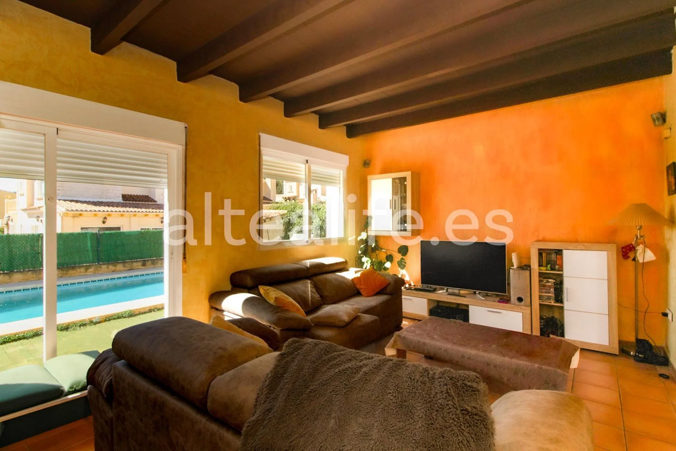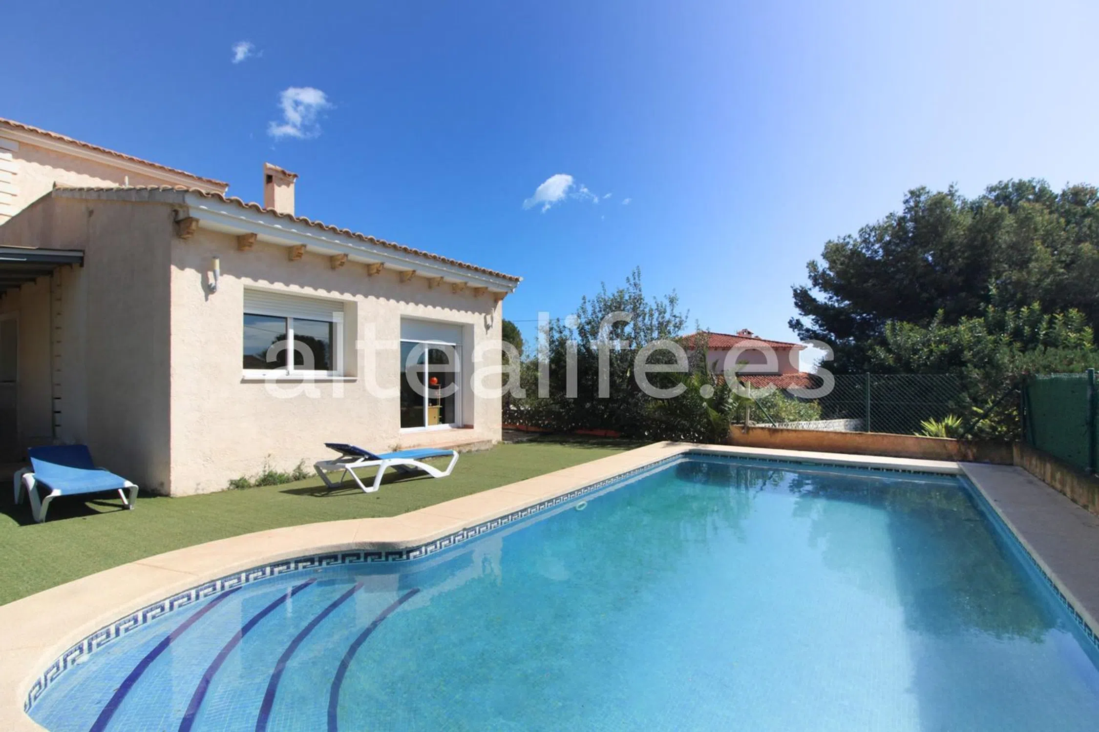 Villa de 173 m² construida sobre una parcela de 373 m² en la Urbanización Holiday Club. Ubicada en una zona tranquila pero muy bien comunicada, cerca de supermercados y servicios, y a tan solo 10 minutos en coche de la Playa del Albir, así como de La Nucía, Alfaz del Pi y Benidorm. Una propiedad ideal para quienes buscan espacio, privacidad y cercanía a todo. Distribución de la Vivienda: Planta Baja: · Recibidor amplio y funcional. · 1 dormitorio. · 1 baño completo. · Cocina independiente, con acceso a lavadero cubierto en la zona exterior. · Salón-comedor luminoso, con acceso directo a la zona exterior y piscina a través de grandes ventanales. Planta Superior: · 3 dormitorios con armarios empotrados. · 1 baño completo. · Dormitorio principal con acceso a una gran terraza, con vistas despejadas a la montaña y vistas parciales al mar. Exterior y Zonas de Ocio: · Zona de piscina con amplia superficie de césped artificial y espacio para hamacas, ideal para tomar el sol y relajarse. · Área de barbacoa con porche cubierto, perfecta como comedor de verano. · Lavadero exterior cubierto. · Trastero exterior para almacenaje adicional. · Zona de parking en la entrada de la propiedad, con espacio para varios vehículos. Características y Extras: Aire acondicionado en varias estancias. Calefacción central, garantizando confort durante todo el año. Orientación Sur, lo que proporciona luminosidad y calidez natural. La vivienda se encuentra en buen estado, aunque el exterior requiere algunas mejoras o arreglos estéticos. Una villa con muchas posibilidades y muy cerca de todo lo necesario, ideal tanto como residencia habitual como para segunda residencia. ACCESO A LA NUCÍA La Nucía está a 54km de Alicante, 10km. de Benidorm y a 149km. De Valencia. Altea tiene fácil acceso por carretera tanto por autovía como por la Carretera Nacional N-332, pero también está conectada mediante autobús con las dos capitales de provincia de Alicante y Valencia y con Benidorm, además de un servicio de TRAM que la conecta con Benidorm y Alicante. Para llegar a Altea por carretera, puedes tomar la Carretera Nacional N-332 o la Autopista del Mediterráneo AP-7, en la salida 64. Tiene fácil acceso a dos aeropuertos: -Alicante, a 61 km -Valencia, a 157 km.