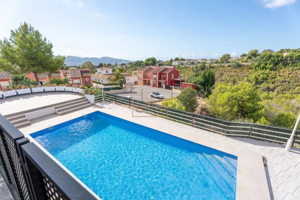 Esta villa completamente renovada, construida originalmente en 1975 y recién terminada con los más altos estándares, ofrece una oportunidad única para disfrutar del confort moderno en una de las ubicaciones más privilegiadas de La Nucía. Con impresionantes vistas panorámicas al mar sobre Benidorm y hacia Albir, la propiedad combina amplios espacios habitables con un elegante acabado contemporáneo. La villa se distribuye en dos niveles, con la planta superior principal que cuenta con una luminosa sala de estar donde los grandes ventanales enmarcan las impresionantes vistas. La moderna cocina equipada es totalmente nueva y se conecta a la perfección con el comedor y la sala de estar. Este nivel incluye dos amplios dormitorios: una suite principal con un gran cuarto de baño en suite y un segundo dormitorio con un cuarto de baño contiguo, que también da servicio a la sala de estar principal. Los armarios empotrados añaden estilo y funcionalidad. La planta baja alberga dos dormitorios grandes adicionales que comparten un moderno cuarto de baño, así como una amplia zona de lavandería y servicio. Una segunda cocina recién instalada ofrece acceso directo a la terraza de la piscina, ideal para recibir invitados o disfrutar de comidas al aire libre. Esta planta también conecta con el garaje cerrado para mayor comodidad. En el exterior, la villa impresiona con una enorme terraza que ofrece espectaculares vistas al mar, así como una gran parcela privada con infinitas posibilidades para el paisajismo o la creación de espacios de ocio adicionales. Un amplio camino de entrada proporciona un amplio aparcamiento para varios vehículos. Espaciosa, moderna y situada en un lugar impresionante, esta villa es perfecta como vivienda familiar o como lujoso refugio en la Costa Blanca. *La información de este anuncio es meramente informativa y puede contener errores. [IW].