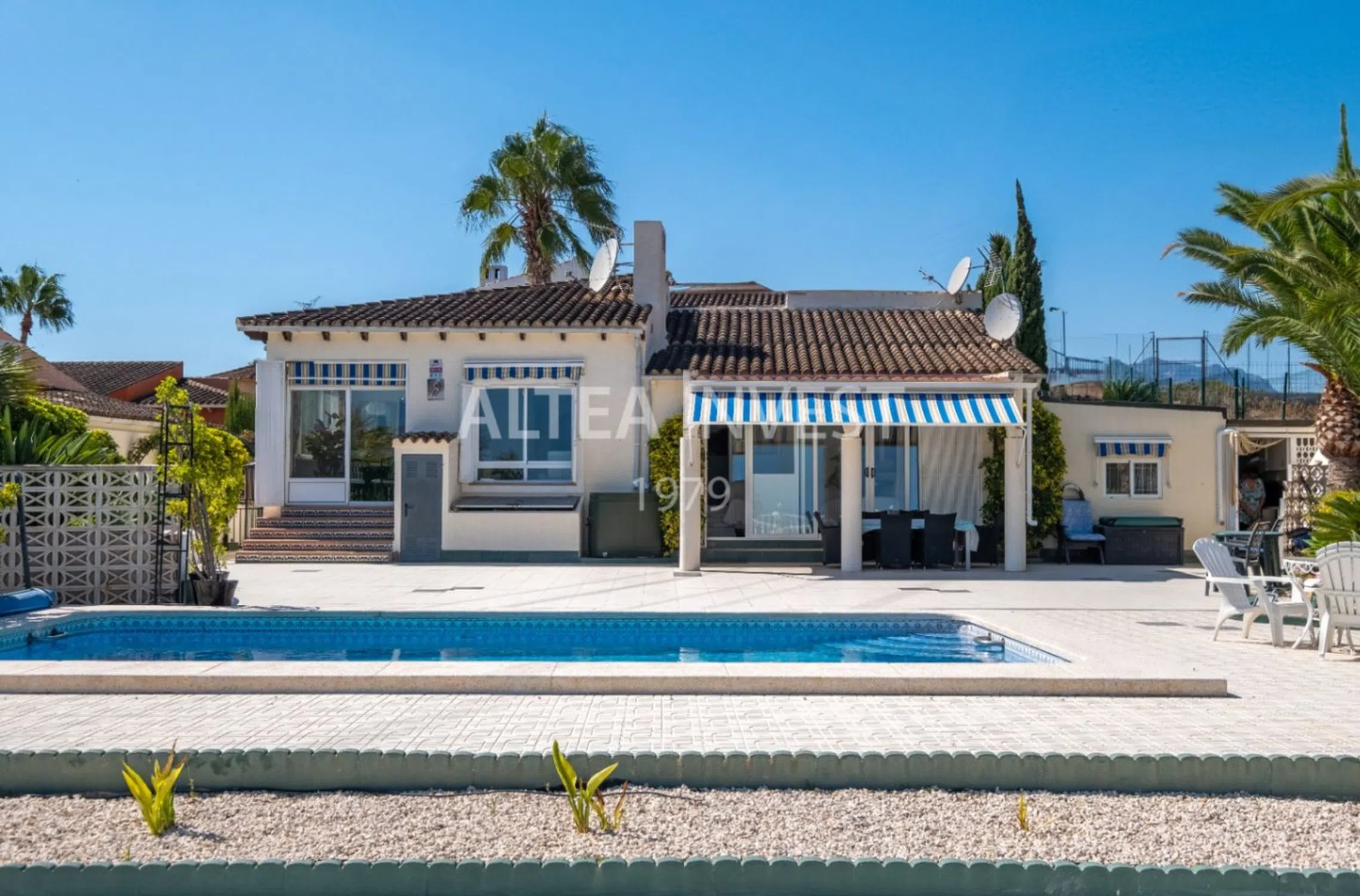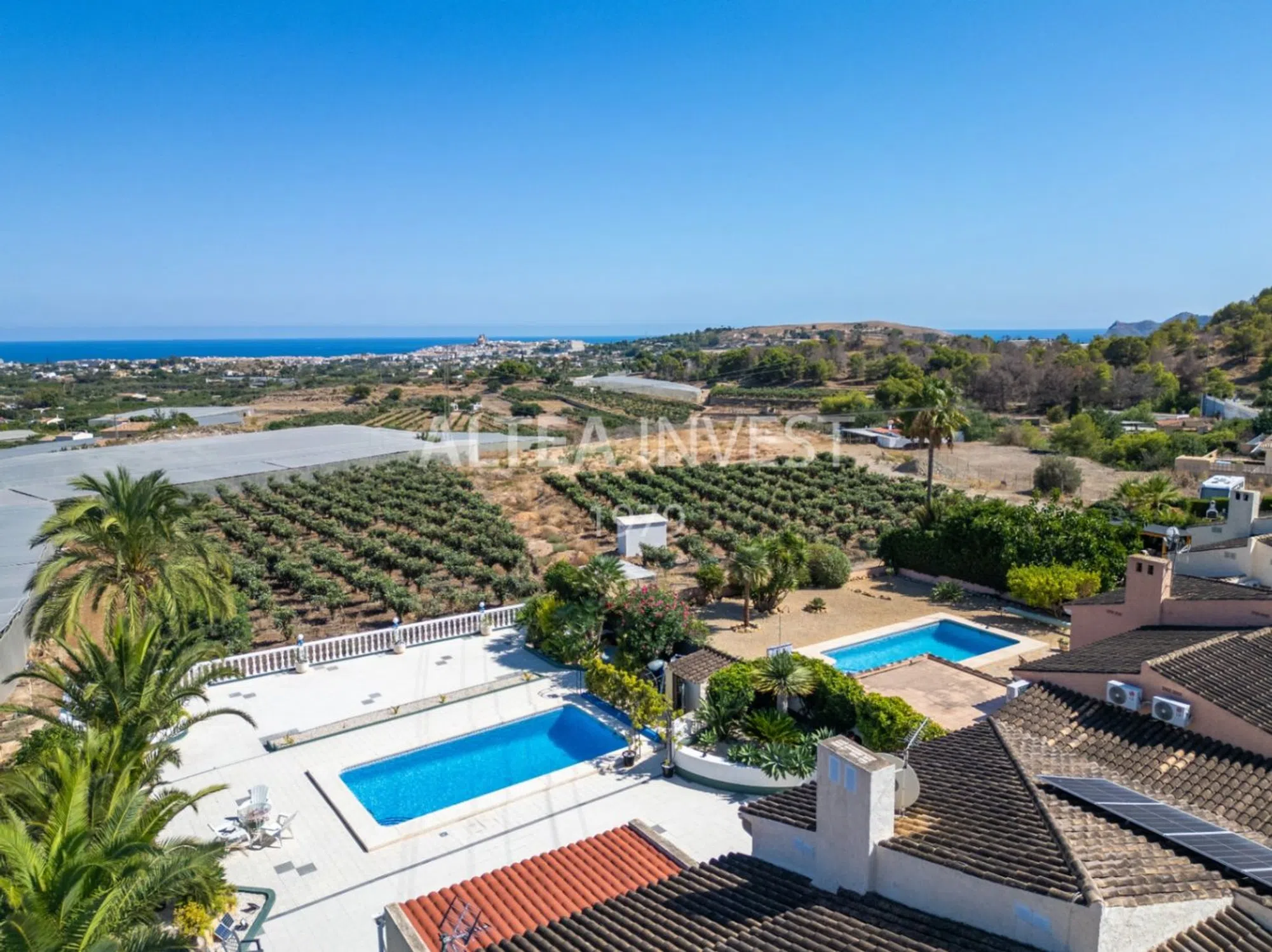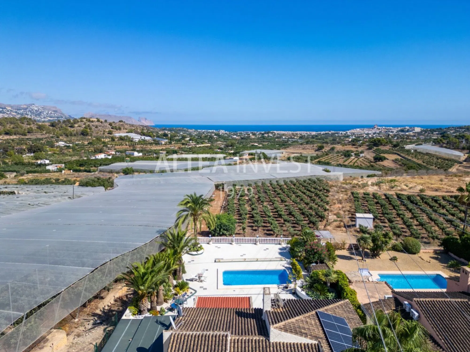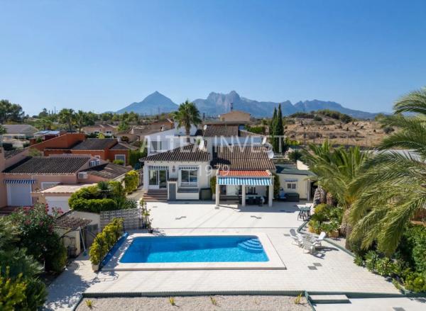 Acogedora villa mediterránea con espectaculares vistas a la bahía de Altea Características Principales: Entorno Privilegiado y Privacidad Total: Situada al final de una calle privada en la zona limítrofe entre La Nucía y Altea, esta villa disfruta de un ambiente tranquilo con vistas abiertas al mar y a la montaña, a menos de 5 minutos en coche del centro de Altea y a 10 minutos de la playa. Arquitectura en una Sola Planta y Renovación Cuidada: Con 178 m² renovados en 2010, la vivienda combina diseño atemporal, confort y practicidad, con orientación sureste que asegura luminosidad desde primeras horas del día. Distribución Funcional y Conectada con el Exterior: Un salón amplio y luminoso actúa como corazón de la casa y se integra con una terraza de invierno acristalada, perfecta como sala de lectura o comedor de todas las estaciones. Cocina Independiente y Equipada: Espacio práctico y bien resuelto, pensado para el día a día, con fácil relación con las zonas sociales. Zona de Noche en la Casa Principal: Dos dormitorios y dos baños, incluyendo una suite con baño privado y un segundo baño con ducha a ras de suelo. Anexo de Invitados con Total Independencia: Tercer dormitorio, tercer baño y segunda cocina, ideal para familia, huéspedes de larga estancia o como estudio privado. Exteriores con encanto Mediterráneo: Piscina privada y terraza soleada orientadas al sureste, junto a un jardín mediterráneo de bajo mantenimiento que aporta color y frescura durante todo el año. Confort y Eficiencia: Calefacción central de gas, aire acondicionado, paneles solares y aparcamiento privado para dos coches. Conectividad Estratégica: A 45 minutos del aeropuerto de Alicante y 90 minutos de Valencia, con acceso rápido a servicios, restaurantes y puertos deportivos de la Costa Blanca. Descripción Detallada Esta villa es un refugio mediterráneo donde destaca la calma del lugar, la luz y la privacidad de la propiedad. Su diseño en una sola planta eleva la comodidad diaria: el amplio salón, bañado por la luz natural, se abre al exterior, creando una transición fluida entre interior y exterior y multiplicando los escenarios de disfrute durante todo el año. La cocina independiente, práctica y bien distribuida, sirve de apoyo perfecto a la zona social, facilitando reuniones familiares y veladas con amigos. En el ala de noche, dos dormitorios acogedores garantizan descanso y discreción; la suite principal aporta un punto íntimo de confort, mientras que el segundo baño, con ducha a ras de suelo, añade funcionalidad contemporánea. El anexo independiente amplía las posibilidades de la propiedad con un tercer dormitorio, baño y segunda cocina, ofreciendo un espacio versátil para invitados, familiares o un uso profesional en casa, sin renunciar a la privacidad. En el exterior, la piscina y la terraza orientada al sureste invitan a disfrutar del sol y de las vistas abiertas al mar y a la montaña, enmarcadas por un jardín mediterráneo de fácil mantenimiento. Los paneles solares, la calefacción de gas y el aire acondicionado aseguran eficiencia y confort en cualquier estación, mientras que el aparcamiento para dos coches simplifica la logística diaria. A solo unos minutos de Altea y del mar, esta villa combina ubicación, vistas y practicidad con una elegancia serena. Un hogar listo para disfrutar el estilo de vida de la Costa Blanca con la paz y la privacidad que lo hacen verdaderamente especial.