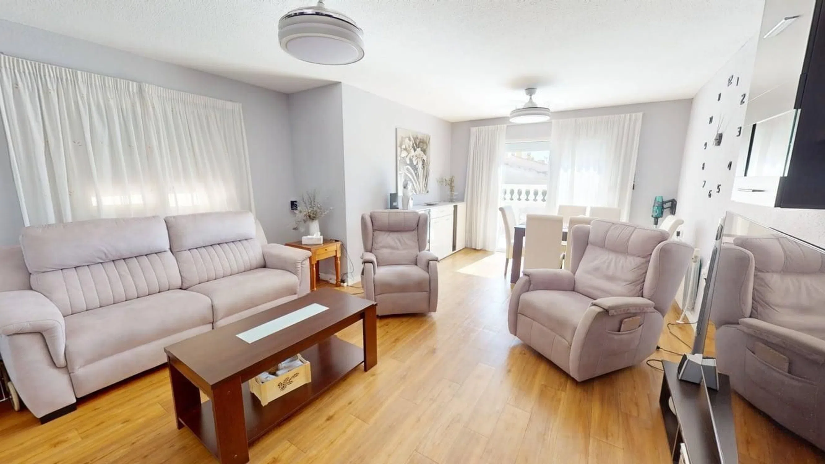 Este chalet pareado en La Nucía ofrece 150 m² construidos sobre una parcela de 238 m², con un total de 4 dormitorios y 3 baños. Es una vivienda que combina interiores amplios, zonas exteriores privadas y excelentes instalaciones comunitarias, diseñada para disfrutar de una vida cómoda en una de las zonas más demandadas de la Costa Blanca. En la planta principal encontramos un salón luminoso, un dormitorio amplio, un baño con ducha y una cocina independiente con espacio suficiente para comedor. En la primera planta hay dos dormitorios muy espaciosos y dos baños, uno de ellos en suite. La planta sótano aporta aún más versatilidad con un segundo salón, otro dormitorio y un gran garaje. Gracias a su distribución y tamaño, este nivel puede transformarse fácilmente en un apartamento independiente, ideal para invitados, familia o incluso para uso de alquiler. La zona exterior invita a disfrutar al máximo del estilo de vida mediterráneo. Cuenta con piscina privada, terrazas soleadas y una cocina de verano totalmente cerrada con barbacoa y zona de comedor, creando el entorno perfecto para comidas familiares, reuniones con amigos o momentos de relax durante todo el año. El complejo residencial ofrece también piscinas para adultos y niños, jardines, pistas de pádel y tenis, además de una zona infantil — todo lo necesario para disfrutar de un estilo de vida completo sin salir de casa. La vivienda dispone de calefacción central y agua caliente por propano, aire acondicionado, paneles solares que reducen al mínimo los costes de energía y un salvaescaleras con asiento que la hace completamente accesible. Se vende sin amueblar, con la opción de negociar los muebles. Una amplia vivienda familiar con todas las comodidades, disponible por solo 388.500 €. ¡Contáctanos HOY para más información o para concertar una visita!