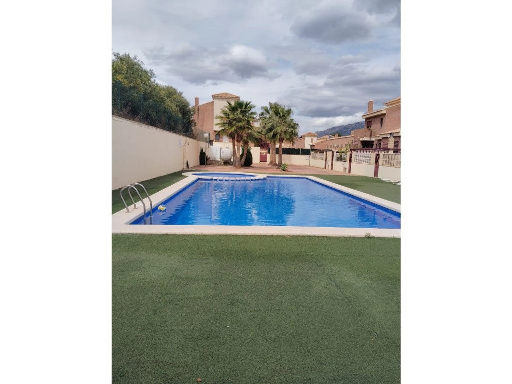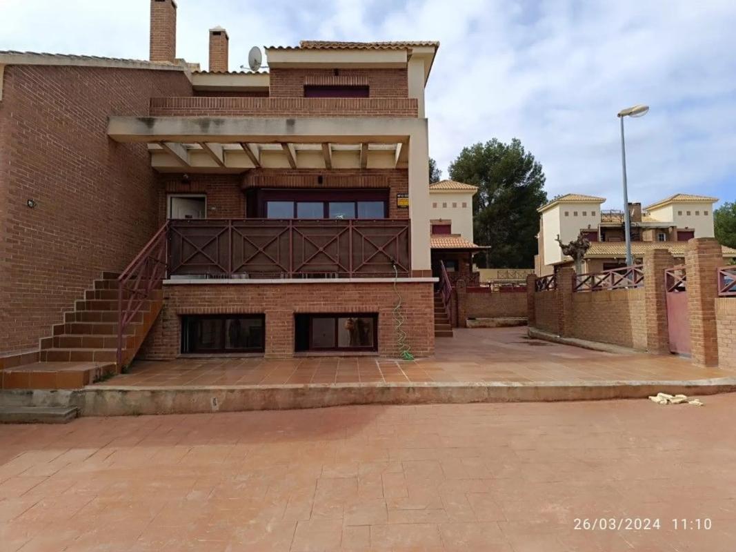 Chalet pareado de esquina en La Nucia. 206m² construidos y 175m² parcela. 3 plantas. Planta principal: amplio salon luminoso, cocina amueblada y equipada y aseo. Planta sotano: salon de juegos, 2 dormitorios con armarios empotrados y baño. 1ªplanta: 3 amplios dormitorios con armarios empotrados, 2 baños completos y 2 terrazas. Preinstalacion de aire acondicionado, terraza cubierta y patio. Piscina comunitaria. Totalmente amueblada. Lista para entrar a vivir. Parada de bus cerca. Urbanizacion muy tranquila.