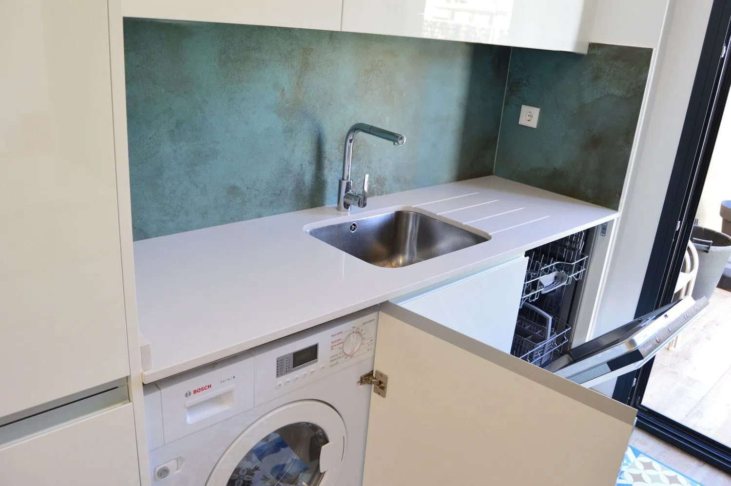 El luminoso salón, que integra una cocina abierta, ofrece un ambiente acogedor, mientras que en la planta baja también hay un baño para invitados. Una moderna escalera de metal y madera nos lleva a la planta superior, donde se encuentran dos acogedores dormitorios y un baño compartido, con hermosas vistas al mar que completan este atractivo espacio.