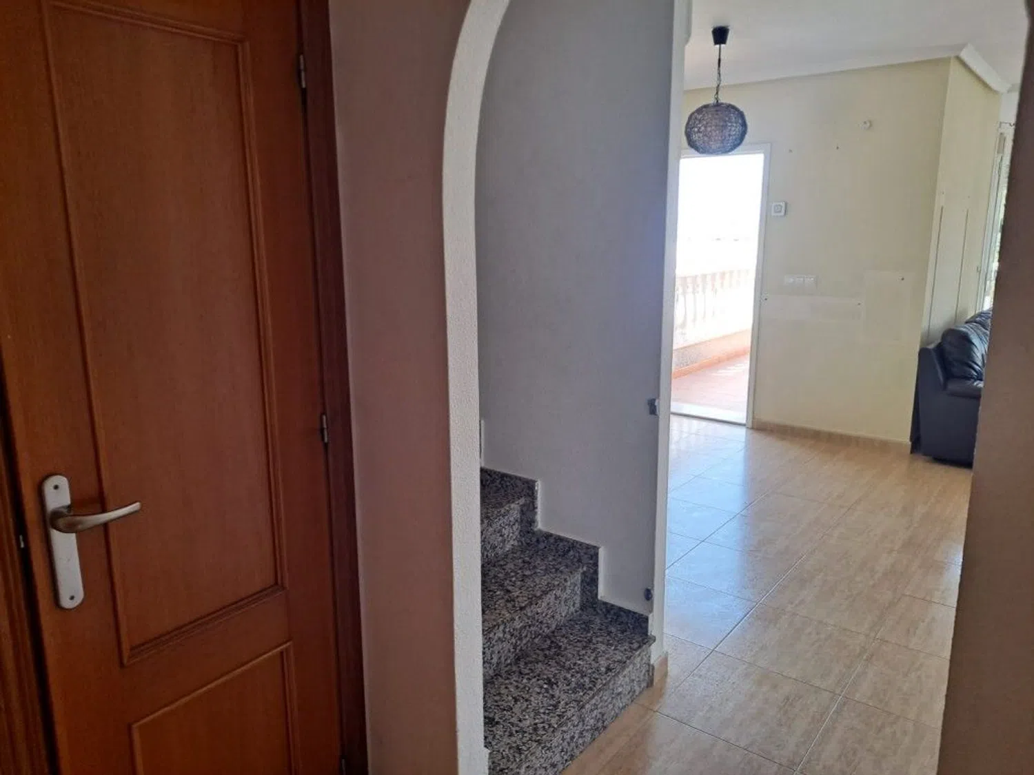 Subiendo por una elegante escalera de mármol con pasamanos de madera, accede a la planta superior, donde encontrará un segundo baño y dos dormitorios adicionales equipados con armarios empotrados, perfectos para recibir a familiares o invitados. Desde aquí, podrá acceder a una amplia terraza privada que ofrece impresionantes vistas a los campos y árboles frutales que rodean la propiedad.