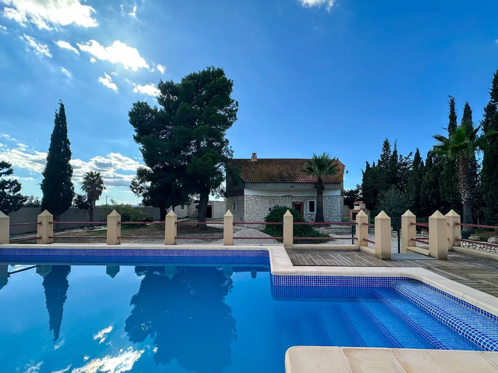 Alicante Sales & Lettings se complace en presentar esta casa de campo con piscina y garaje en Monforte del Cid, Alicante. La propiedad se encuentra a solo 3 km del centro de Monforte del Cid, donde encontrarás todos los servicios necesarios para el día a día, incluyendo bares, restaurantes, tiendas y mucho más. También está muy bien comunicada con Novelda, Aspe, el Club de Golf Alenda y la ciudad de Alicante. La vivienda está distribuida en tres plantas. En la planta baja encontrarás un amplio salón central con acceso tanto a la parte delantera como a la trasera de la propiedad. Hay tres dormitorios, un baño y una cocina independiente con comedor. Desde el salón se accede al sótano, un espacio amplio compuesto por dos habitaciones. Actualmente no se utiliza, pero sería ideal como zona independiente para invitados o para múltiples usos. Desde el salón también se accede a la primera planta, que está sin terminar: un gran proyecto y un espacio enorme para crear más dormitorios y baños si se desea. La casa fue construida originalmente con solo la planta baja y el sótano; la primera planta se añadió posteriormente. Gracias a esto, el techo entre ambas plantas es sólido, por lo que no hay urgencia en comenzar las obras si no se desea. El espacio exterior es verdaderamente relajante, lleno de vegetación con árboles maduros, plantas y palmeras. La propiedad se asienta sobre una amplia parcela de unos 1.900 m² y se accede por carretera asfaltada con entrada para vehículos y portones automáticos. También hay un garaje/taller de buen tamaño en la parte delantera. Además, la parcela dispone de un segundo acceso por la parte trasera con entrada de hormigón, ofreciendo dos opciones de acceso. En el centro de la parcela se encuentra la piscina, rodeada de una espaciosa terraza para tomar el sol con vistas a la casa y los jardines: el lugar perfecto para disfrutar de la tranquilidad del entorno. Esta propiedad tiene mucho que ofrecer a quienes buscan transformarla en su hogar ideal. Situada en un entorno rural pero con fácil acceso a los pueblos y a la ciudad, ofrece lo mejor de ambos mundos. Distancias: Monforte del Cid – 3 min Novelda – 10 min Club de Golf Alenda – 10 min Aspe – 13 min Ciudad de Alicante – 17 min Para más información o para concertar una visita, no dudes en ponerte en contacto con nosotros.