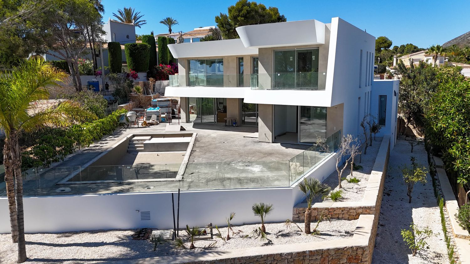 VILLA DE LUJO CON VISTAS AL MAR A POCOS MINUTOS DE LA PLAYA EL PORTET EN MORAIRA.¡Directamente del Promotor!Esta elegante villa, construida con las mejores calidades, está estratégicamente bien ubicada a 1200m y a pocos minutos en coche de las hermosas playas y del centro de Moraira. ¡Te está esperando!DISTRIBUCIÓN:Planta Principal (153,68 m²)Al entrar, te recibirá una amplia y luminosa sala de estar que se integra perfectamente con una cocina abierta equipada con una moderna isla. Este nivel también cuenta con un cómodo aseo de invitados, lavandería y 1 dormitorio con baño en suite. Desde todas las áreas de esta planta, podrás acceder a una espectacular terraza con una piscina de 12 x 4.5 m y zona de barbacoa ideal para disfrutar de momentos inolvidables al aire libre.Primera Planta (132,28 m²)En esta planta, encontrarás tres espaciosos dormitorios, cada uno con su propio baño en suite y terraza privada. Aquí, podrás relajarte y disfrutar de impresionantes vistas mientras te sumerges en la serenidad de tu entorno.Total superficie de vivienda construida con terrazas cubiertas y descubiertas 664 m2.Total superficie parcela 1.000 m2.EQUIPAMIENTO:•Carpintería exterior Technal con vidrio de seguridad y guardián Sun.•Cocina “italiana Zampieri” completa con electrodomésticos Miele•Baños y grifería integrada de porcelanosa.•Iluminación LED. En forjados y en interior.•Sistema de aerotermia para agua caliente y suelo radiante.•Aire acondicionado por conductos (frío/calor) control independiente por estancia en toda la casa.•Armarios empotrados con iluminación.•Persianas eléctricas.•Alarma interior y preinstalación de alarma exterior y cámaras de seguridad.•Piscina de 12 x 4.5 m, rodeada de una terraza de 250 m².•Jardín con riego automático e iluminación.•Portones automáticos.•Preinstalación para sistema solar.•Sistema solar para agua sanitaria.•Solado porcelánico de 1,20 x 1,20.•Puerta de entrada seguridad pivotante.•Gran formato en fachadas y baños.•Orientación suroeste.•Sistema de audio sonós en zona de barbacoa y terraza cubierta/piscina•Sistema domótico control iluminación exterior y jardín y control de suelo radiante, puertas acceso parcela, control persianas•Pergola coche 26,50m2.•Clasificación energética A.No pierdas la oportunidad de convertir esta hermosa villa en tu nuevo hogar. ¡Contáctanos hoy mismo para descubrir más sobre esta magnífica propiedad y empezar a vivir el estilo de vida que siempre has deseado en Moraira!