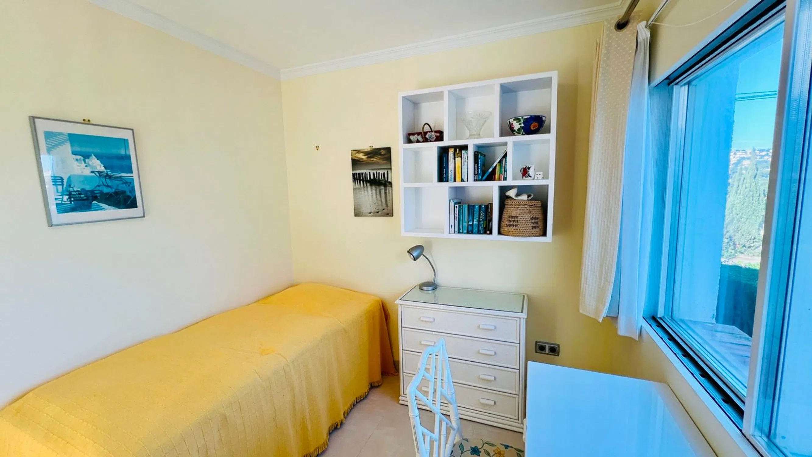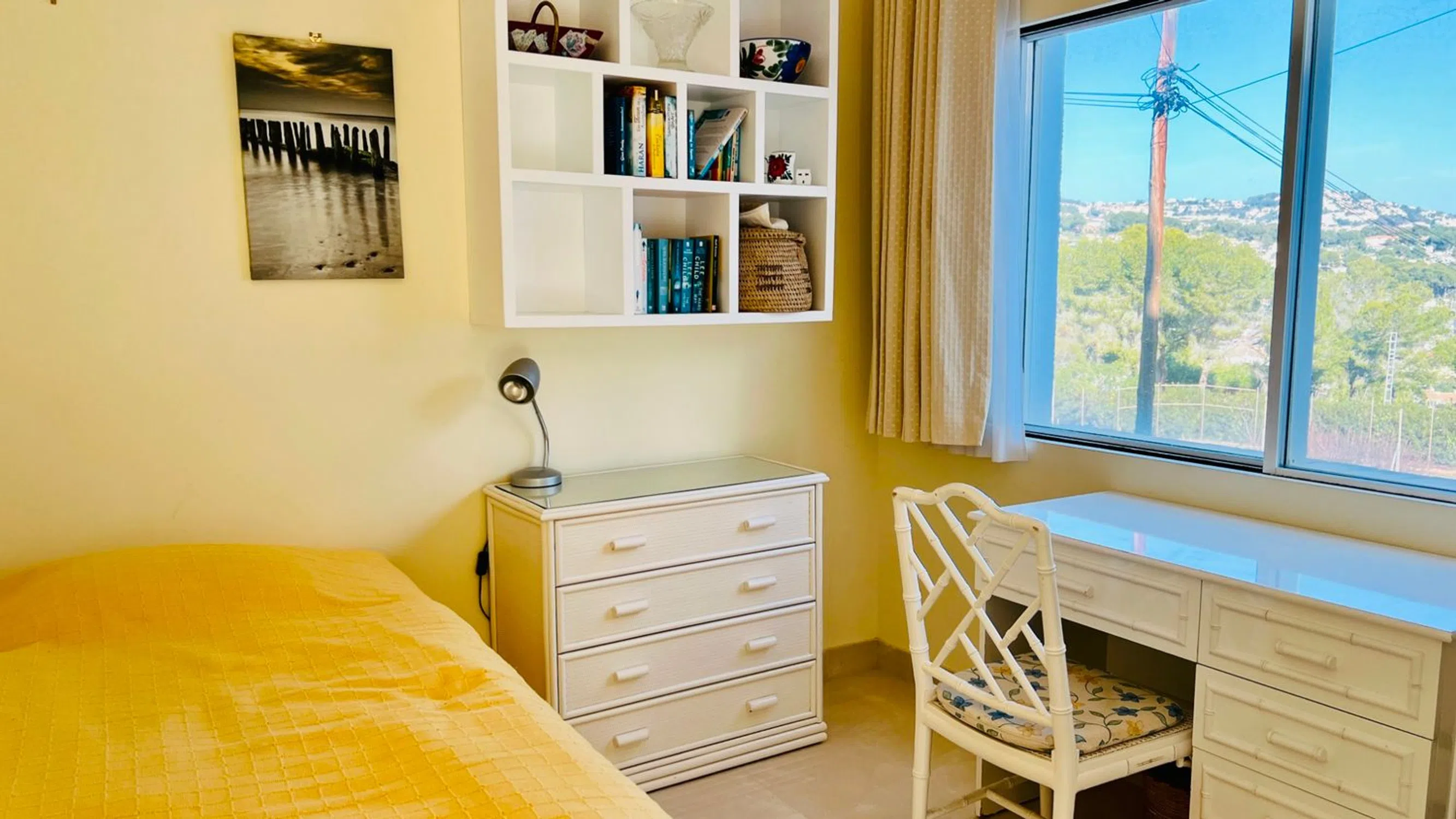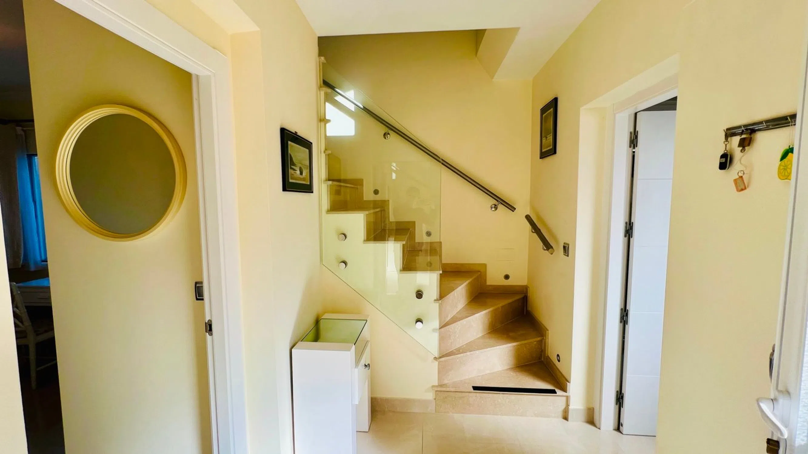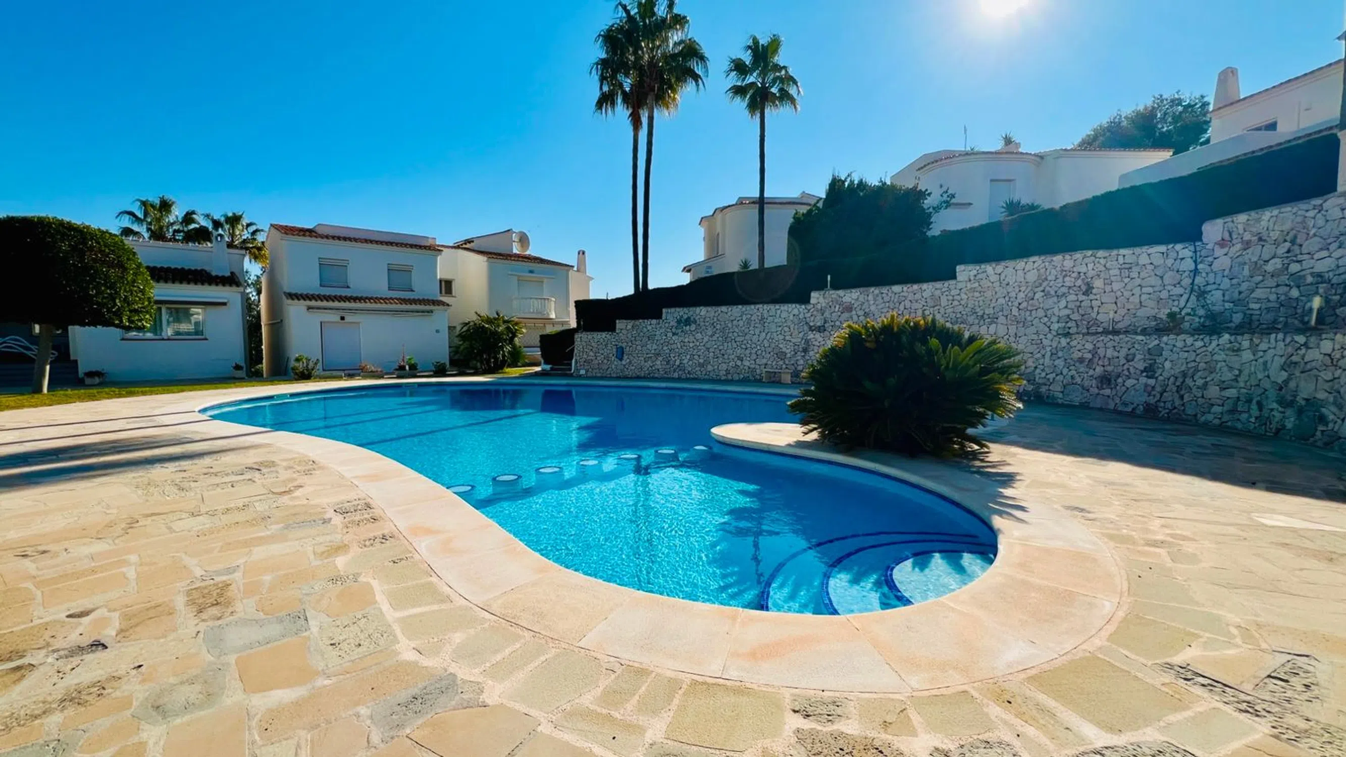 Impecable apartamento dúplex en venta en exclusiva comunidad cerrada, Cap Blanc, Moraira, con vistas al Montgó, valle y montaña. Ubicado en una codiciada urbanización privada y cerrada, este apartamento dúplex de dos dormitorios y dos baños, impecablemente mantenido, ofrece una vida moderna en dos plantas. Disfrute de impresionantes vistas que se extienden por el valle hacia el Montgó desde la comodidad de esta encantadora vivienda. A un corto paseo de una playa privada, así como de tiendas, bares y restaurantes locales, esta propiedad goza de una ubicación inmejorable. El centro de Moraira está a un corto trayecto en coche, lo que la convierte en una escapada vacacional ideal o una oportunidad de inversión. Las propiedades en esta urbanización rara vez se venden, así que no pierda esta oportunidad única. ¡Contáctenos hoy mismo para concertar una visita! ALOJAMIENTO: Porche cubierto, recibidor, dormitorio doble con baño en suite, segundo dormitorio doble, baño familiar. ESCALERA INTERIOR A LA PLANTA SUPERIOR: Salón, comedor y cocina de concepto abierto. EXTERIOR: Naya cubierta, Terraza trasera, Piscina comunitaria de agua salada, Terrazas, Pista de tenis, Parking, TODOS LOS DETALLES Apartamento dúplex contemporáneo en venta en la cotizada zona de Cap Blanc, Moraira. Esta villa modernizada disfruta de una ubicación tranquila y elevada con fabulosas vistas panorámicas al valle. Se encuentra en una prestigiosa comunidad cerrada y segura de tan solo 17 villas, todas recientemente pintadas. Se puede acceder a la propiedad a través de dos puertas de seguridad peatonales o a través de puertas vehiculares con control remoto que conducen a la entrada y las zonas de aparcamiento. Un sendero pavimentado serpentea a través de hermosos jardines comunitarios con palmeras, yucas, abetos y otras plantas mediterráneas, pasando por la piscina y las terrazas comunitarias. Desde el momento en que entra, se siente la paz y la tranquilidad de esta urbanización bien cuidada. Ubicada en el centro del bloque y distribuida en dos plantas, la villa se accede a través de un porche delantero cubierto con aplique de pared. La puerta principal, totalmente acristalada, da paso a un elegante pasillo inferior. A la izquierda se encuentra el dormitorio principal, con baño en suite con ducha a ras de suelo antideslizante y cristal autolimpiable, inodoro, lavabo, elegantes azulejos modernos, iluminación empotrada en el techo y una ventana esmerilada que aporta luz natural. El dormitorio principal cuenta con armarios empotrados con espejo, ventilador de techo y puertas de patio totalmente acristaladas que dan a una encantadora terraza soleada con vistas abiertas al valle. Rodeado de setos dentro de los jardines comunitarios, garantiza la privacidad. Desde este espacio también se accede al trastero subterráneo. Junto a la suite principal se encuentra un moderno cuarto de baño familiar, completamente alicatado, con inodoro, lavabo de pie, ducha a ras de suelo y radiador eléctrico. A la derecha del cuarto de baño familiar se encuentra un dormitorio doble, actualmente equipado con una cama individual y un despacho. Cuenta con un armario empotrado para guardarropa y espacio de almacenamiento, y una gran ventana doble que ofrece hermosas vistas al valle y a la pista de tenis comunitaria. Desde el pasillo inferior, una escalera de cristal y mármol con iluminación LED a ras de suelo y elegantes lámparas colgantes conduce a la planta superior, que consta de un salón, comedor y cocina de concepto abierto. La moderna cocina, compacta pero de diseño elegante, está equipada con elegantes muebles bajos y altos, encimeras de granito, fregadero y escurridor de acero inoxidable, horno eléctrico, vitrocerámica, extractor de humos y un amplio frigorífico-congelador. Un lavavajillas integrado y una ventana con vistas a los jardines comunitarios completan el espacio. Los armarios y cajones de cierre suave complementan esta