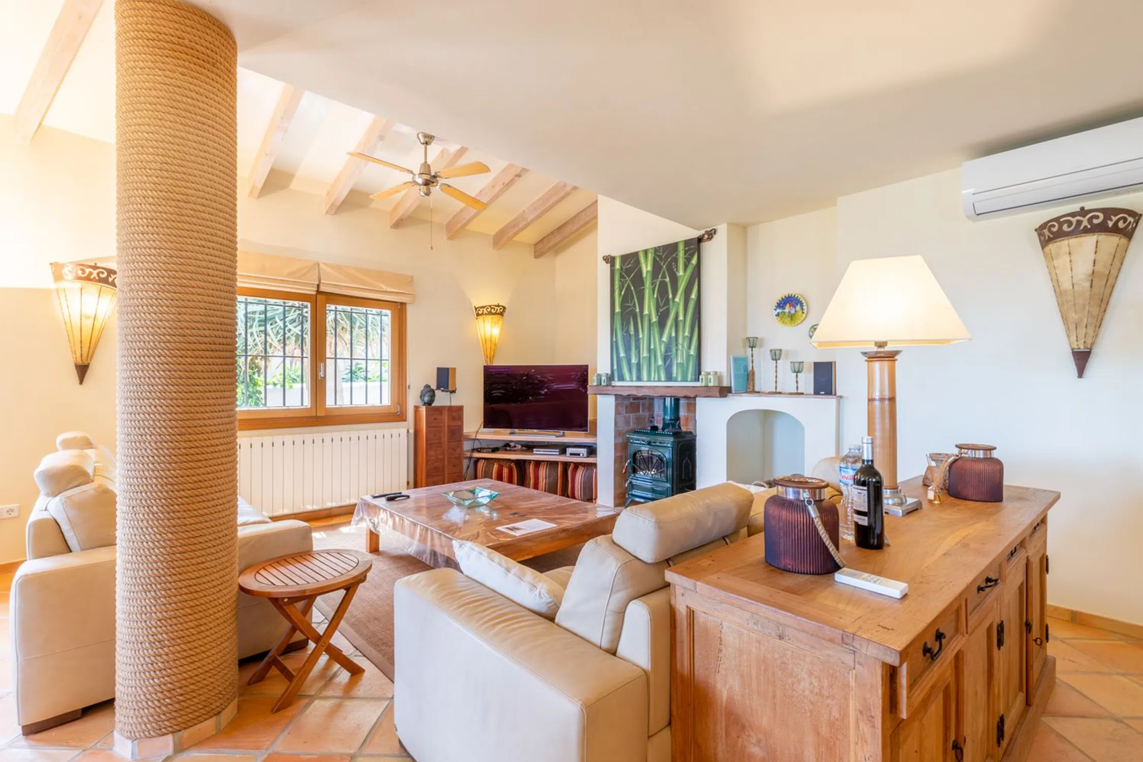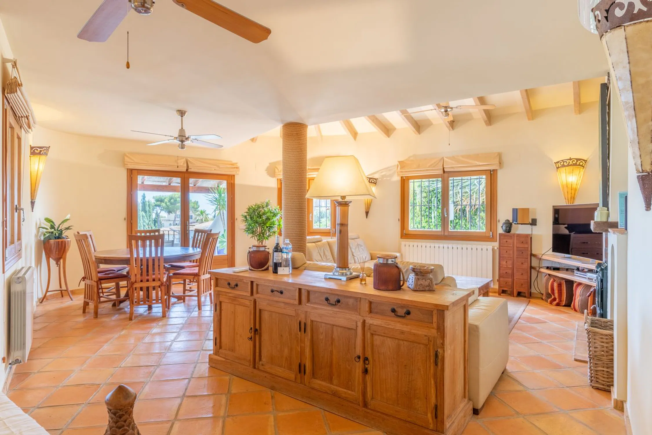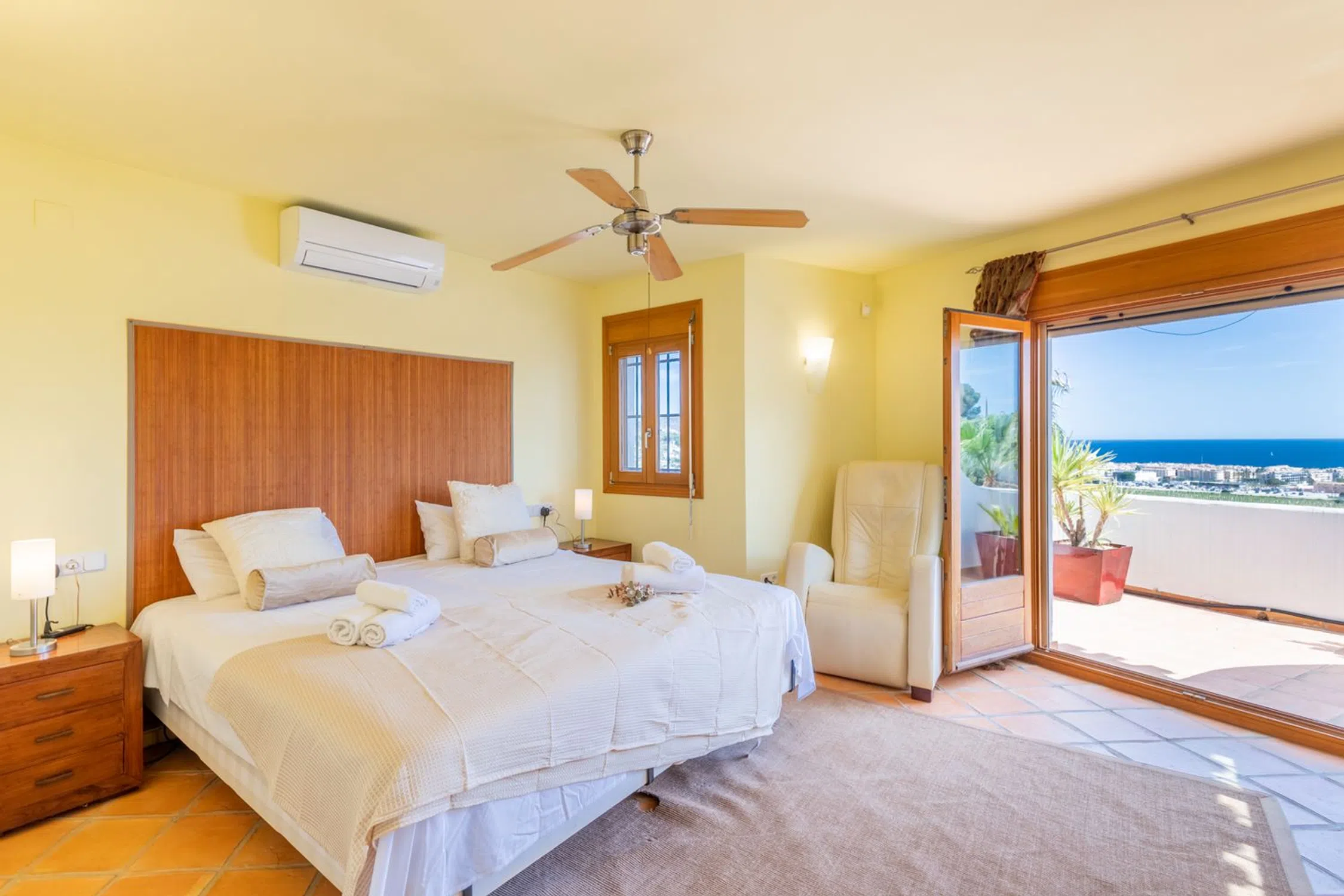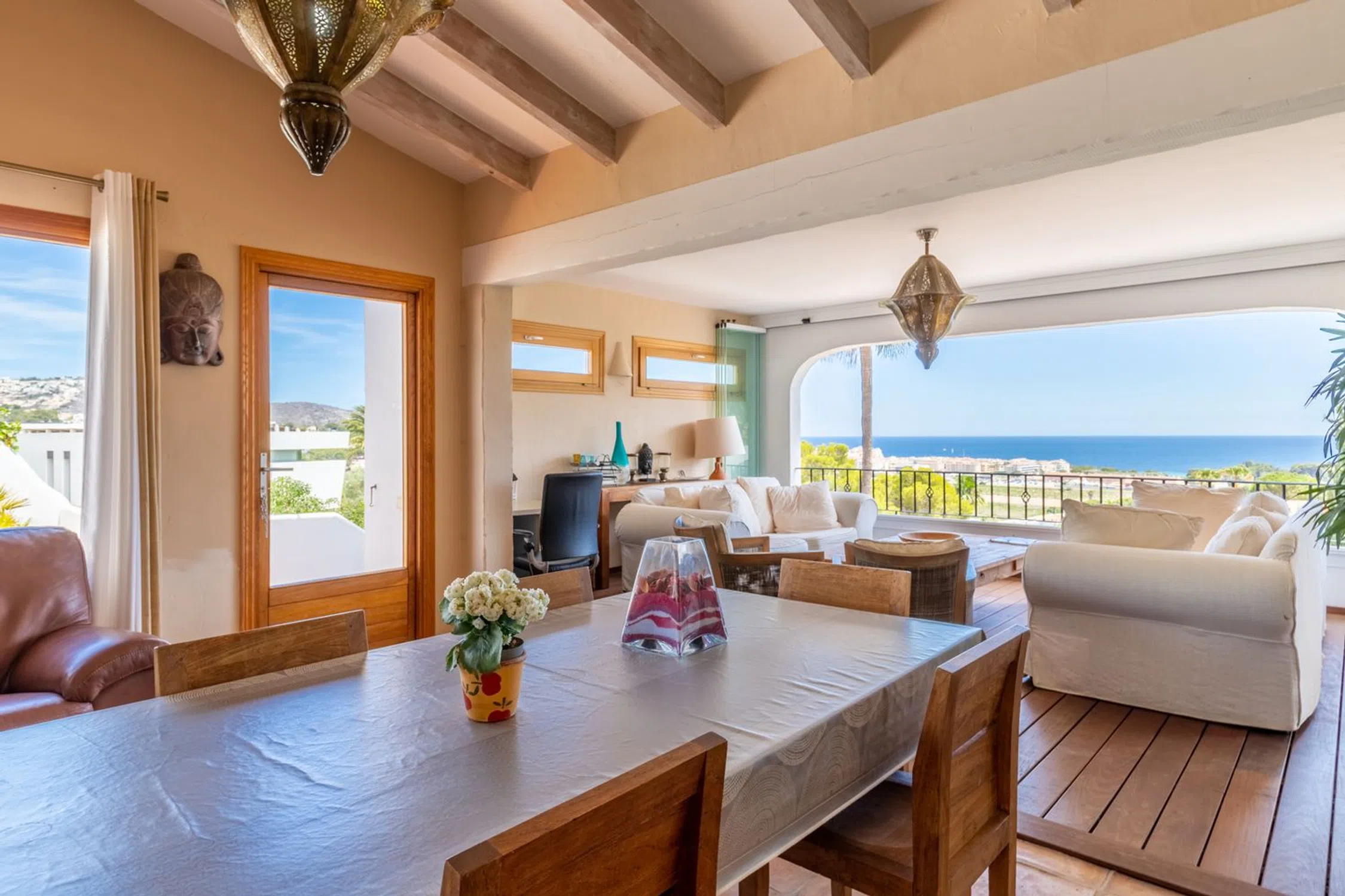 � Villa de lujo con vistas al mar, piscina climatizada y jardín mediterráneo en Moraira, Costa Blanca Una joya del estilo mediterráneo en uno de los enclaves más deseados de la Costa Blanca. Esta villa combina la elegancia tradicional con las prestaciones modernas más avanzadas, ofreciendo un hogar confortable, eficiente y preparado para disfrutarlo durante todo el año. Ubicada en una zona tranquila y residencial, a pocos minutos de la playa y del centro de Moraira, la propiedad disfruta de vistas abiertas y panorámicas al mar Mediterráneo y un entorno natural lleno de calma y privacidad. Características principales Piscina climatizada con cubierta solar de alta calidad, que permite prolongar la temporada de baño y maximiza la eficiencia energética. Sistema de calefacción central y aire acondicionado de última generación en todas las estancias. Jardín mediterráneo maduro, con especies autóctonas, palmeras, olivos y amplias zonas de relax. 4 dormitorios y 4 baños, distribuidos entre la vivienda principal y un apartamento independiente. Apartamento en planta baja, con dormitorio en suite, cocina totalmente equipada y salón-comedor: un espacio ideal para invitados o familiares que deseen privacidad. Amplias terrazas —algunas cubiertas— con zonas de estar, comedor exterior, barbacoa y ducha al aire libre. Salón principal con chimenea, comedor luminoso y cocina equipada con electrodomésticos modernos. Materiales naturales y cálidos, como suelos de terracota y acabados de inspiración mediterránea. Aparcamiento cubierto para dos vehículos dentro de una parcela vallada. Un estilo de vida mediterráneo Esta villa representa a la perfección el espíritu de Moraira: luz, calma y belleza natural. Ideal tanto como residencia permanente como para quienes buscan una segunda vivienda de lujo, ofrece privacidad, confort y proximidad a la playa, restaurantes y servicios. Un lugar para disfrutar del sol todo el año y vivir el auténtico encanto del Mediterráneo.