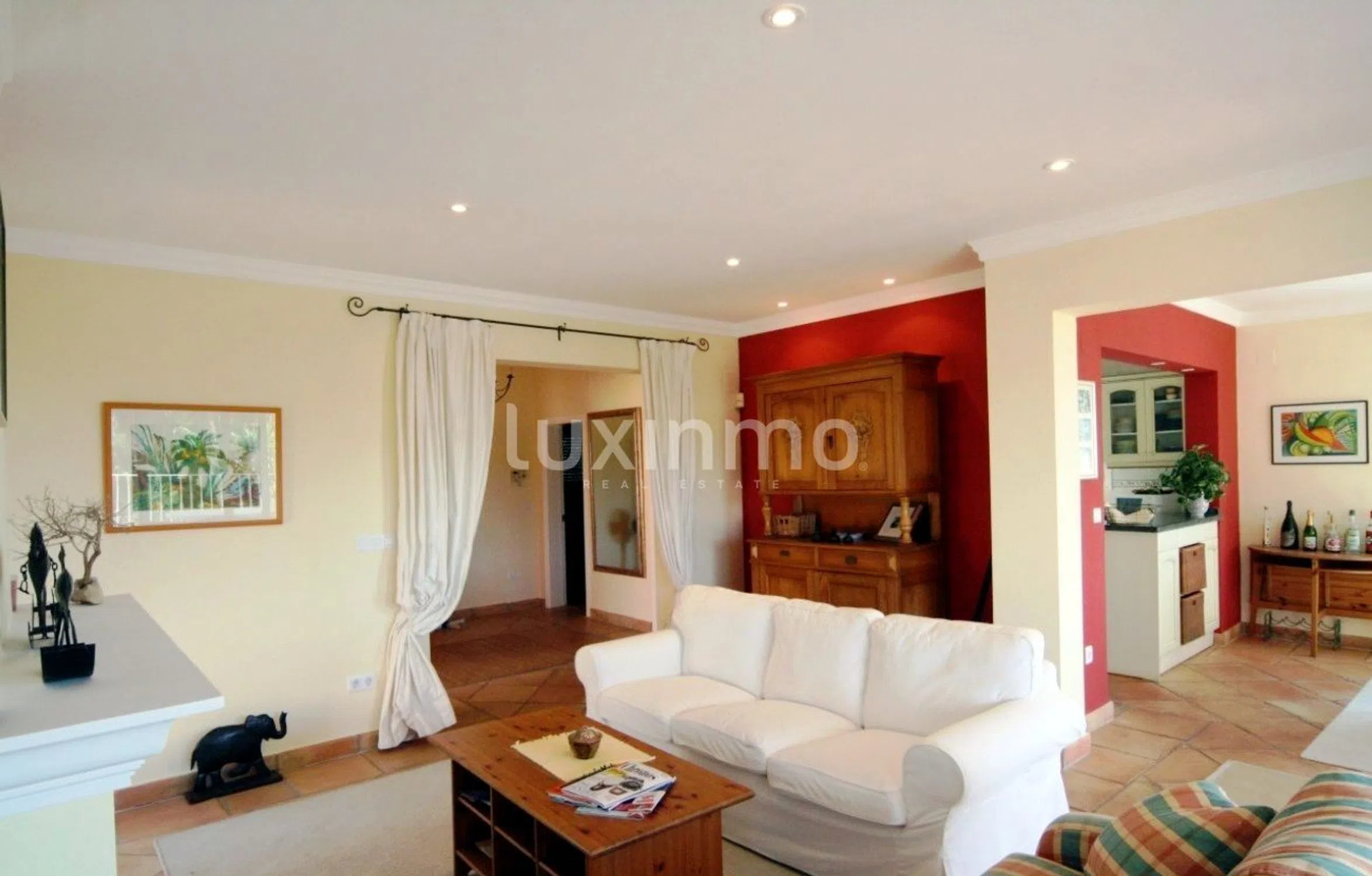 Lujosa villa de estilo español de 300m2 construidos en 2001, totalmente equipada y distribuida en dos niveles. La sala de estar principal consta de un gran hall de entrada, sala de estar con chimenea, hermosa cocina con barra de desayuno que se abre al comedor con una pared totalmente acristalada orientada al sur que ofrece fantásticas vistas sobre el valle y el mar. El dormitorio principal tiene vestidor y cuarto de ducha en suite con lavabos dobles, hay un segundo dormitorio doble y un baño grande. En la planta baja tiene una puerta de patio doble que conduce a una sala de estar / comedor con cocina americana; el tercer dormitorio doble tiene baño con ducha y puertas que dan a la terraza de la piscina. Hay un cuarto dormitorio doble y un gran trastero apto para convertirlo en otro dormitorio. La parcela de 800m² se ingresa a través de una puerta con un camino de entrada pavimentado que conduce a un garaje con puerta automática y azotea en la parte superior. El jardín se presenta con césped, plantas mediterráneas y palmeras, con riego automático e iluminación exterior. La piscina tiene escalinatas romanas, una entrada a la playa poco profunda de piedra natural y una cascada, con ducha exterior. EQUIPAMIENTO La villa tiene calefacción por suelo radiante, aire acondicionado, ventanas de PVC con doble acristalamiento, puerta blindada, instalaciones de almacenamiento, sistema de alarma, preinstalación de equipo estéreo B&O, armarios empotrados, garaje, se encuentra en una calle sin salida y tiene algunos vistas al mar también. ZONA La villa se encuentra en Moraira, Alicante, en la privilegiada zona de El Pinar de L'Advocat, cerca de otros famosos pueblos costeros como Javea, Benissa y Calpe. Tiene un litoral de más de 8 kilómetros, con hermosas playas y bahías, lo que lo convierte en un famoso atractivo turístico. Además, su muelle es uno de los más importantes de la Comunidad Valenciana. No cabe duda de que la villa se encuentra en una zona tranquila en una calle sin salida, con mucha privacidad, pero a la vez satisface todas las necesidades, y debido a la rica cultura de la zona, ocio y gastronomía, la La ciudad es reconocida como una de las más populares de la costa de Alicante.