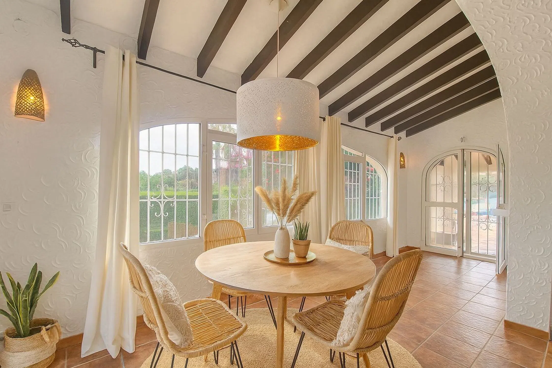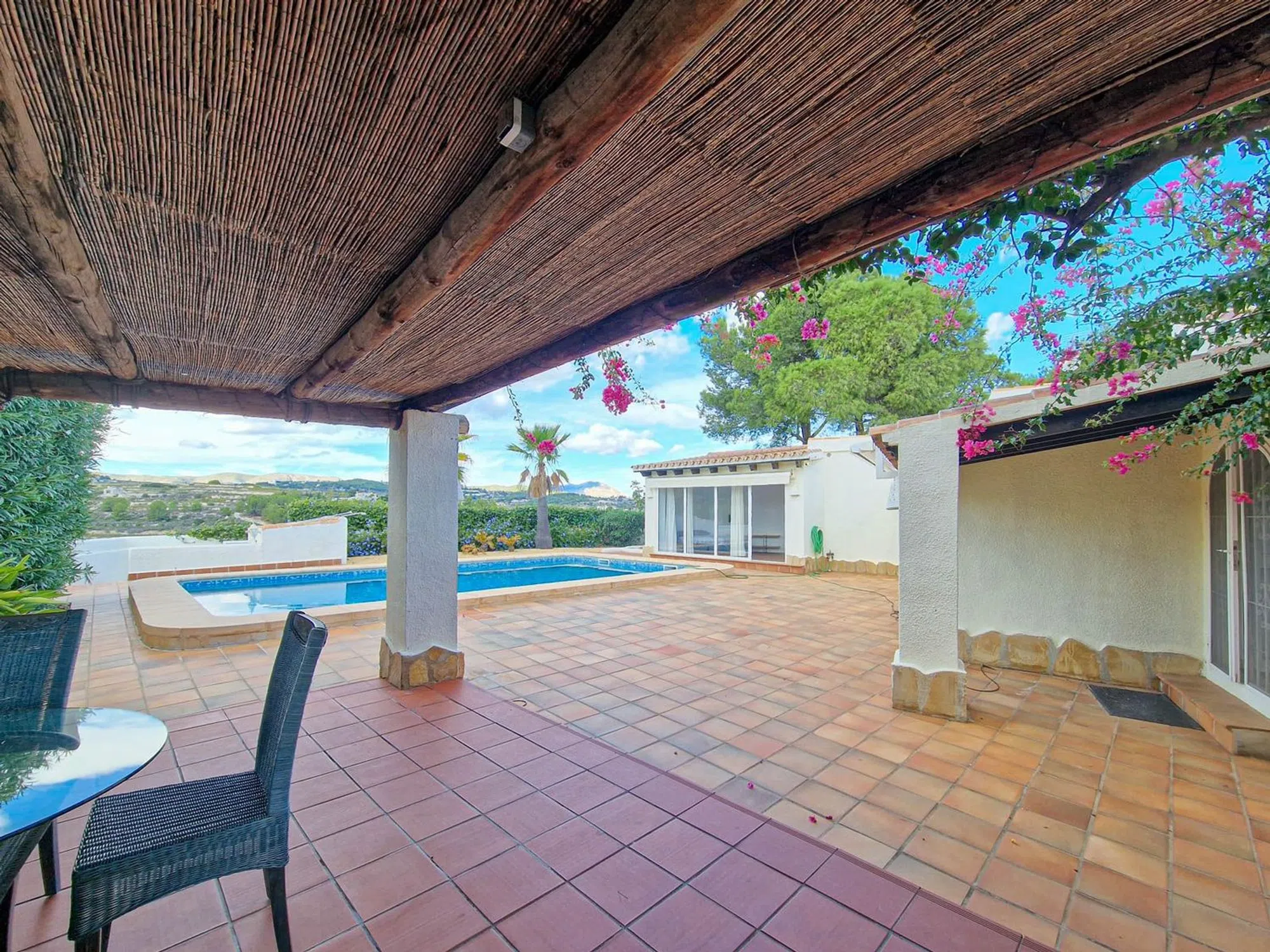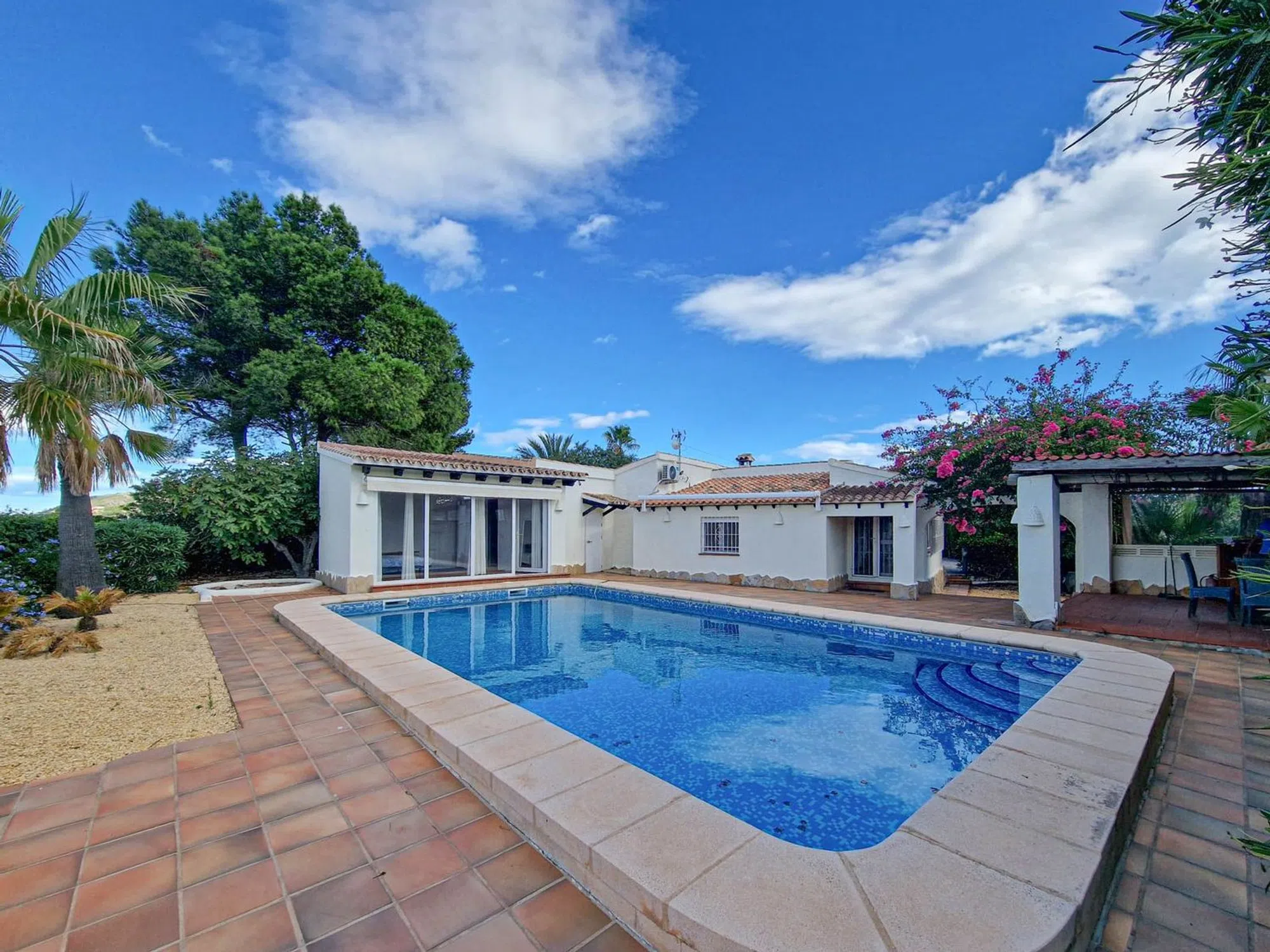 Descripción de la Villa Esta encantadora villa ubicada en La Sabatera, Moraira, es el epítome de la elegancia y el confort en un entorno natural sublime. Con un diseño arquitectónico tradicional que se integra perfectamente en su entorno, esta propiedad ofrece una experiencia de vida sin igual. Distribución y Tamaño Con 212 m² construidos y un extenso terreno de 1010 m², esta villa se distribuye en cinco amplias habitaciones y tres baños, proporcionando el espacio ideal para familias o grupos. Cada detalle ha sido considerado para maximizar la comodidad y funcionalidad de los espacios. Características Exteriores Externamente, la villa cuenta con un hermoso jardín que embellece la propiedad y una espectacular piscina privada, perfecta para disfrutar de los cálidos días del verano mediterráneo. La orientación oeste permite que la luz solar inunde la vivienda desde el mediodía hasta el atardecer, creando un ambiente cálido y acogedor. Características Interiores La cocina abierta es el corazón de esta villa, diseñada para facilitar la interacción y el disfrute de las comidas en compañía. Equipamientos modernos se combinan con un estilo acogedor, ideal para los amantes de la gastronomía. Además, la villa cuenta con aire acondicionado para garantizar el confort durante los meses más cálidos y calefacción mediante estufa de leña, añadiendo un toque acogedor a las noches invernales. Comodidades Adicionales Este inmueble está equipado con numerosas comodidades que elevan la calidad de vida. Con acceso a un garaje, diversas terrazas (cubiertas y descubiertas), y un área de almacenamiento práctica, cada rincón ha sido pensado para maximizar el disfrute. Puede divertirse cocinando al aire libre en la zona de barbacoa o relajándose en la ducha exterior después de un refrescante baño. La villa también incluye servicios como sat-TV, internet y una habitación de lavandería, haciendo de esta propiedad un hogar realmente completo. Entorno y Accesibilidad La ubicación en Moraira, una de las zonas más deseadas de Alicante, asegura un estilo de vida envidiable. Desde encantadoras calas hasta el vibrante centro de Moraira, podrá disfrutar de una variedad de actividades recreativas, restaurantes y servicios cercanos. La tranquilidad de La Sabatera se combina con la conveniencia de tener todo al alcance de la mano. Certificaciones y Características Energéticas Es importante mencionar que la villa cuenta con una calificación energética de tipo G, lo que proporciona un campo para futuras mejoras que podrían aumentar la eficiencia energética del hogar. Esta villa es una oportunidad única para aquellos que buscan un hogar donde cada detalle está pensado para ofrecer confort, estilo y calidad de vida. En definitiva, un refugio que invita a disfrutar de la belleza del litoral mediterráneo.