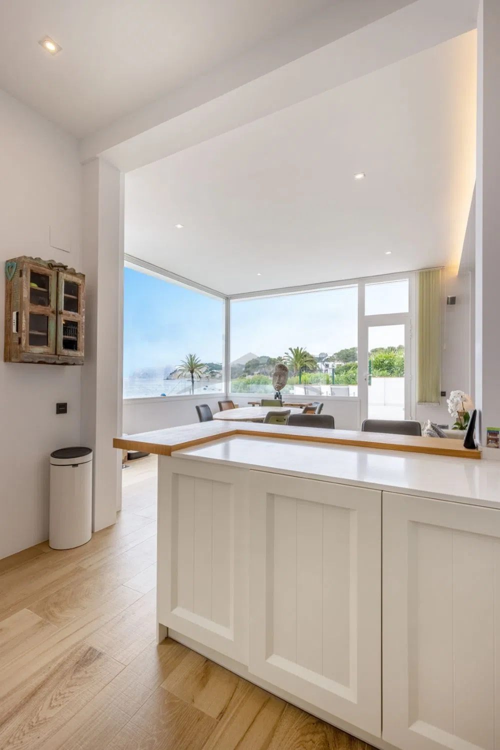 ¿Estás buscando una propiedad muy única, en primera línea ubicada en Moraira Entonces esta es la propiedad perfecta para ti. Esta propiedad es una pieza muy especial que no se ve a menudo, ubicada a solo unos metros de la playa y del centro de Moraira. Diseñada y completamente renovada con materiales de alta calidad. Esta propiedad te brinda la oportunidad de disfrutar plenamente de las hermosas vistas al mar y del sol. Descripción de la propiedad La propiedad consta de la casa principal y 'La Torre', que se puede utilizar como un espacio habitable exclusivo. La planta principal, a la que se accede a través de la hermosa puerta de entrada de madera, consta de una amplia sala de estar con grandes ventanas para disfrutar de las magníficas vistas al mar. Una cocina amplia y totalmente equipada con materiales de calidad y una barra, conectada a la cocina encontrarás un lavadero con espacio de almacenamiento extra. Más adelante en esta planta encontrarás dos dormitorios dobles y dos baños amplios, además de un vestidor de gran formato. En 'La Torre', que se puede alcanzar por la escalera exterior, en la primera parte encontrarás un baño con ducha y una pequeña sala de estar. En la segunda parte, en la parte superior de la torre, encontrarás un dormitorio doble con una IMPRESIONANTE vista sobre el mar. En el sótano hay otro dormitorio doble con su propio baño en suite. Este espacio tiene su propia entrada. Ubicada a solo pasos de la playa y del centro de Moraira La villa ha sido diseñada con grandes ventanas de vidrio, lo que te brinda una casa con mucha luz natural y te permite disfrutar de las hermosas vistas sobre el mar Mediterráneo. La villa en primera línea en venta en Moraira está lista para habitar y situada en una ubicación perfecta con una exposición al sur. La casa está diseñada para disfrutar del aire libre español, tiene una gran terraza, una espaciosa piscina desde la cual puedes disfrutar de vistas maravillosas, cuenta con un bar/cocina exterior y una habitación adicional con un baño y ducha y almacenamiento. Una gran ventaja es que tiene un garaje muy grande debajo de la casa donde se pueden aparcar hasta dos coches y hay un espacio de almacenamiento extra. ¿Por qué elegir esta propiedad en primera línea con impresionantes vistas en venta en Moraira Acabados con materiales de alta calidadTodas las habitaciones están equipadas con aire acondicionadoVistas al mar impresionantesUna parcela totalmente cerrada con mucha privacidad¿No puedes esperar para ver esta propiedad en Moraira No dudes en contactarnos sin ningún compromiso.