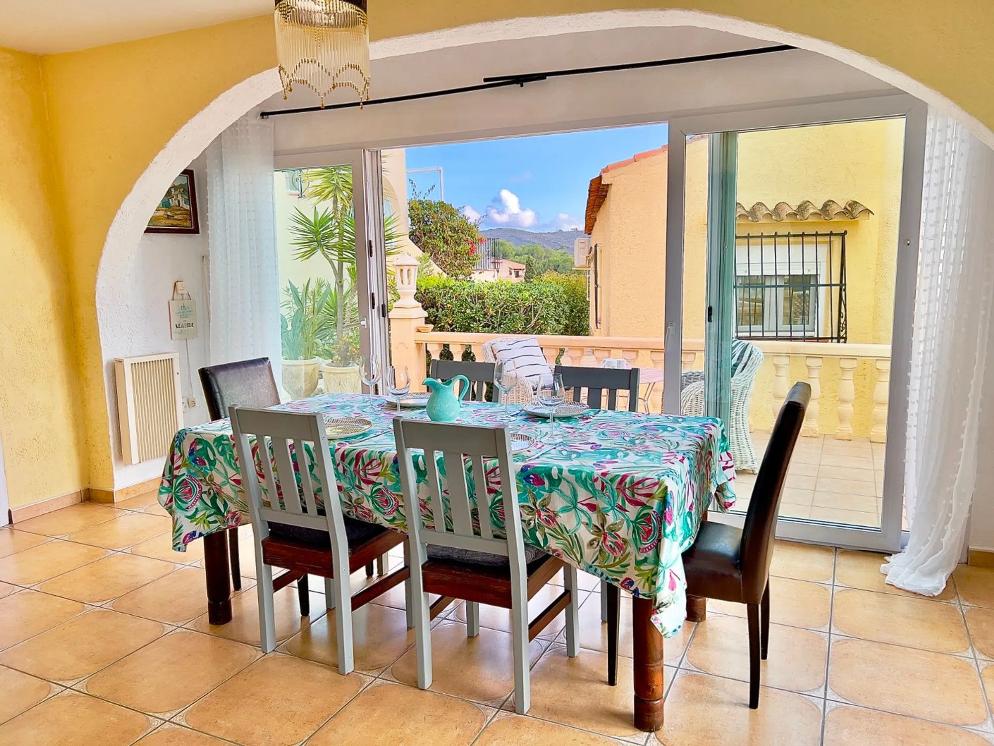 Ubicada en la zona de Paichi y Arnella de Moraira, esta encantadora villa de un dormitorio se encuentra en una pequeña urbanización muy bien cuidada con una gran piscina comunitaria. La propiedad incluye una espaciosa suite independiente para invitados y disfruta de una azotea privada con vistas despejadas al mar, al valle y al emblemático Peñón de Ifach. Bares, restaurantes y tiendas están a poca distancia a pie, y tanto Moraira como la playa de arena con bandera azul de Platja de l'Ampolla se encuentran a un agradable paseo de 30 minutos o a un corto paseo de 5 minutos en bicicleta. Lista para entrar a vivir y de fácil mantenimiento, ofrece una opción atractiva para vivir todo el año o como base de vacaciones relajantes cerca del pueblo, lo que la convierte en un excelente refugio para desconectar. ALOJAMIENTO: Sala de estar y comedor, cocina, dormitorio principal y baño familiar. Escaleras exteriores que bajan a: sótano utilizado como suite de invitados, dormitorio, baño y trastero. EXTERIOR: Terraza delantera, Escalera de caracol hasta el solárium, Piscina comunitaria con ducha junto a la piscina, Jardines comunitarios, Plaza de aparcamiento asignada TODOS LOS DETALLES Esta villa de un dormitorio en venta, con una suite adicional para invitados, se encuentra en la pequeña y cuidada urbanización de La Finca. Con unas cuarenta villas, esta encantadora comunidad ofrece una agradable combinación de residentes permanentes y casas de vacaciones. Aunque las propiedades se encuentran relativamente cerca, incluso en pleno verano la zona conserva un ambiente tranquilo y relajado. Hay una plaza de aparcamiento cubierta asignada para un coche, con aparcamiento adicional disponible en la calle. Se accede a la propiedad desde la calle a través de tres tramos de escaleras que conducen a un sendero dentro de los jardines comunitarios. A la izquierda del sendero se llega a la villa, distribuida en tres niveles con una escalera de caracol que sube al solárium. La terraza delantera está enmarcada por arbustos mediterráneos y la entrada principal está a la derecha. La puerta se abre directamente a un luminoso y soleado comedor y sala de estar de planta abierta. El espacio habitable era originalmente un porche, pero desde entonces se ha integrado para crear una distribución más amplia y fluida, e incluye un calefactor eléctrico de pared. Unas puertas francesas correderas conducen a una terraza con toldo que protege del sol durante todo el día, un lugar acogedor para tomar un café por la mañana o cenar al aire libre, con vistas parciales al mar. Elementos como arcos, estanterías empotradas, techos altos con vigas y una ventana arqueada añaden encanto y carácter. El salón también cuenta con una chimenea con chimenea y estufa de leña, además de aire acondicionado frío/calor para una comodidad durante todo el año. Un arco da acceso a la cocina compacta, equipada con todo lo necesario: placa eléctrica, horno, lavavajillas y frigorífico-congelador integrado. Los armarios altos y bajos blancos ofrecen amplio espacio de almacenamiento. A la izquierda del salón se encuentra el baño en suite, con una amplia ducha a ras de suelo con azulejos, un mueble de lavabo con encimera de mármol, un toallero calefactado, un inodoro y acabados tradicionales. Una puerta conecta directamente con el luminoso y espacioso dormitorio principal, con armarios empotrados y aire acondicionado frío/calor. Desde aquí, una puerta da al jardín comunitario lateral y a un sendero que baja a la suite de invitados. También hay una puerta desde el comedor que baja por una escalera de caracol al sótano, convertido en una suite independiente para invitados. Un escalón baja a una habitación utilizada como dormitorio; a la izquierda se encuentra el baño con ducha esquinera, lavabo de pie e inodoro. A la derecha hay otra habitación que podría servir como vestidor o espacio de almacenamiento adicional, y que también albe.