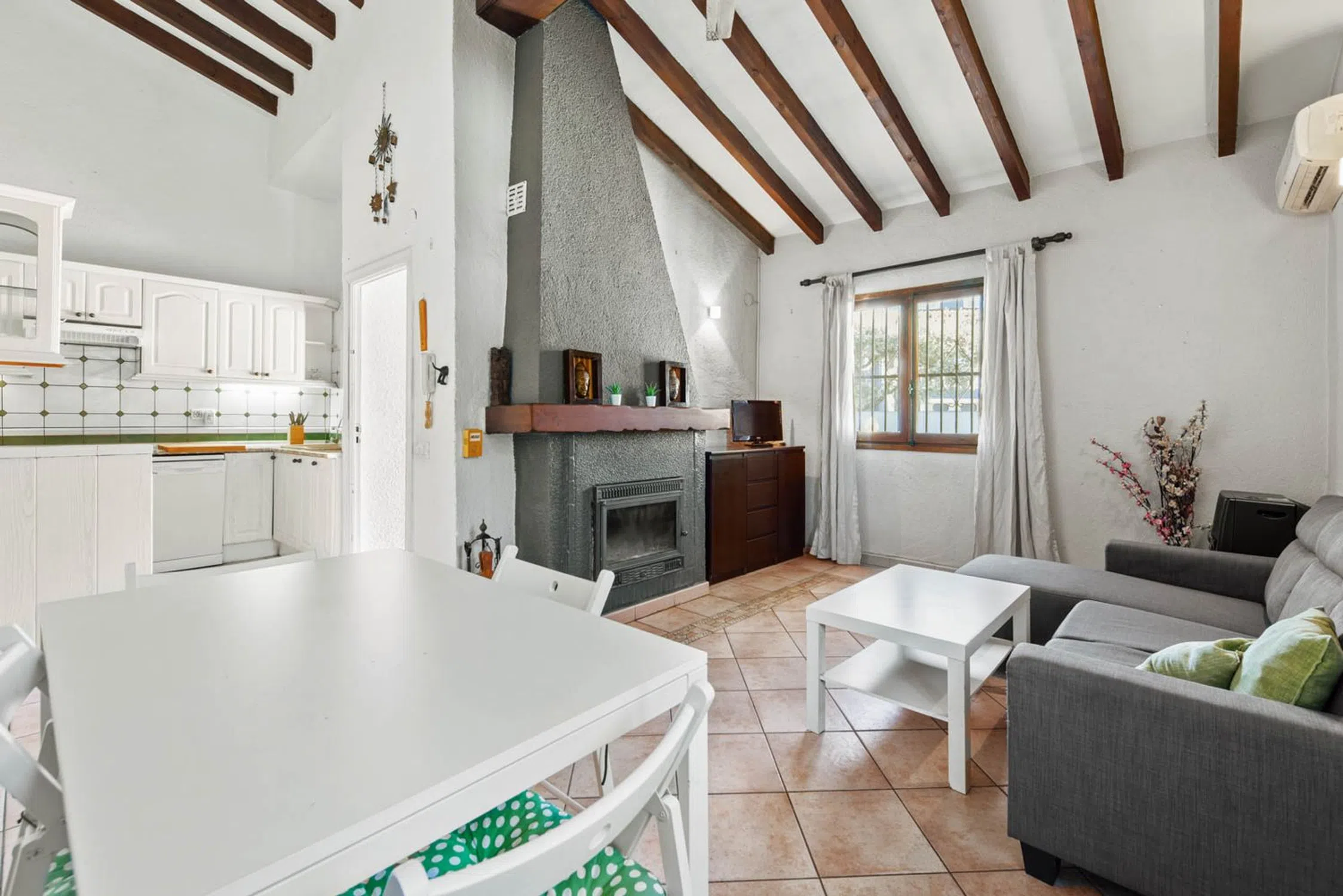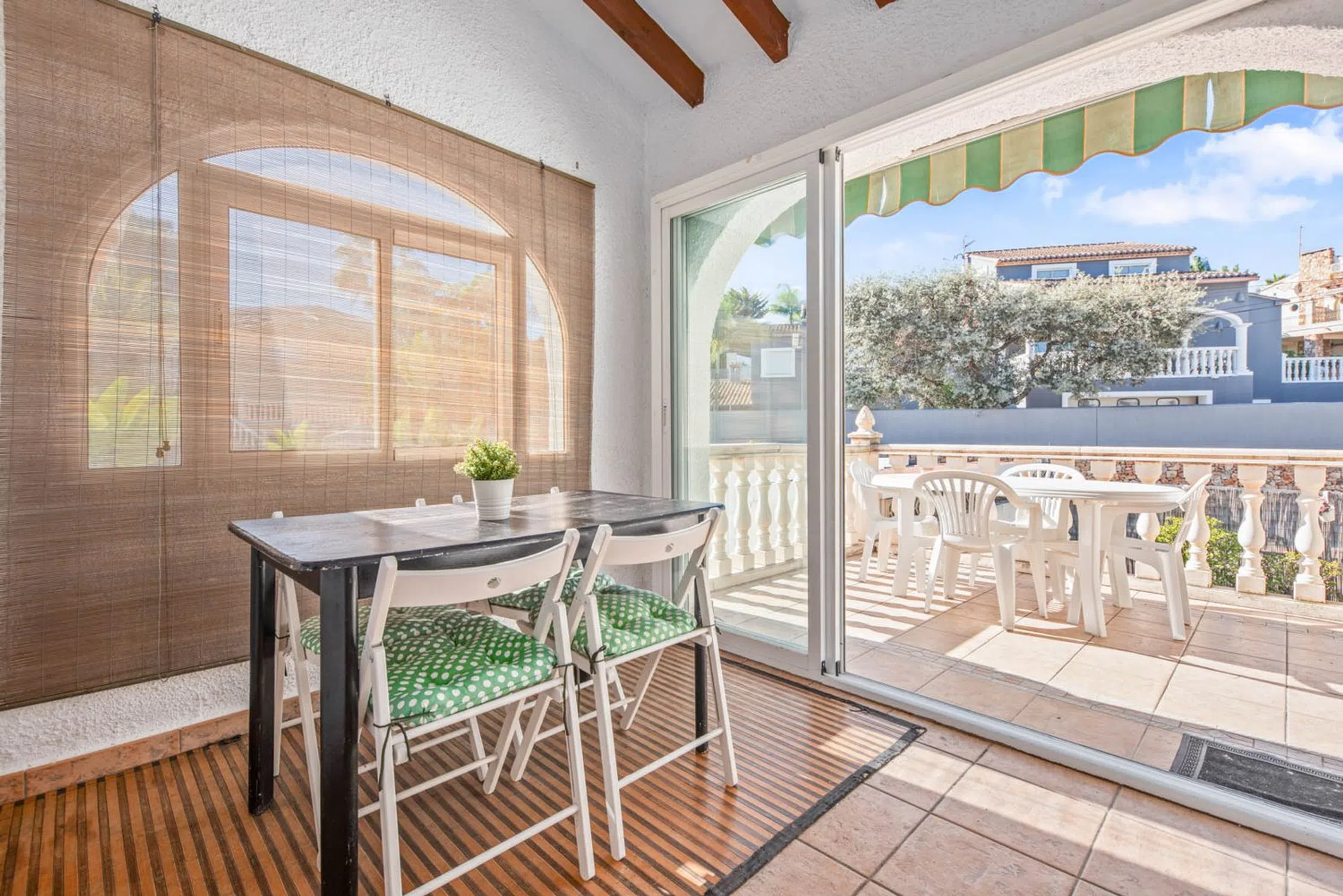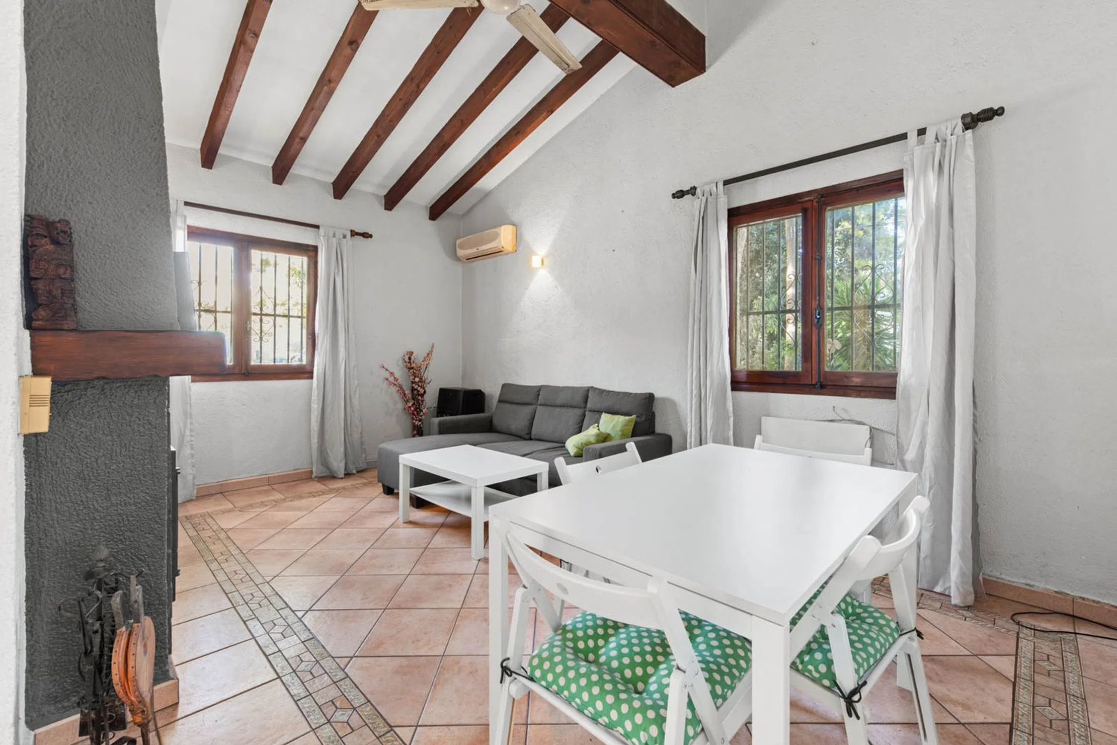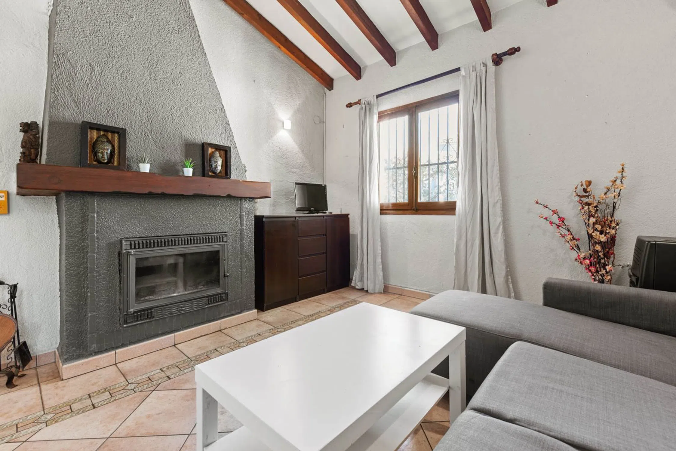 Descripción de la PropiedadDescubra esta encantadora vivienda adosada ubicada en la renombrada zona de Moravit, en Moraira, Alicante. Este hogar, con un diseño tradicional, combina a la perfección el confort moderno con la calidez del carácter auténtico de la región. Sus 85 m² de área construida albergan un ambiente acogedor, ideal para disfrutar tanto en pareja como en familia. Distribución y EspaciosLa propiedad cuenta con tres acogedoras habitaciones y dos baños bien equipados, ofreciendo la privacidad y el espacio necesario para una vida cómoda. La amplia cocina abierta se integra perfectamente con la zona de estar, creando un ambiente sociable ideal para reuniones familiares. Para disfrutar del maravilloso clima mediterráneo, dispone de una terraza de 14 m², un lugar perfecto para disfrutar de comidas al aire libre o simplemente relajarse con una bebida. Características DestacadasOrientación Oeste: Perfecta para disfrutar de las vistas de las puestas de sol sobre el horizonte. Aire acondicionado: Mantenga su hogar fresco durante los calurosos meses de verano. Estufa de leña: Proporciona un toque acogedor durante los meses más fríos. Piscina y pista de tenis comunitarias: Un excelente espacio para el esparcimiento y el ocio. Jardín y balcón: Espacios exteriores ideales para disfrutar de la naturaleza. Barbacoa: Perfecta para reuniones en el exterior con amigos y familiares. Almacenamiento adicional: Incorpora un trastero para mantener su hogar ordenado. Servicios y ComodidadesEste adosado no solo presenta un atractivo diseño y comodidades internas, sino que también incluye servicios como teléfono e internet, asegurando que esté siempre conectado. Además, cuenta con una plaza de parking, proporcionando comodidad y seguridad para su vehículo. Ubicación PrivilegiadaSituada en la apacible comunidad de Moravit, esta propiedad se beneficia de su proximidad a las hermosas playas de la costa, así como a una variedad de restaurantes, tiendas y servicios. Moraira es conocido por su ambiente relajado, ideal para aquellos que buscan un estilo de vida tranquilo en un entorno hermoso. Este adosado es una oportunidad única para adquirir un hogar en una de las zonas más desirables de la Costa Blanca, combinando comodidad, estilo y una ubicación excepcional. No se lo pierda.