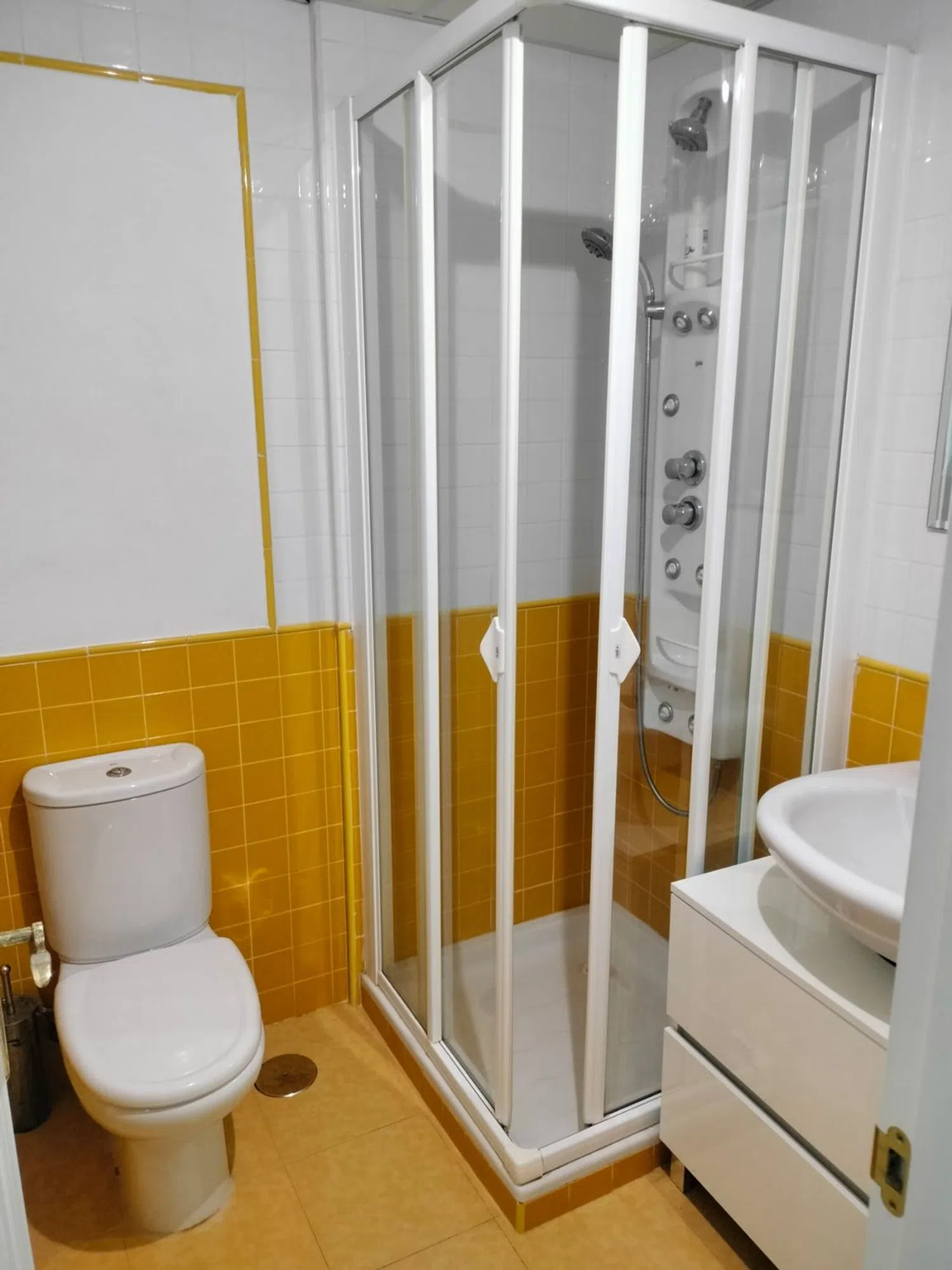 En la planta baja, el amplio salón ha sido renovado y cuenta con un elegante pavimento de tarima. Se ha ampliado la zona del comedor al eliminar un dormitorio, aunque este puede volver a ser creado si se desea. Desde el salón, se accede a una generosa terraza que ofrece vistas impresionantes. La cocina está completamente equipada con electrodomésticos como frigorífico, lavadora y un sistema de filtro de ósmosis. Además, cuenta con descalcificador de agua en la instalación central. El baño de esta planta es completo y tiene una ducha moderna.