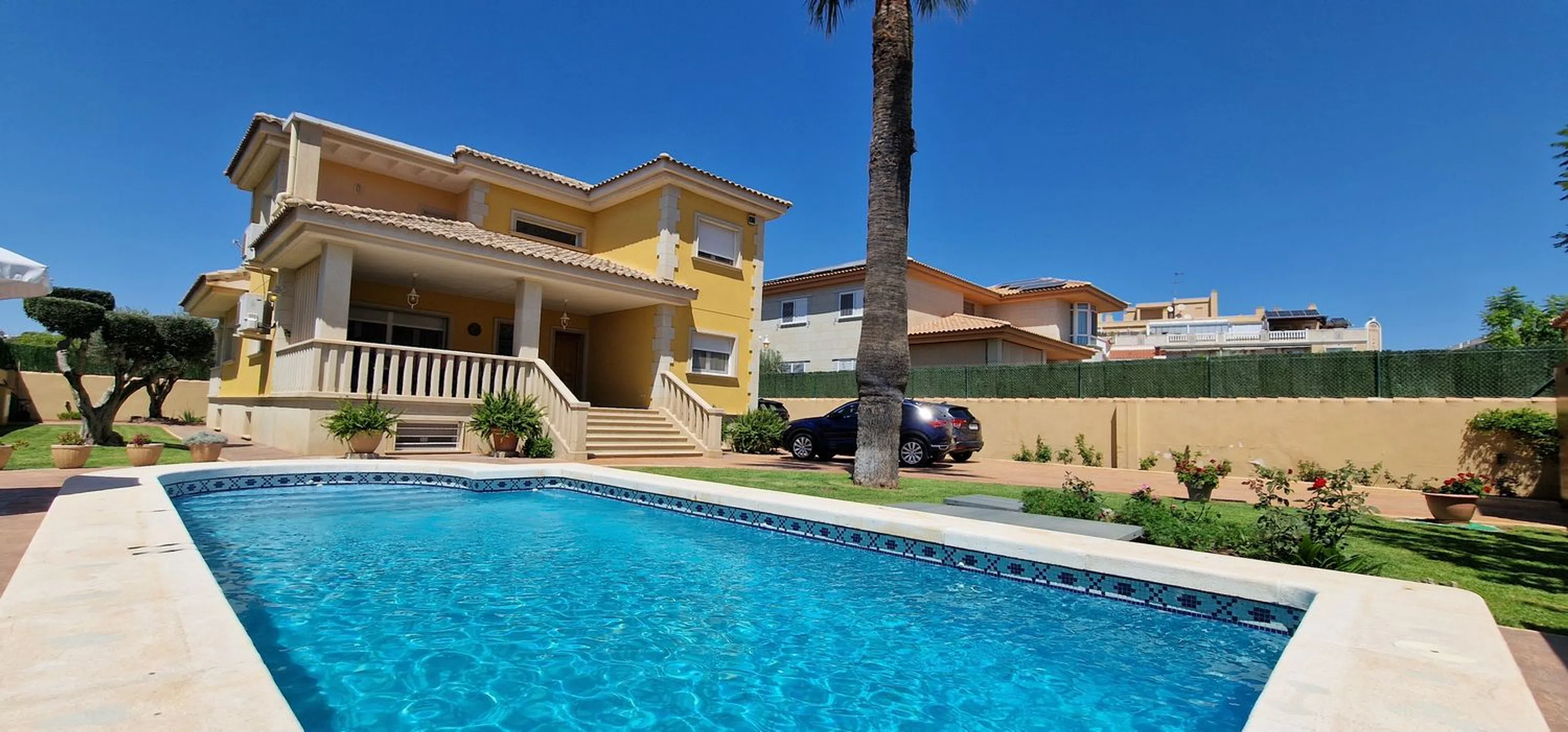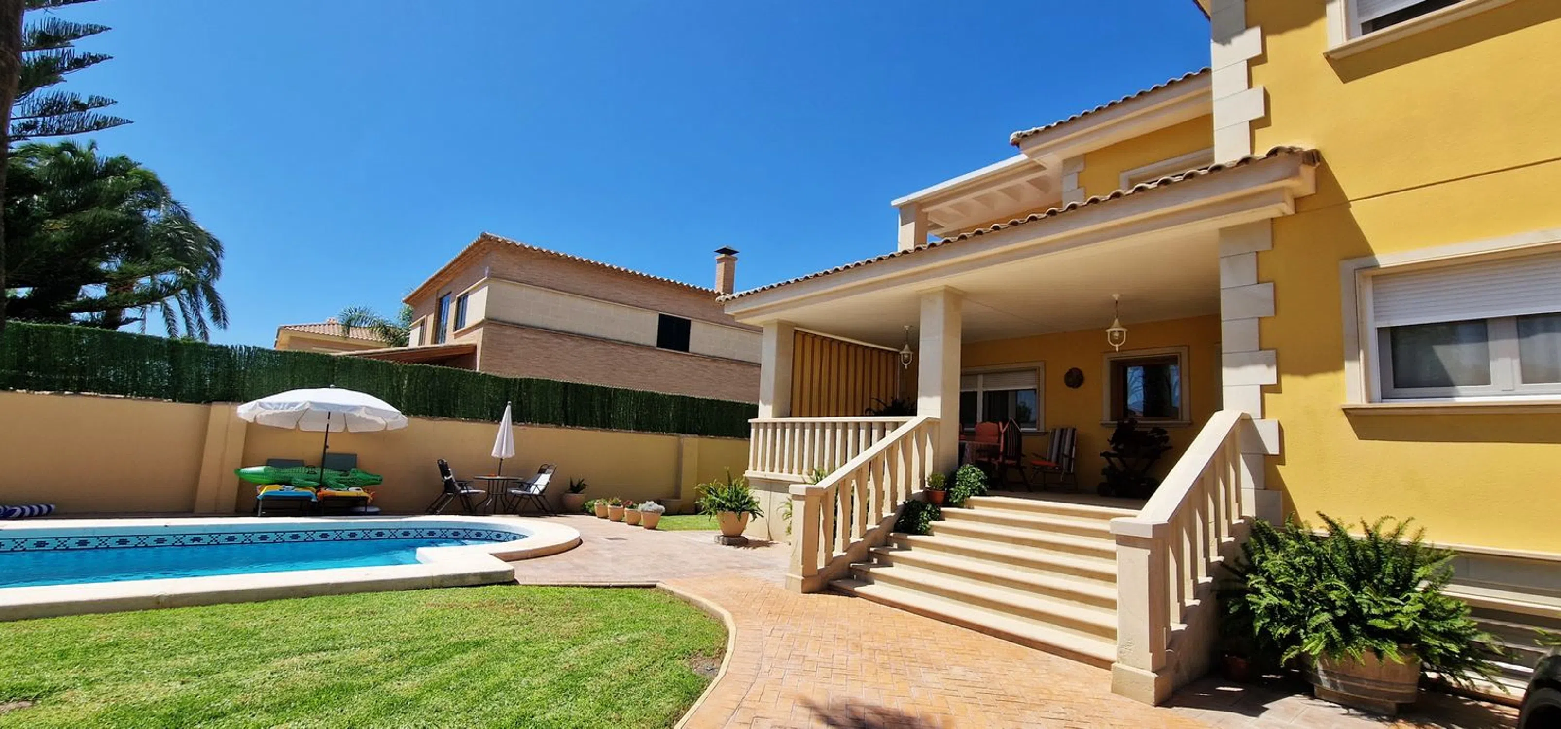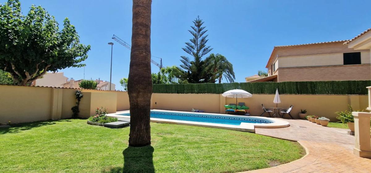 HABITAR INMOBILIARIA LE OFRECE EN COMPRA MAGNIFICA PROPIEDAD DE ALTA CALIDAD Y CONFORT EN EL CENTRO DE MUTXAMEL. LA OPORTUNIDAD DE COMPRA QUE ESTA ESPERADO, AHORA A SU ALCANCE. Si lo que desea es una vivienda de calidad estética y estructural, singular, luminosa, exterior, independiente, y provista de todas las comodidades, esta propiedad le va a enamorar. Consúltenos, estaremos encantados de mostrarte esta estupenda propiedad. Profesionales en el mercado Inmobiliario de la Zona desde 1998 a su disposición. Esta extraordinaria propiedad le ofrece 486 m2 de vivienda distribuidos en tres cómodas plantas comunicados por una imponente escalera de mármol. -Planta baja a la que se accede desde el maravilloso jardín con piscina de la casa, a través de su amplio porche, integrado por recibidor, salón con chimenea y comedor independiente, imprescindible habitación doble con armario empotrado, baño con ducha y cocina - estar con lavadero y acceso al segundo porche de la vivienda. . - Planta Primera cuenta con un luminoso distribuidor, tres habitaciones dobles con armarios empotrados y dos baños completos. Habitación principal tipo suite con baño incorporado de mármol travertino compuesto de bañera y amplia ducha de obra con chorros y zona de vestidor. -La planta inferior dispone de un espacio multiuso con zona de ocio, entretenimiento, sauna, despacho, bodega y gimnasio. La propiedad se encuentra en perfecto estado de mantenimiento, incluye armarios empotrados, Aire Acondicionado, doble cristal más cristal de seguridad y mosquiteras en todos los cerramientos de la vivienda, sistema de drenaje perimetral, alarma, suelos de tarima combinados con mármol, carpintería roble, fachada de piedra natural, entre otras muchas prestaciones. Dispone de un encantador y practico jardín con piscina y riego automático, arbolado, zona de aparcamiento y un trastero para almacenamiento adicional. Situación privillejada, zona residencial céntrica, a mano de todo tipo de servicios y comercios, polideportivo, colegios, centro de salud, a poca distancia de playas y Alicante ciudad. Contáctenos, nuestra experiencia su compra segura y tranquila.