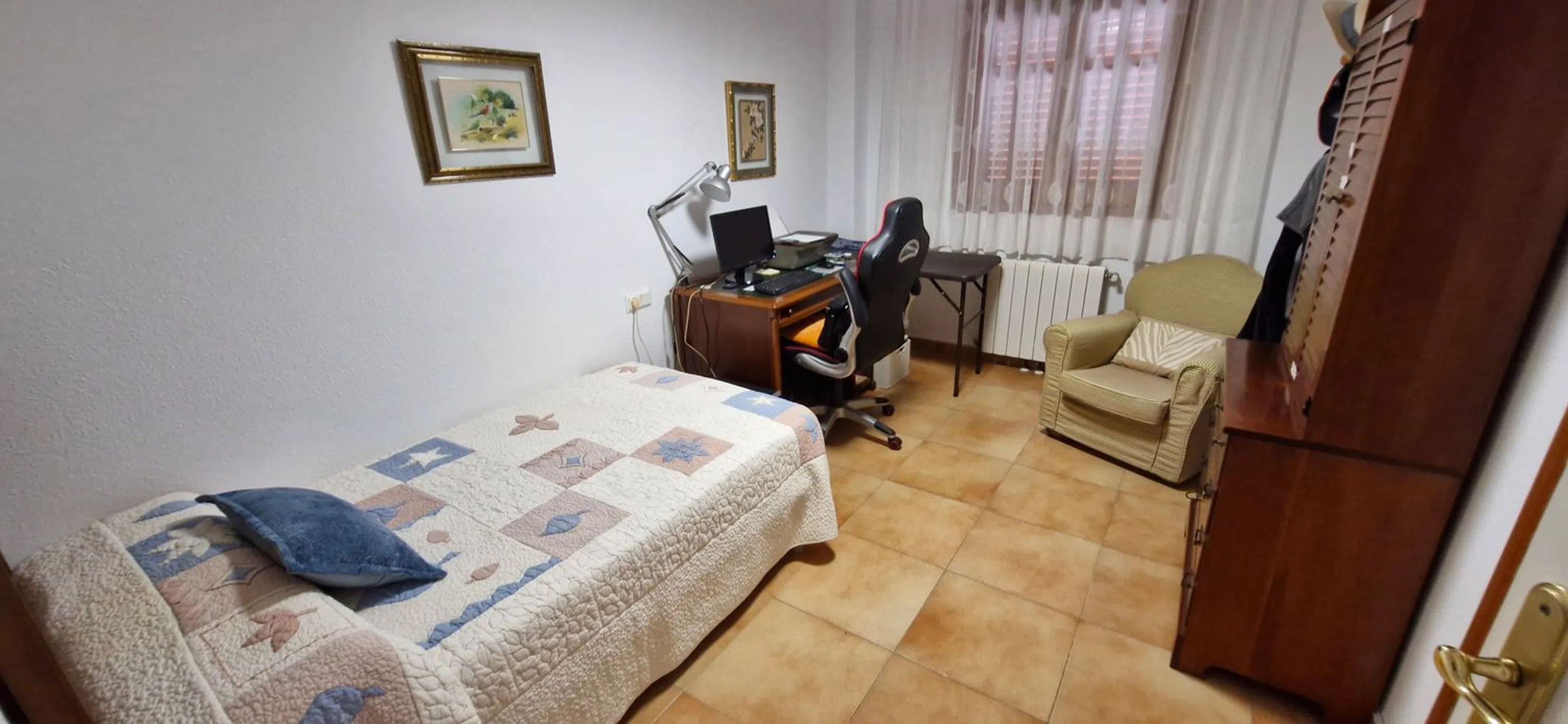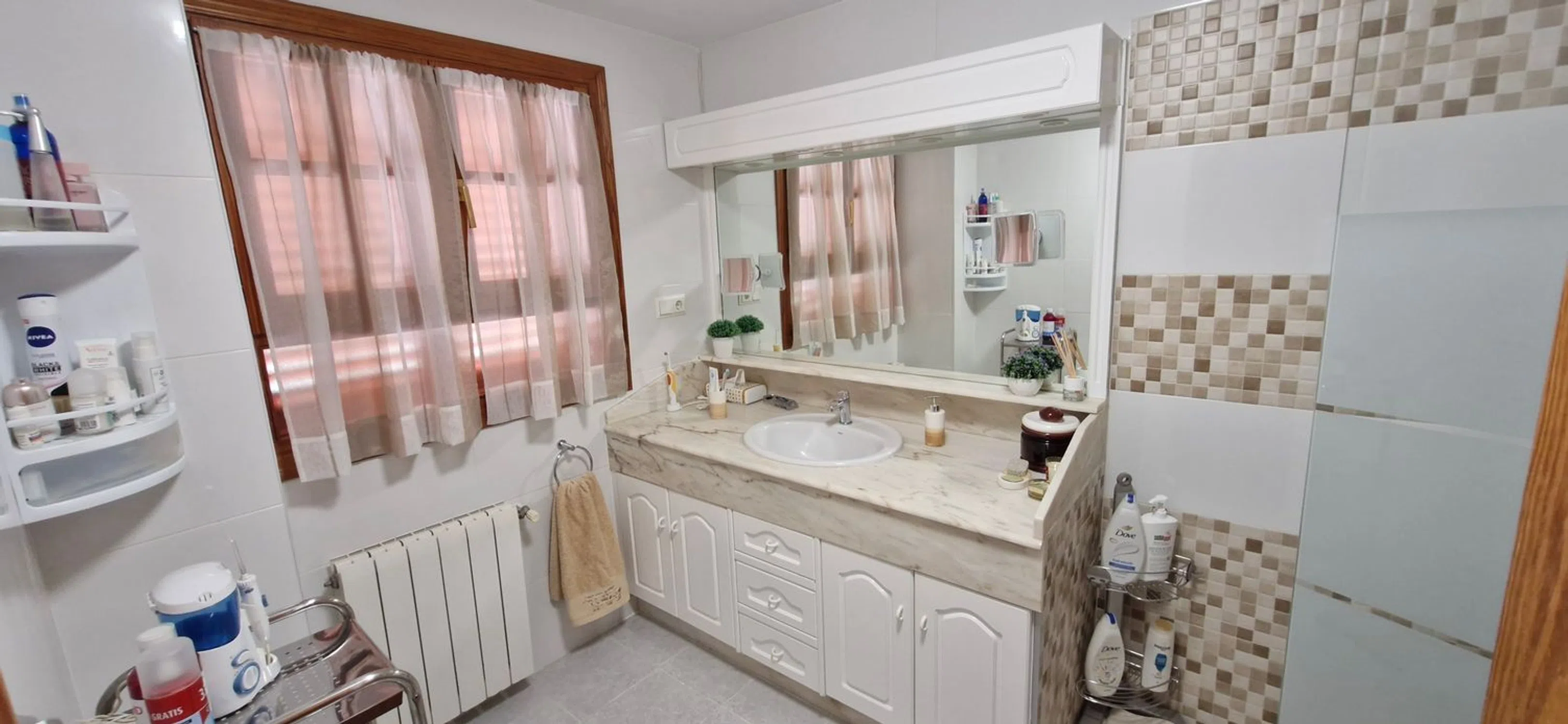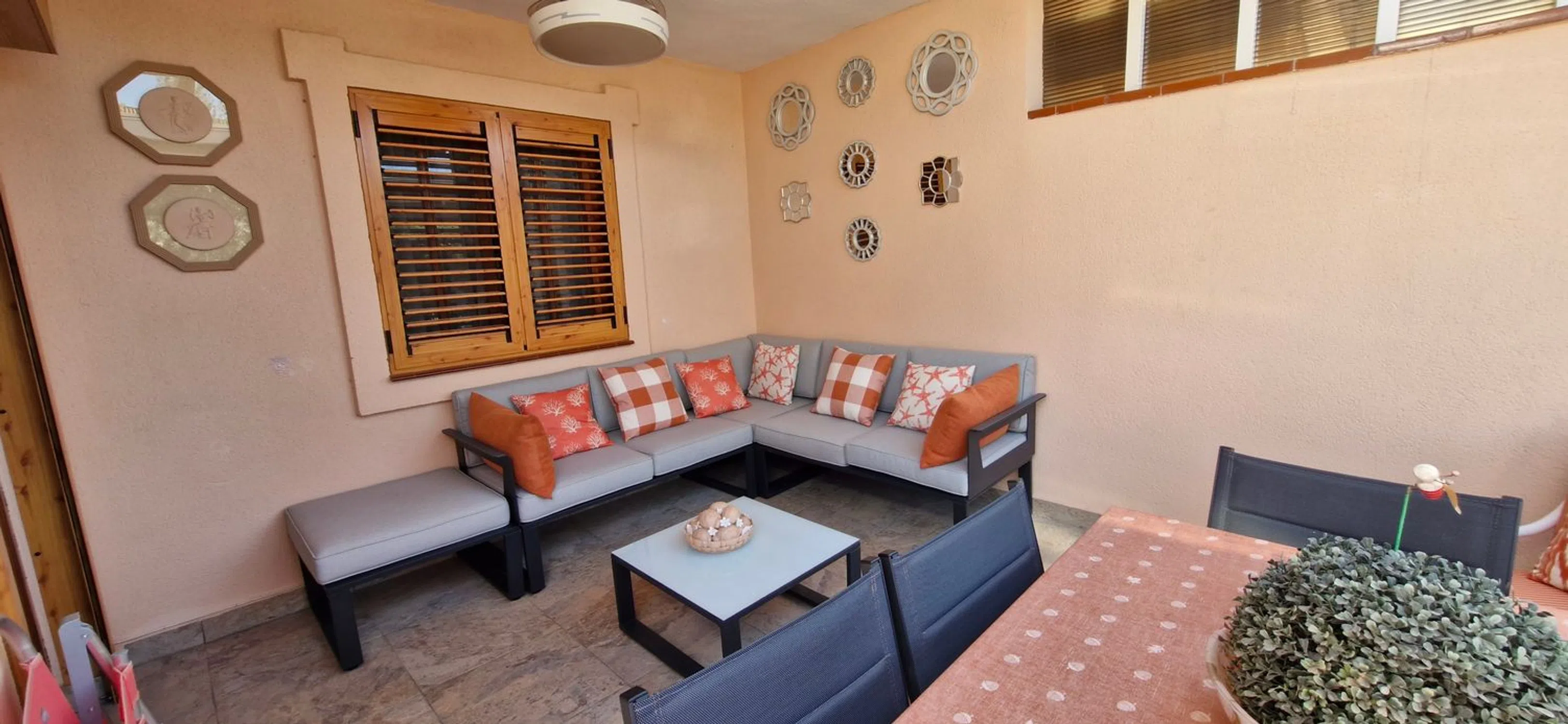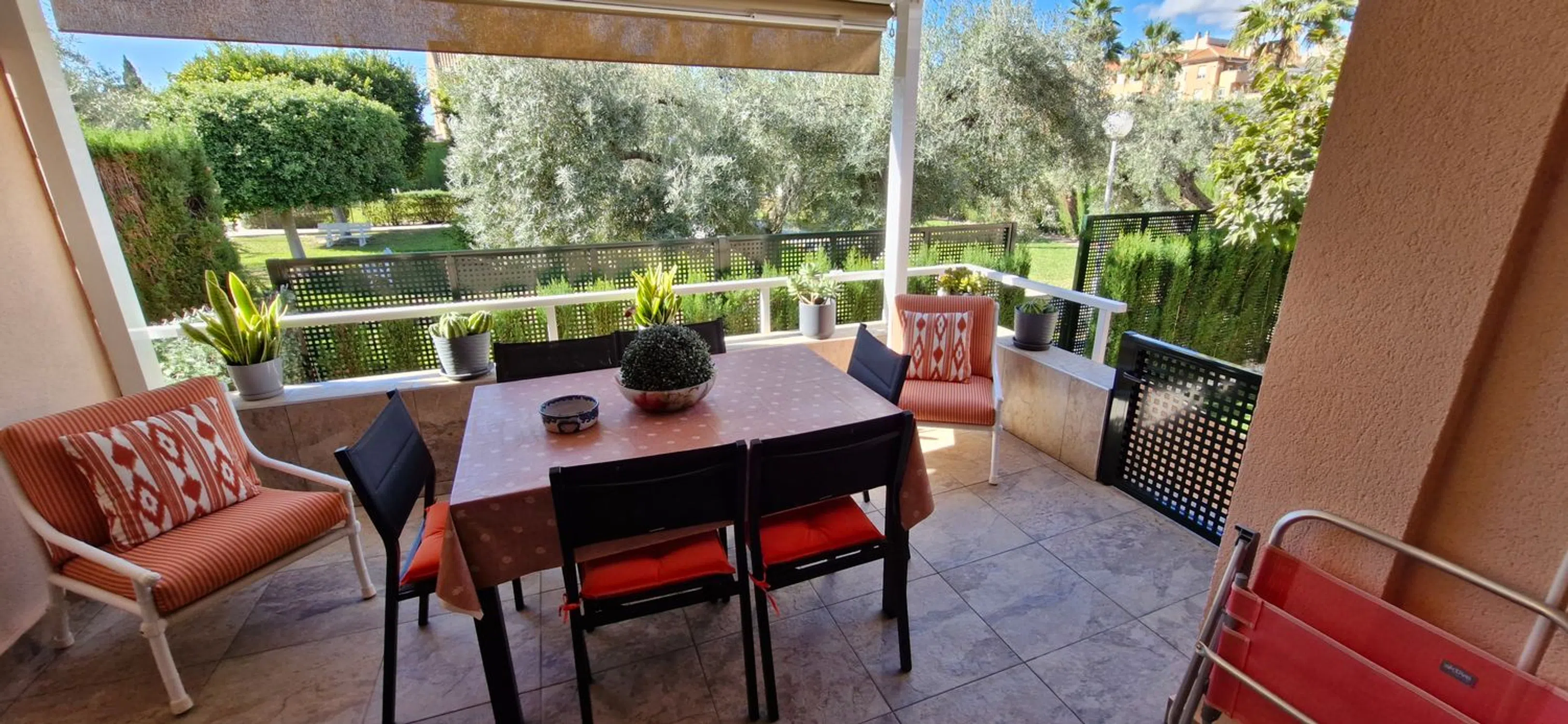 PARTICULAR vende casa-pareada en el centro de Muchamiel, al lado del polideportivo de Los Olmos. La urbanización la ocupan doce viviendas (6 pareados) en una parcela de 5758 metros, en la cual aparte de gran espacio verde con césped, y mucho arbolado, se encuentran dos piscinas, una de niños y otra de adultos y una barbacoa para uso de los vecinos. A la vivienda y al garaje se accede desde la calle. La vivienda consta de tres plantas y entre las tres ocupan 327 mtrs y un pequeño jardín particular. En la PLANTA BAJA se encuentra el salón-comedor de unos 30 mtrs. , con salida a una terraza de 14 mtrs, desde la cual se accede a un pequeño jardín y con puerta de salida a la urbanización. Cocina amueblada y con todos los electrodomésticos y con acceso a otra terraza donde está la lavadora y zona de trabajo. En dicha planta hay dos habitaciones dobles y un baño completo lo cual hace que esta vivienda se salga un poco de lo standar. En la PRIMERA PLANTA hay tres habitaciones, la principal con baño incorporado y 2 habitaciones mas y un baño completo. La PLANTA SOTANO es muy luminosa porque goza de grandes ventanas y hay 2 habitaciones y un gran salón multiusos con puerta de acceso al garaje en el cual caben dos coches y a un trastero de grandes dimensiones. La puerta del garaje se cambio hace poco y es automática. Toda la vivienda goza de calefacción por radiadores de gas natural y además tiene splits de frio y calor en salón, cocina, dorm. principal y sótano. El suelo es de gres, imitando barro cocido. Se le han hecho muchas mejoras a la vivienda como el cambio de mallorquinas a PVC, cocina totalmente reformada y baños. Las escaleras de subida a la planta de arriba y las de bajada al sótano son amplias y fáciles, e incluso por la anchura, permitirían poner un ascensor. Hay que destacar que la terraza que comunica con el salón tiene parte techada de obra y la otra parte con techo retráctil móvil. Toldos motorizados Es complicado describir una vivienda de estas características en pocas palabras, con lo cual es mejor concertar una visita para poder verla. En cuanto a servicios, a pocos metros autobús, con mucha frecuencia, que conecta con el Hospital de San Juan y con la ciudad de Alicante. En verano hay otra línea de autobús que conecta con la Playa de San Juan. Supermercados cercanos como Consum, Hiperber, Dia, Quality etc.. . Centro de Salud, farmacias y restaurantes cercanos, además del Mercado Municipal. Se vende semiamueblado. ABSTENERSE INMOBILIARIAS.