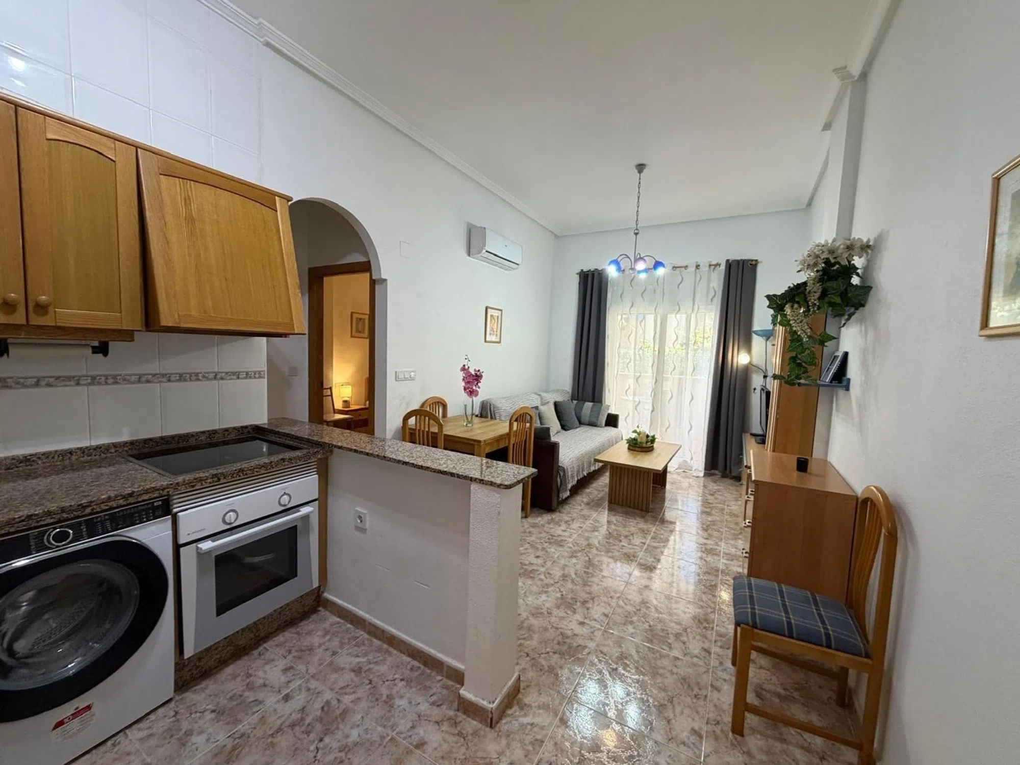 Descubre este impresionante apartamento situado en planta baja, que cuenta con una encantadora terraza privada equipada con barbacoa, ideal para disfrutar del clima mediterráneo. Situado en la codiciada primera línea del mar, esta propiedad forma parte de una urbanización exclusiva que ofrece magníficas vistas al océano desde su piscina comunitaria y área de barbacoa ubicada en el solarium. El interior consta de dos acogedores dormitorios dotados de armarios empotrados y dos baños completos bien distribuidos. La cocina americana está completamente equipada, garantizando funcionalidad sin renunciar a estilo; además dispone aire acondicionado (A/A) instalado estratégicamente en el salón para asegurar tu confort durante todo el año. Incluye también un espacio destinado a aparcamiento subterráneo privado por lo cual no tendrás problemas al buscar estacionamiento tras tus días disfrutando bajo el sol español o explorando las cercanas playas como Campoamor y Cabo Roig situadas solo a 400 metros away. A poca distancia se encuentra uno los centros comerciales más grandes: La Zenia Boulevard, donde podrás encontrar tiendas variadas así como opciones gastronómicas diversas. Esta zona es perfecta tanto si buscas unas vacaciones inolvidables cómo si deseas establecerte permanentemente; ¡No pierdas esta oportunidad única!