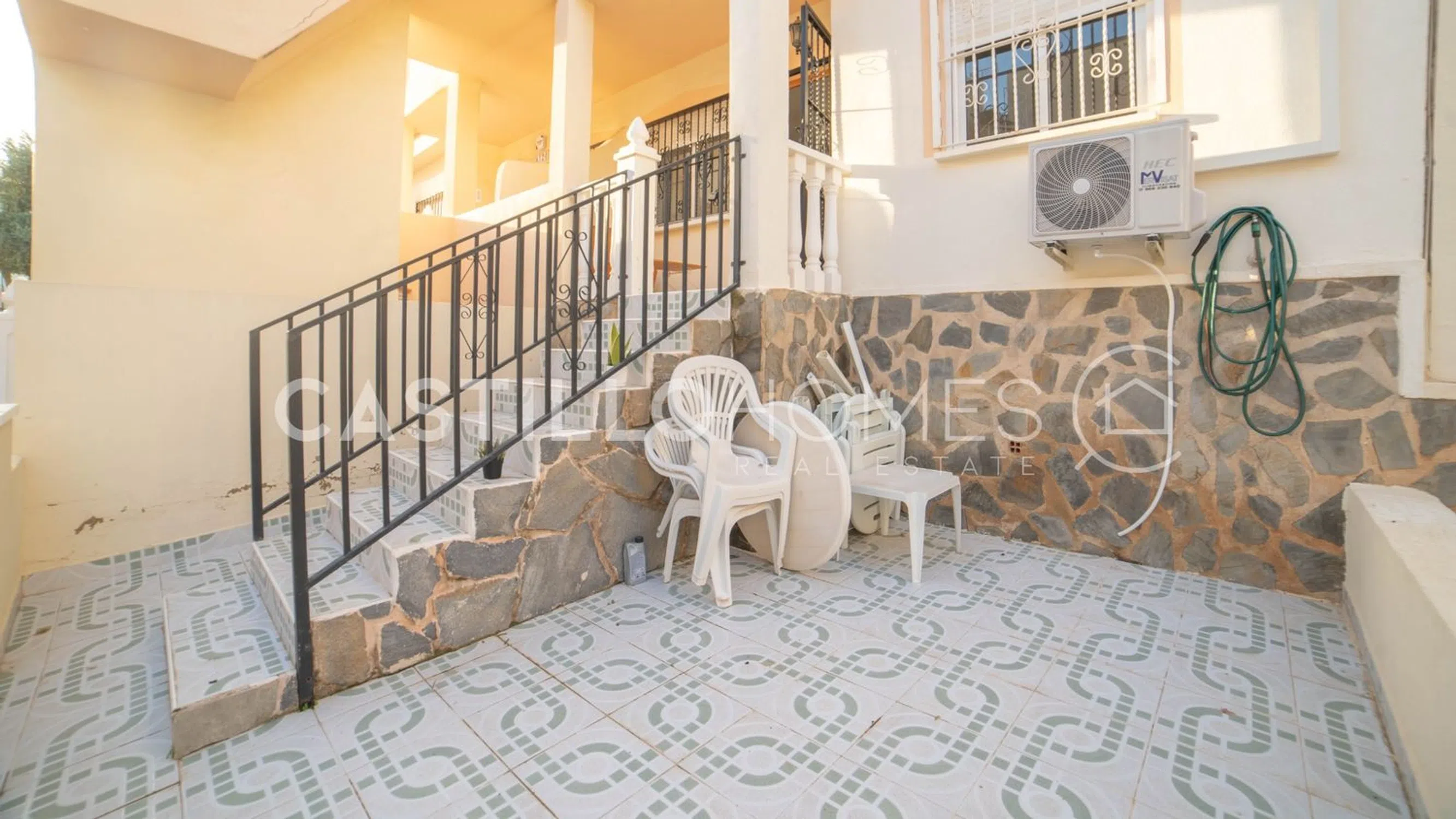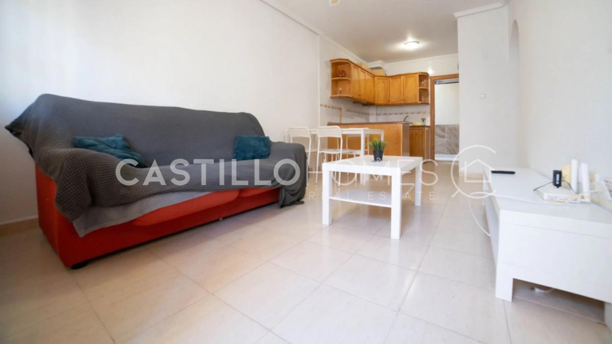 Este acogedor bungalow en planta baja, situado en la popular zona de La Florida en Orihuela Costa, ofrece una vivienda cómoda y fácil de mantener, ideal para disfrutar del día a día con tranquilidad. La propiedad cuenta con 53 m² bien distribuidos en dos amplios dormitorios, un baño y una cocina de concepto abierto conectada con el salón, creando un espacio agradable para convivir y relajarse. La luz natural que entra por las ventanas aporta una sensación luminosa y aireada en toda la vivienda. Antes de acceder a la vivienda, le recibe una agradable terraza en planta baja, perfecta para disfrutar del café de la mañana, desayunos tranquilos o momentos de descanso a la sombra durante las horas más cálidas del día. Esta terraza ofrece una bienvenida cálida y funciona como una extensión natural del hogar. La urbanización dispone de una piscina comunitaria bien cuidada, ideal para refrescarse en los días de verano o relajarse en una tumbona junto al agua. La Florida es una zona animada y muy apreciada, con supermercados, restaurantes, cafeterías y transporte público a poca distancia a pie. En pocos minutos en bicicleta o coche se accede a varias playas, campos de golf y otros atractivos de la costa. Una vivienda perfecta tanto para vacaciones como para vivir todo el año. SUMA/IBI (property tax): 101 € al año COMUNIDAD (Association fee): 31,5 € al mes.