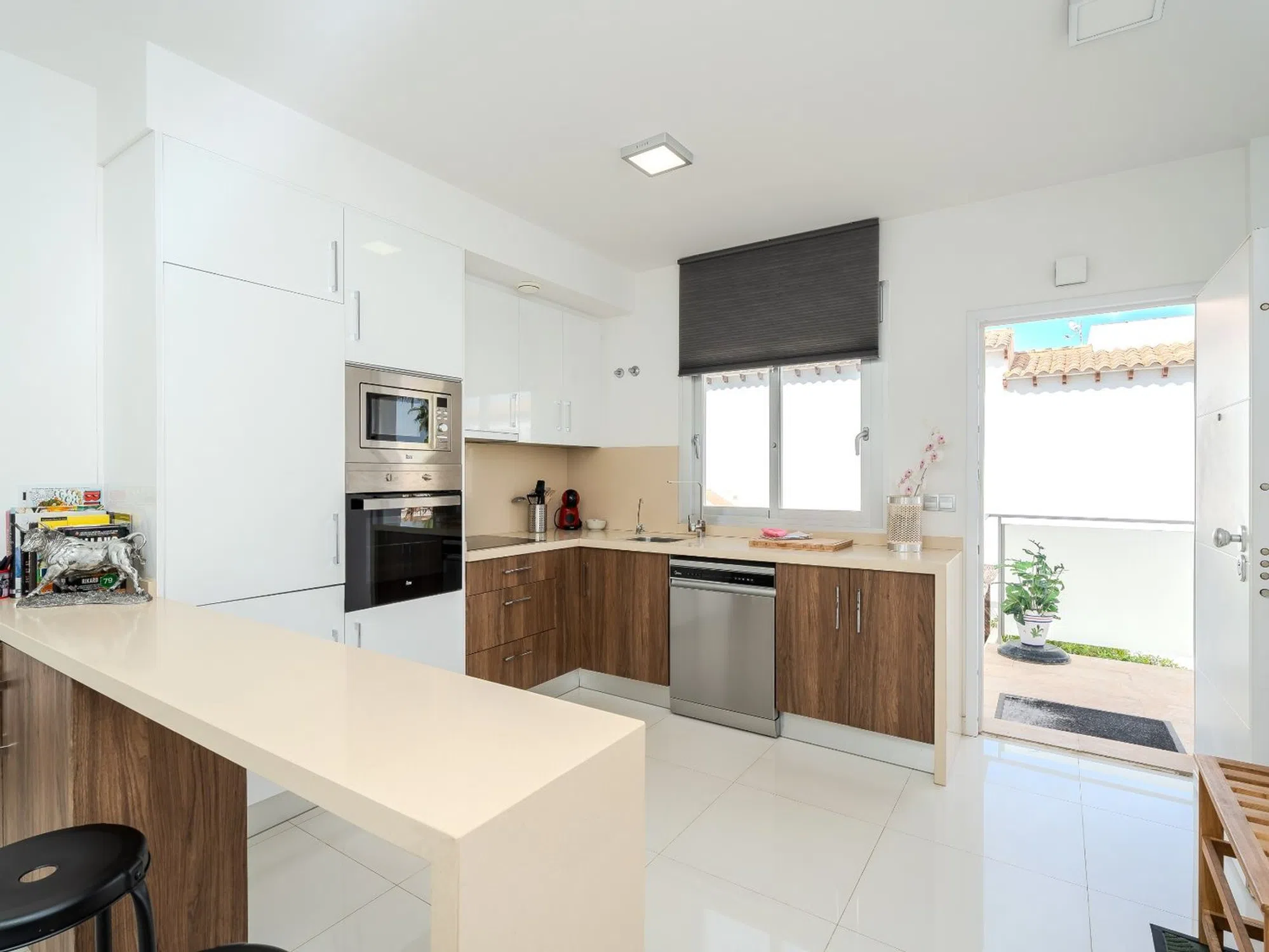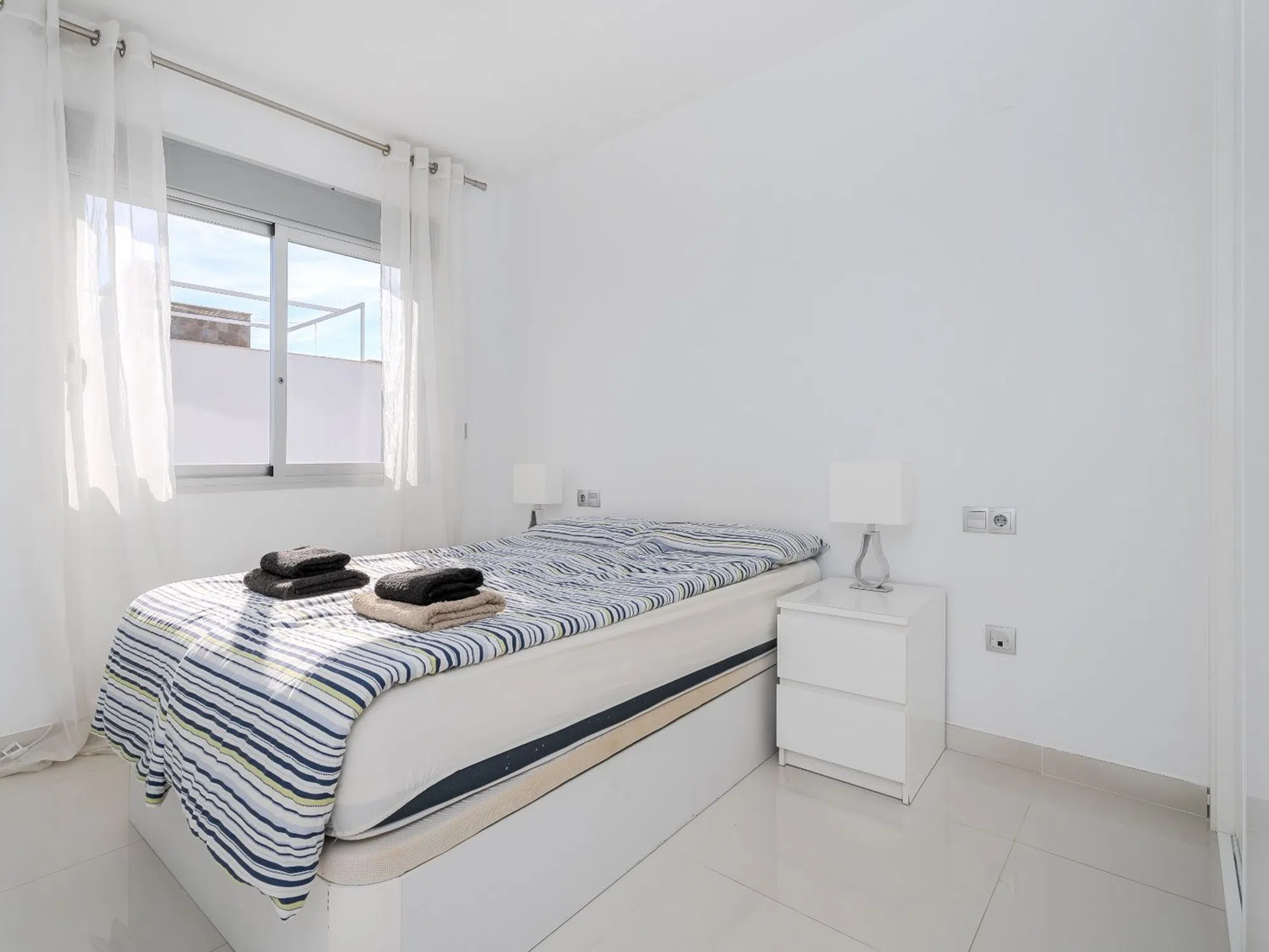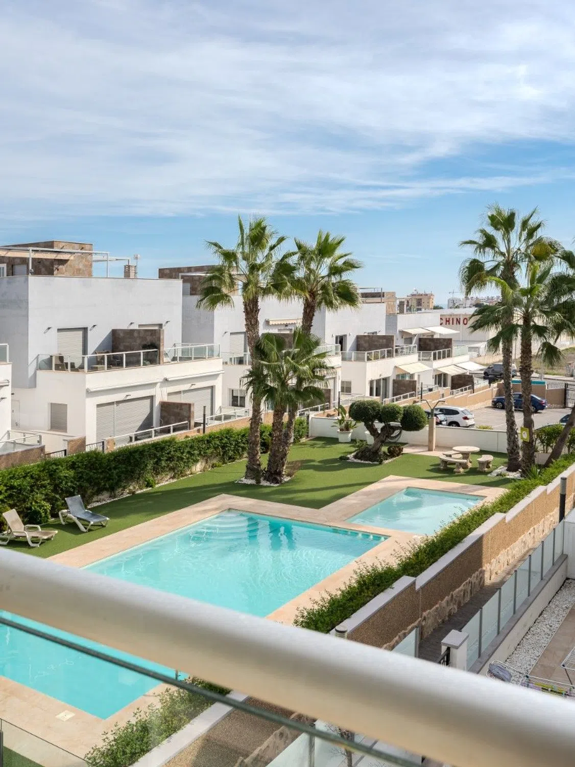 Magnífico ático con gran terraza solárium, vistas al mar y excelente ubicación Bienvenido a este precioso ático en el popular complejo Residencial Marinamed en Punta Prima, una comunidad tranquila y bien gestionada con solo 32 viviendas. Aquí encontrará un apartamento luminoso, bien cuidado y amueblado con gusto, con fantásticas vistas a la piscina y al mar, además de estar a poca distancia de todos los servicios. El apartamento cuenta con dos amplios dormitorios y dos elegantes baños. El dormitorio principal dispone de grandes armarios empotrados y baño en suite con calefacción por suelo radiante. El segundo dormitorio también es espacioso, con mucha luz natural y excelente capacidad de almacenamiento. El salón y la cocina de planta abierta ofrecen una atmósfera luminosa y acogedora. La cocina tiene electrodomésticos integrados y una práctica barra americana, mientras que el salón destaca por sus amplios ventanales y acceso directo a una agradable terraza, desde donde una escalera exterior conduce al impresionante solárium de 72 m². La terraza superior es un verdadero punto fuerte: un espacio privado donde podrá disfrutar del sol durante todo el día. Dispone de pérgola para sombra, cocina exterior con frigorífico y barbacoa, y una ducha para refrescarse. El cristal opaco aporta privacidad adicional y las vistas al mar y a Punta Prima son espectaculares. La vivienda está orientada al sureste, ofreciendo sol de mañana y sombra agradable por la tarde. Se vende completamente amueblada y equipada con aire acondicionado (frío/calor), persianas eléctricas y plaza de aparcamiento privada. Residencial Marinamed ofrece una hermosa zona comunitaria con piscinas para adultos y niños, rodeada de césped artificial, palmeras y vegetación, creando un ambiente agradable con bajos costes de comunidad. Viva en el corazón de Punta Prima, en un entorno tranquilo y a poca distancia de restaurantes, tiendas, supermercados y todas las comodidades. El popular Centro Comercial Punta Marina se encuentra a solo cinco minutos a pie, y la playa está muy cerca. Una oportunidad única para adquirir un ático en uno de los complejos más codiciados y bien gestionados de Punta Prima – perfecto como vivienda vacacional, inversión o residencia permanente bajo el sol de España.