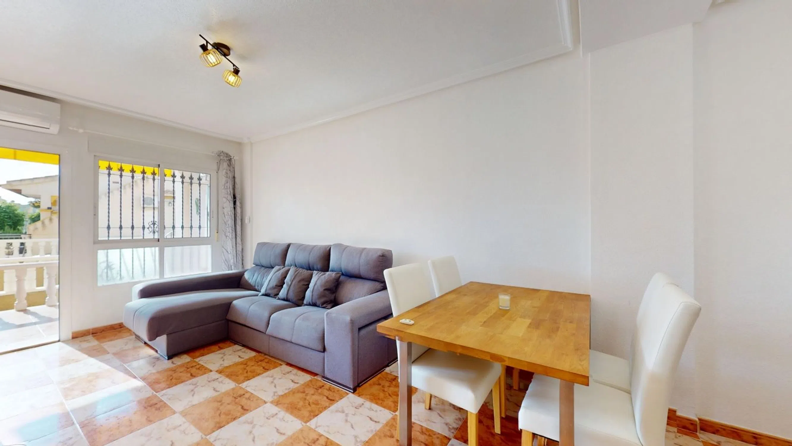 Este bonito apartamento en planta baja se encuentra en la codiciada zona de La Regia, en Cabo Roig, uno de los barrios más consolidados y deseados de la Orihuela Costa. A solo unos minutos a pie de tiendas locales, cafeterías, restaurantes internacionales y las impresionantes playas de Cabo Roig, ofrece la combinación perfecta de comodidad, conveniencia y estilo de vida mediterráneo. En el interior, el apartamento es luminoso y acogedor, con un amplio salón equipado con aire acondicionado moderno para mantener la estancia fresca durante todo el año. Está completamente amueblado, lo que permite entrar a vivir de inmediato o comenzar a alquilarlo sin complicaciones. Los dos dormitorios son espaciosos y cada uno cuenta con su propio aire acondicionado, asegurando un ambiente confortable para todos. Además, dispone de un práctico cuarto de servicio con caldera y lavadora que aporta comodidad y espacio de almacenamiento adicional. Las zonas exteriores son un verdadero punto fuerte. El apartamento tiene fácil acceso a una terraza delantera y una terraza trasera más grande, ideales para relajarse, comer al aire libre o disfrutar del sol con privacidad. Los residentes también pueden disfrutar de la piscina comunitaria, perfecta para refrescarse en los meses más cálidos. El aparcamiento dentro del complejo es limitado, con plazas adicionales disponibles en la calle trasera. Ya sea que busques una vivienda permanente al sol, un retiro vacacional cerca de todo o una inversión lista para alquilar, este apartamento en La Regia ofrece un valor excepcional en una de las zonas costeras más populares de la Costa Blanca.