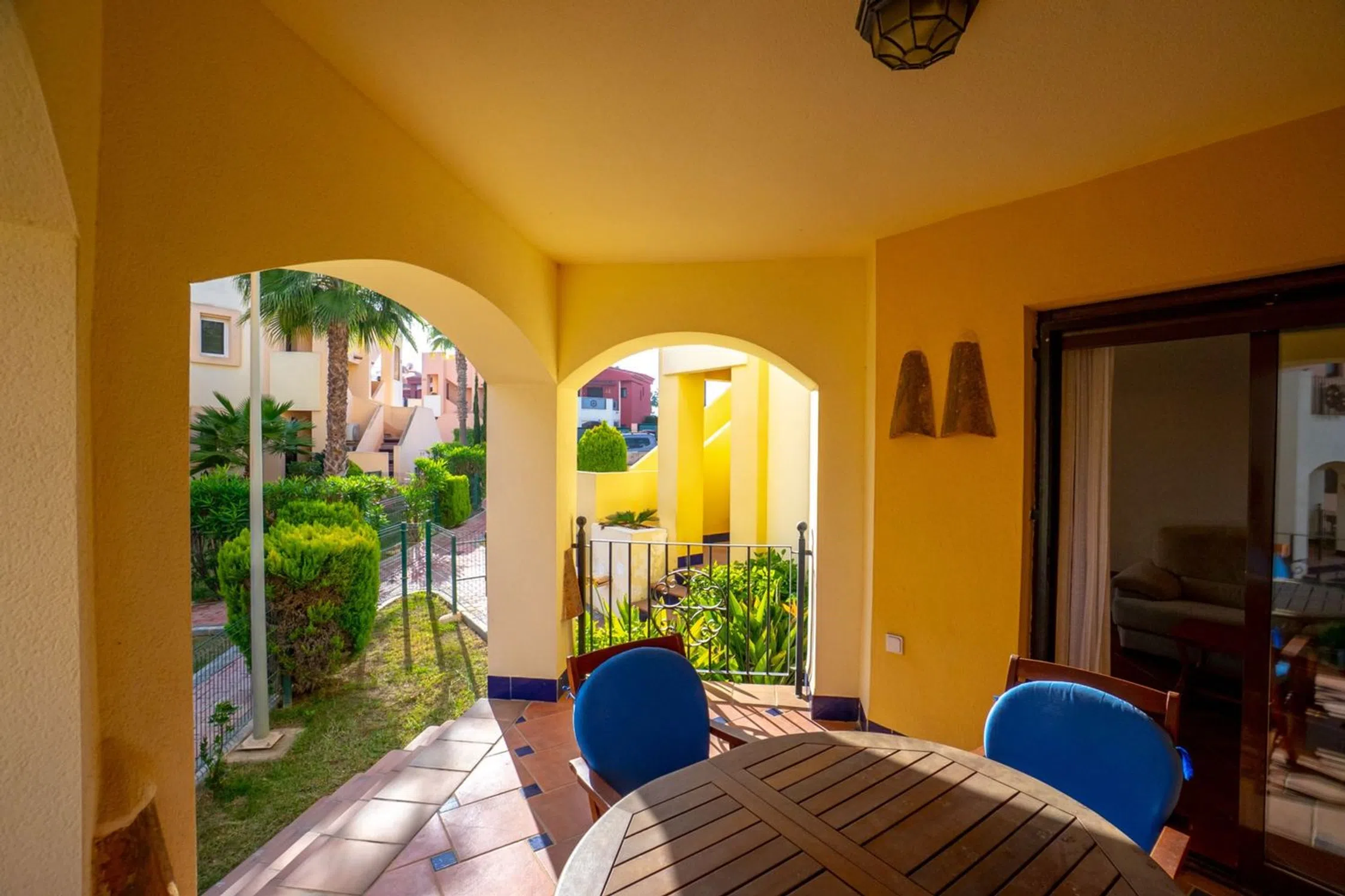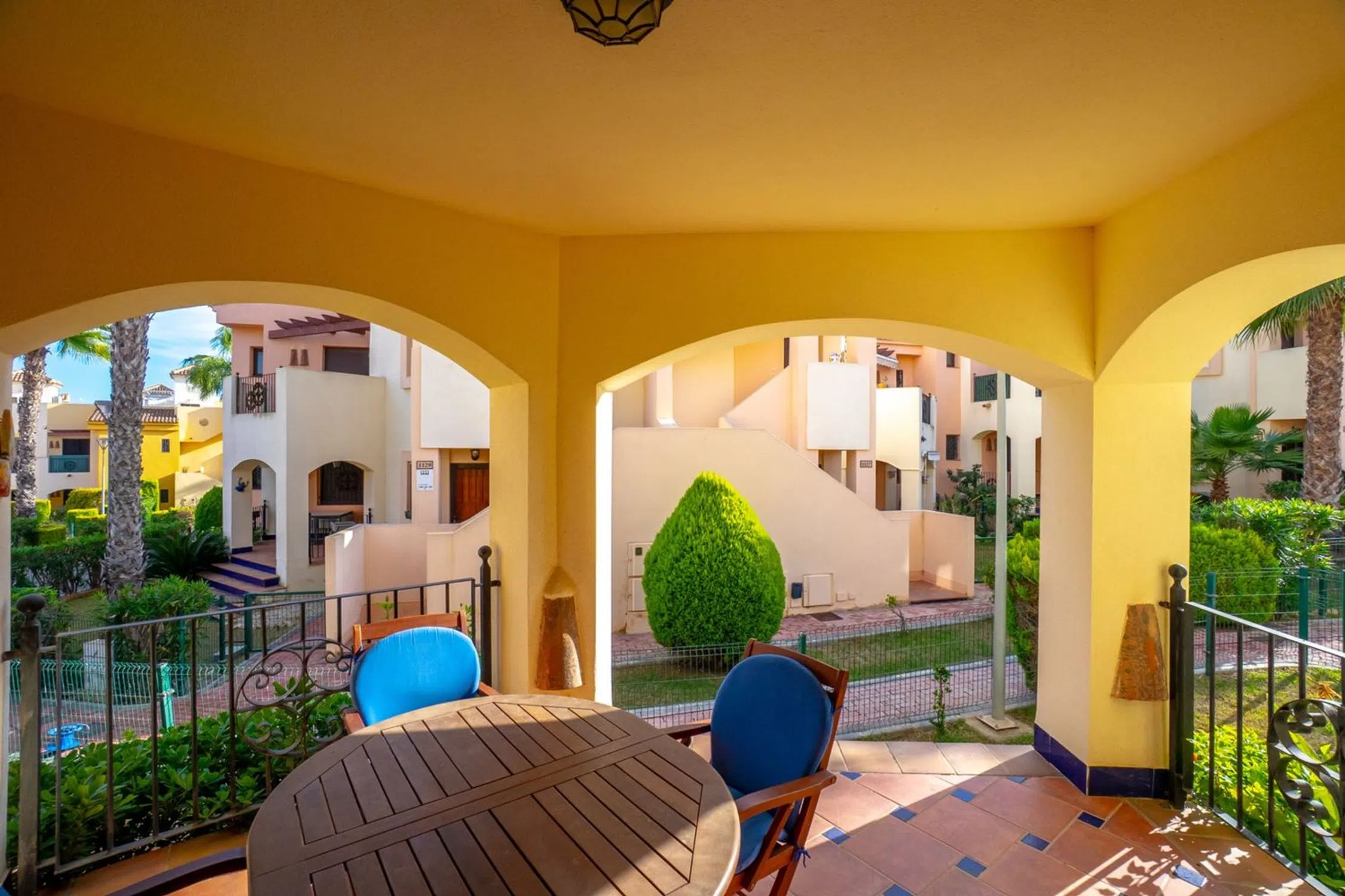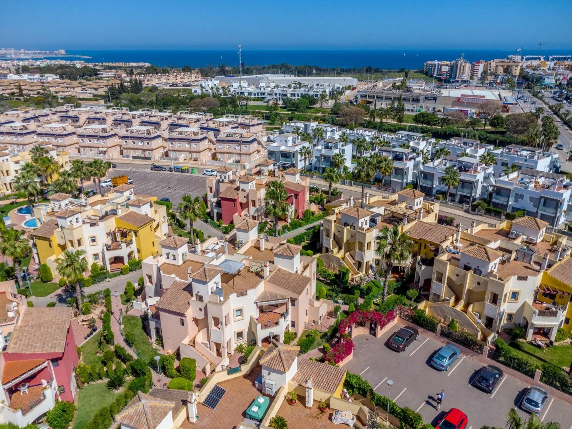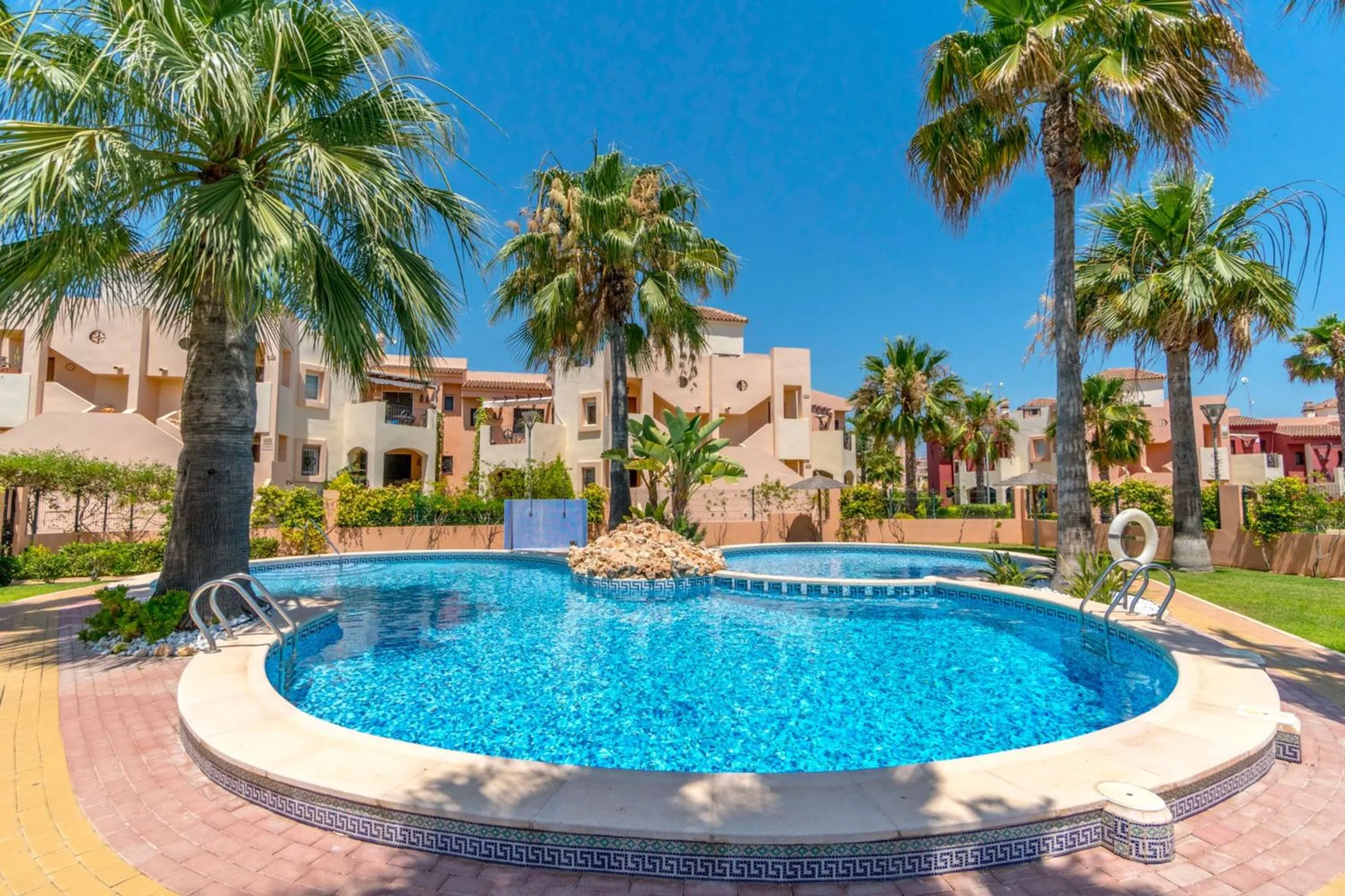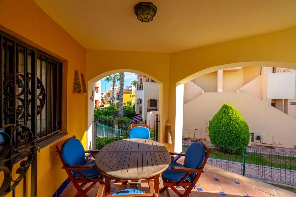 Bienvenido a este maravilloso apartamento en planta baja en la popular y cuidada zona residencial de Punta Marina, en el corazón del popular distrito de Punta Prima de Torrevieja. Aquí vivirá cómodamente con todos los servicios a su alcance, mientras que la zona se caracteriza por su tranquilidad, vegetación y un ambiente agradable. La zona es muy atractiva y ofrece proximidad a todo lo necesario para el día a día, como supermercados, restaurantes, cafeterías, farmacias, bancos, gimnasios y buenas comunicaciones mediante autobús al centro de Torrevieja. En pocos minutos también se puede llegar a las hermosas playas de Punta Prima. Para los más activos, hay campos de golf, pistas de pádel y paseos marítimos a poca distancia. La casa ofrece alojamiento de primera clase con una distribución agradable y bien diseñada, y un fantástico entorno exterior que realza la impresión general. El exuberante jardín, con su soleada orientación sur, es un oasis de relajación y disfrute, perfecto para desayunar o cenar al sol. Justo al lado se encuentra una acogedora terraza donde podrá sentarse a la sombra con un libro o disfrutar de un café en buena compañía. En el interior, le recibe una amplia y luminosa sala de estar con amplio espacio para un sofá y una mesa de comedor, creando un espacio social natural tanto para el día a día como para las fiestas. La cocina independiente está inteligentemente diseñada con amplios armarios y buenas encimeras, perfecta para quienes disfrutan cocinando. Junto a la cocina hay un práctico cuarto adicional con lavadora y calentador de agua, además de opciones de almacenamiento adicionales. La casa cuenta con dos acogedores dormitorios, ambos con armarios empotrados y muy luminosos. El dormitorio más grande cuenta con baño en suite con ducha, lo que proporciona mayor comodidad y privacidad. El segundo baño, bellamente renovado, también cuenta con ducha, lo que facilita el día a día cuando la familia o los invitados están de visita. Uno de los grandes atractivos de la zona es la acogedora zona de piscina, rodeada de cuidados espacios verdes, palmeras ondulantes y aguas cristalinas. Aquí hay mucho espacio para disfrutar del sol, socializar o darse un refrescante chapuzón en los calurosos días de verano. El apartamento también incluye un trastero con llave junto a la puerta principal, ideal para guardar bicicletas, equipo de golf o accesorios de playa. Hay aparcamiento disponible en la zona, sujeto a disponibilidad, y está convenientemente ubicado cerca de la vivienda. Esta es una casa que realmente ofrece comodidad, encanto, ubicación soleada y proximidad a los servicios y está mediada por nosotros en Bjurfors Costa Blanca. Póngase en contacto con nosotros hoy para obtener más información o reservar una visita.
