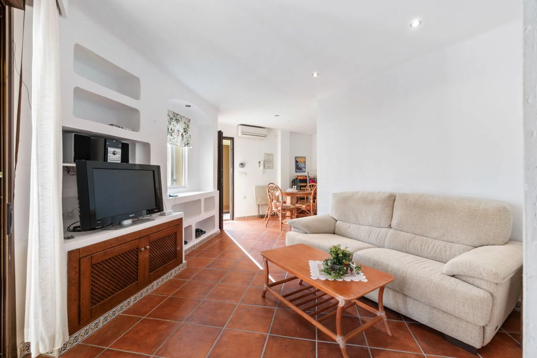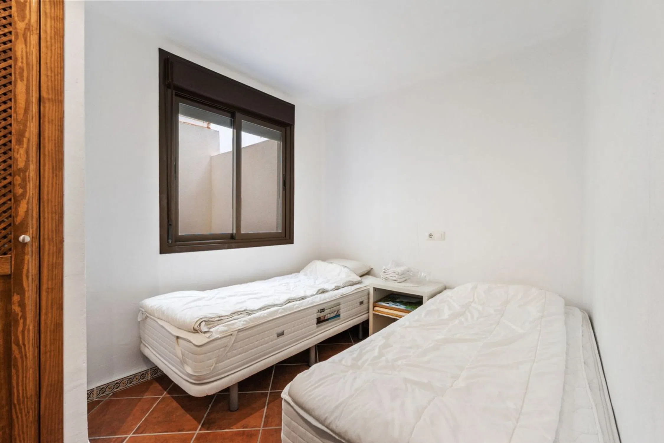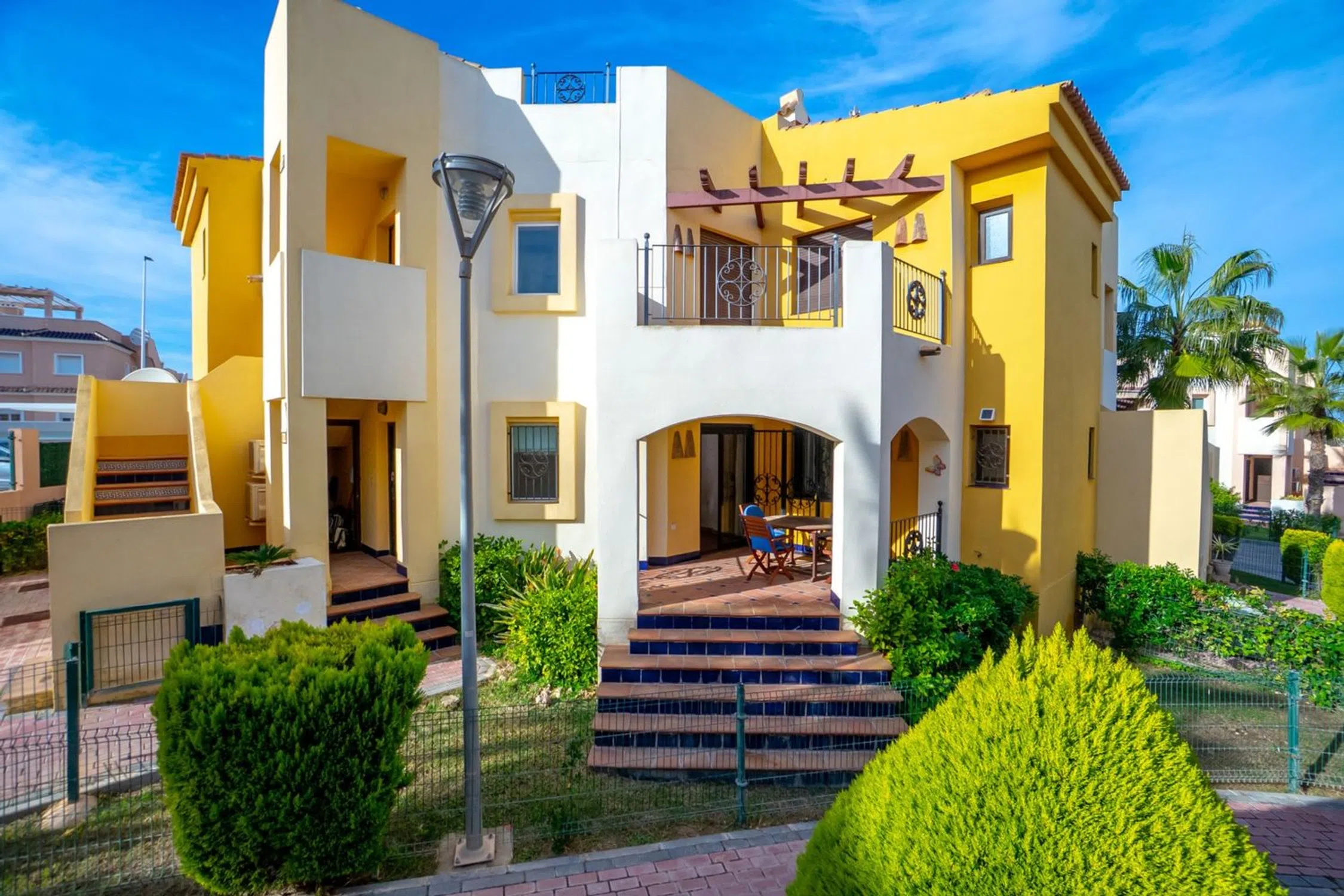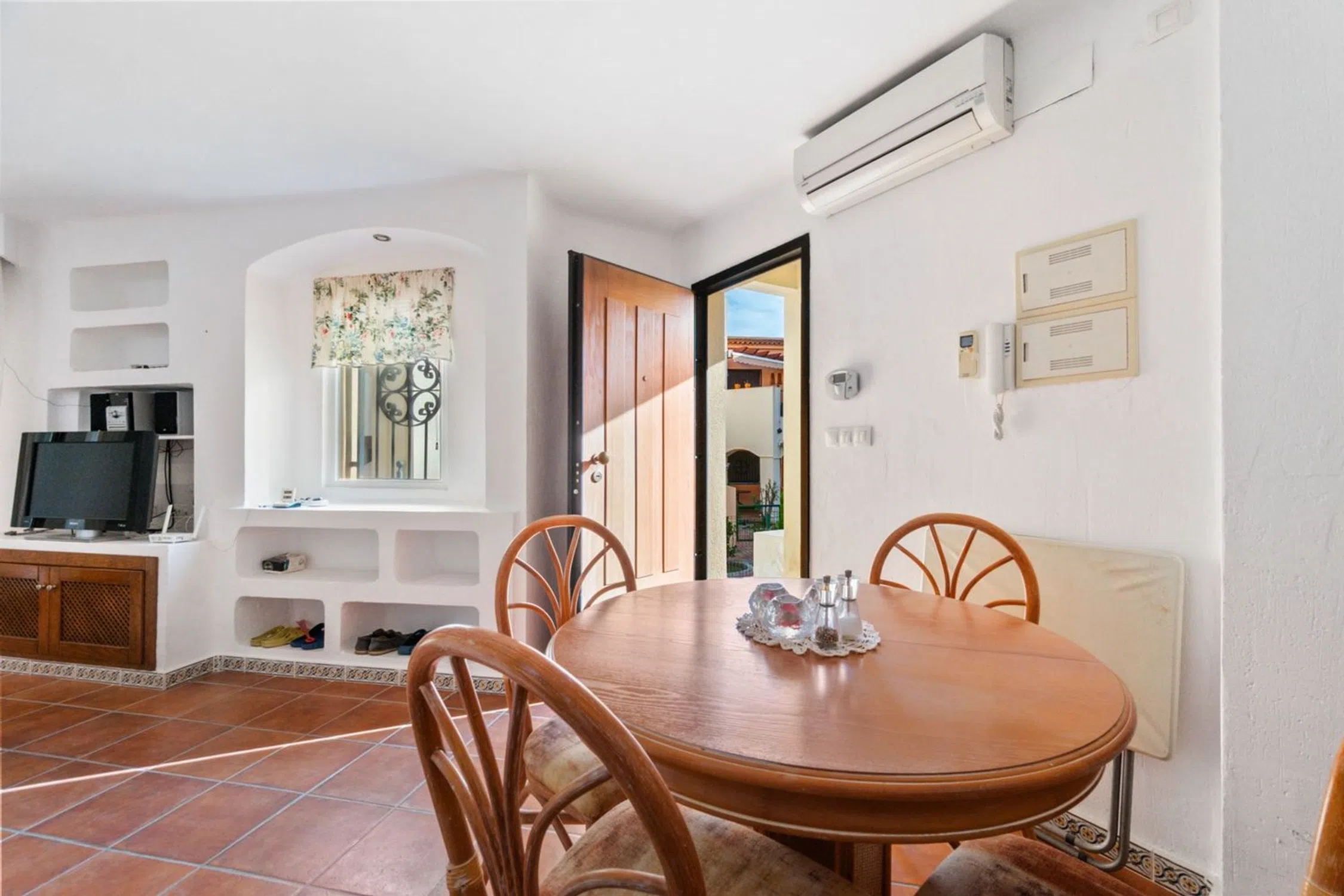 Bienvenido a este maravilloso apartamento en planta baja en la popular y cuidada zona residencial de Punta Marina, en el corazón del popular distrito de Punta Prima de Torrevieja. Aquí vivirá cómodamente con todos los servicios a su alcance, mientras que la zona se caracteriza por su tranquilidad, vegetación y un ambiente agradable. La zona es muy atractiva y ofrece proximidad a todo lo necesario para el día a día, como supermercados, restaurantes, cafeterías, farmacias, bancos, gimnasios y buenas comunicaciones mediante autobús al centro de Torrevieja. En pocos minutos también se puede llegar a las hermosas playas de Punta Prima. Para los más activos, hay campos de golf, pistas de pádel y paseos marítimos a poca distancia. La casa ofrece alojamiento de primera clase con una distribución agradable y bien diseñada, y un fantástico entorno exterior que realza la impresión general. El exuberante jardín, con su soleada orientación sur, es un oasis de relajación y disfrute, perfecto para desayunar o cenar al sol. Justo al lado se encuentra una acogedora terraza donde podrá sentarse a la sombra con un libro o disfrutar de un café en buena compañía. En el interior, le recibe una amplia y luminosa sala de estar con amplio espacio para un sofá y una mesa de comedor, creando un espacio social natural tanto para el día a día como para las fiestas. La cocina independiente está inteligentemente diseñada con amplios armarios y buenas encimeras, perfecta para quienes disfrutan cocinando. Junto a la cocina hay un práctico cuarto adicional con lavadora y calentador de agua, además de opciones de almacenamiento adicionales. La casa cuenta con dos acogedores dormitorios, ambos con armarios empotrados y muy luminosos. El dormitorio más grande cuenta con baño en suite con ducha, lo que proporciona mayor comodidad y privacidad. El segundo baño, bellamente renovado, también cuenta con ducha, lo que facilita el día a día cuando la familia o los invitados están de visita. Uno de los grandes atractivos de la zona es la acogedora zona de piscina, rodeada de cuidados espacios verdes, palmeras ondulantes y aguas cristalinas. Aquí hay mucho espacio para disfrutar del sol, socializar o darse un refrescante chapuzón en los calurosos días de verano. El apartamento también incluye un trastero con llave junto a la puerta principal, ideal para guardar bicicletas, equipo de golf o accesorios de playa. Hay aparcamiento disponible en la zona, sujeto a disponibilidad, y está convenientemente ubicado cerca de la vivienda. Esta es una casa que realmente ofrece comodidad, encanto, ubicación soleada y proximidad a los servicios y está mediada por nosotros en Bjurfors Costa Blanca. Póngase en contacto con nosotros hoy para obtener más información o reservar una visita.