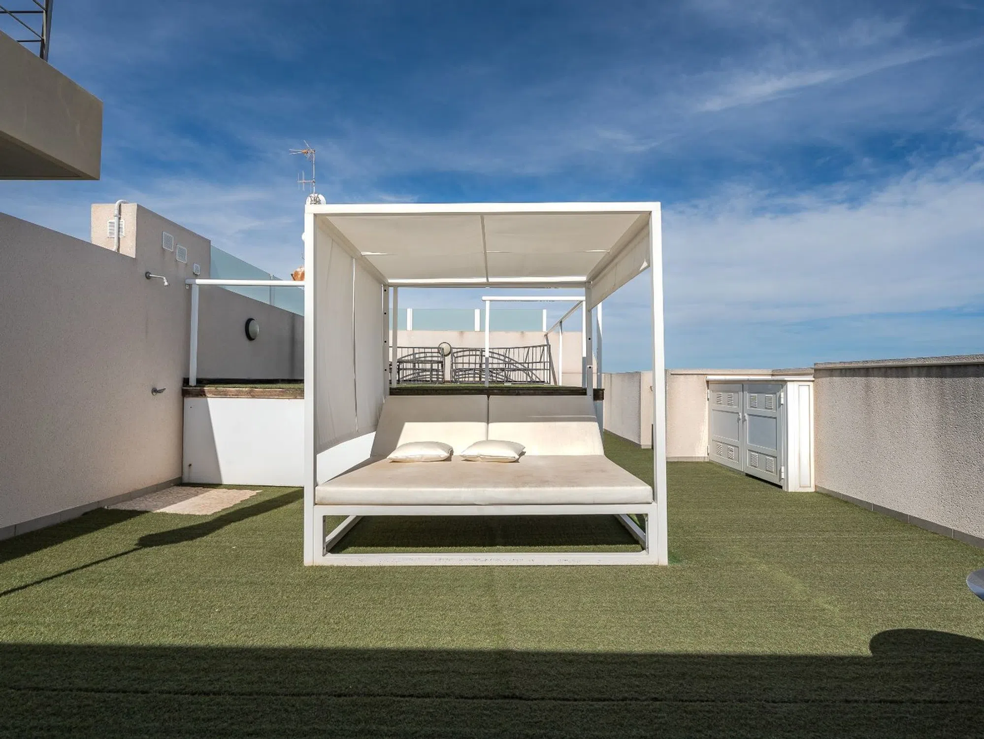 Royal Park Green Spa – Lomas de Cabo Roig Bienvenido a este excepcional ático ubicado en el prestigioso Royal Park Green Spa en Lomas de Cabo Roig, un complejo residencial cuidadosamente mantenido y conocido por sus exuberantes jardines, completas instalaciones de spa y su ambiente tranquilo. La propiedad incluye una plaza de aparcamiento subterránea y un trastero privado, ofreciendo comodidad y funcionalidad. El ático cuenta con una distribución amplia y moderna con tres dormitorios y dos baños. El dormitorio principal dispone de baño en suite y acceso directo a un balcón privado, mientras que los otros dos dormitorios comparten el acceso a un exclusivo balcón lateral, una característica poco común dentro del complejo. Este espacio exterior adicional permite disfrutar del sol de la tarde o relajarse a la sombra, según el momento del día. El salón y comedor de concepto abierto es luminoso y acogedor, con grandes ventanales que inundan la vivienda de luz natural. La cocina, diseñada a medida, combina estilo y funcionalidad, y está equipada con electrodomésticos de alta calidad, incluyendo frigorífico con dispensador de hielo y sistema de agua filtrada independiente, además de soluciones de almacenamiento bien planificadas. Un lavadero independiente aporta mayor comodidad. El verdadero atractivo de este ático es su impresionante terraza privada en la azotea, que ofrece espectaculares vistas al mar hasta La Manga. Diseñada para el descanso y el entretenimiento, la terraza cuenta con una plataforma elevada para mejorar las vistas, espacio de almacenamiento adicional y un frigorífico exterior integrado. También existe espacio suficiente para instalar un jacuzzi, convirtiéndola en el lugar ideal para disfrutar de tardes soleadas y veladas inolvidables. Para un confort óptimo durante todo el año, la vivienda está equipada con un nuevo sistema de aire acondicionado central Mitsubishi y suelo radiante en ambos baños. Se vende completamente amueblada, excluyendo objetos personales, y está lista para disfrutar de inmediato. Royal Park Green Spa ofrece un estilo de vida excepcional, con acceso a una amplia gama de instalaciones de bienestar y ocio, incluyendo piscina exterior, jacuzzi exterior, piscina cubierta climatizada, sauna finlandesa, baño turco, gimnasio y zona de spa, todo ello rodeado de zonas comunes ajardinadas y tranquilas. Aunque el complejo dispone de una azotea comunitaria, esta se utiliza muy poco, ya que este ático cuenta con su propia terraza privada. La comunidad es tranquila y acogedora, con un ambiente internacional y varios vecinos noruegos. Lomas de Cabo Roig es una de las zonas más demandadas de Orihuela Costa, ofreciendo el equilibrio perfecto entre tranquilidad y accesibilidad. Algunas de las mejores playas de la Costa Blanca, como Cabo Roig, La Zenia y Campoamor, se encuentran a pocos minutos en coche. Además, varios campos de golf de prestigio, como Las Ramblas, Villamartín y Campoamor Golf, están situados a menos de diez minutos. El conocido centro comercial Zenia Boulevard, con una amplia selección de tiendas, restaurantes y cafeterías, se encuentra muy cerca, al igual que supermercados y restaurantes locales a poca distancia a pie. Gracias a su excelente conexión con la autopista AP-7, tanto el Aeropuerto de Alicante como el Aeropuerto Internacional de Murcia están a menos de una hora, lo que convierte a este ático en una opción ideal tanto como residencia habitual, vivienda vacacional o inversión en una de las zonas más atractivas de la Costa Blanca.