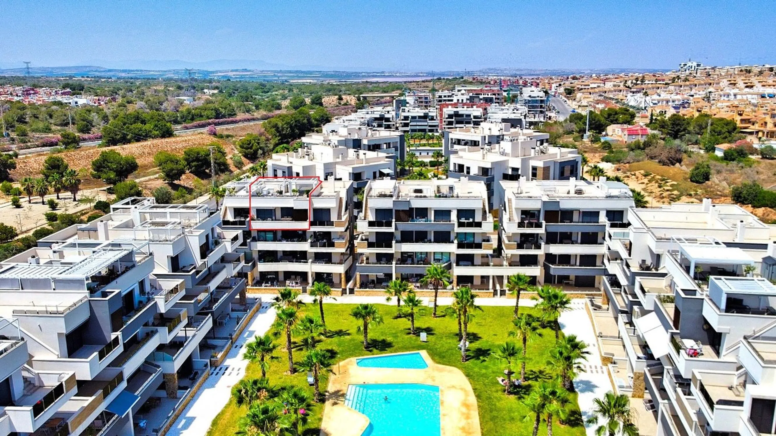 Ático de lujo en Los Almendros, Orihuela Costa: Tu oasis privado con jacuzzi y solárium infinito Descubra el equilibrio perfecto entre modernidad y bienestar en este espectacular ático ubicado en el exclusivo complejo Amanecer IX, en Los Altos (Orihuela Costa). Espacios que enamoran: Con una distribución inteligente de 71 m², la vivienda cuenta con 2 dormitorios y 2 baños diseñados con una estética elegante y contemporánea. El salón, bañado por la luz natural, se integra con una cocina abierta y conecta directamente con un balcón de 21 m², ideal para sus desayunos al sol. El factor "Wow": El verdadero tesoro se encuentra en la planta superior: un solárium privado de 80 m². Un espacio diseñado para el máximo relax, equipado con un jacuzzi privado bajo una pérgola de diseño y zonas de sombra para disfrutar de la brisa mediterránea con total privacidad durante todo el año. Confort de última generación: La propiedad está equipada con sistema Airzone (control de temperatura independiente por estancia) y se entrega parcialmente amueblada con piezas de estilo moderno y funcional. Vida de resort: El complejo Amanecer IX ofrece instalaciones de primer nivel: piscina comunitaria, gimnasio totalmente equipado y sauna. Todo ello en Los Altos, una zona privilegiada por su tranquilidad y cercanía a las mejores playas y servicios de la Costa Blanca.