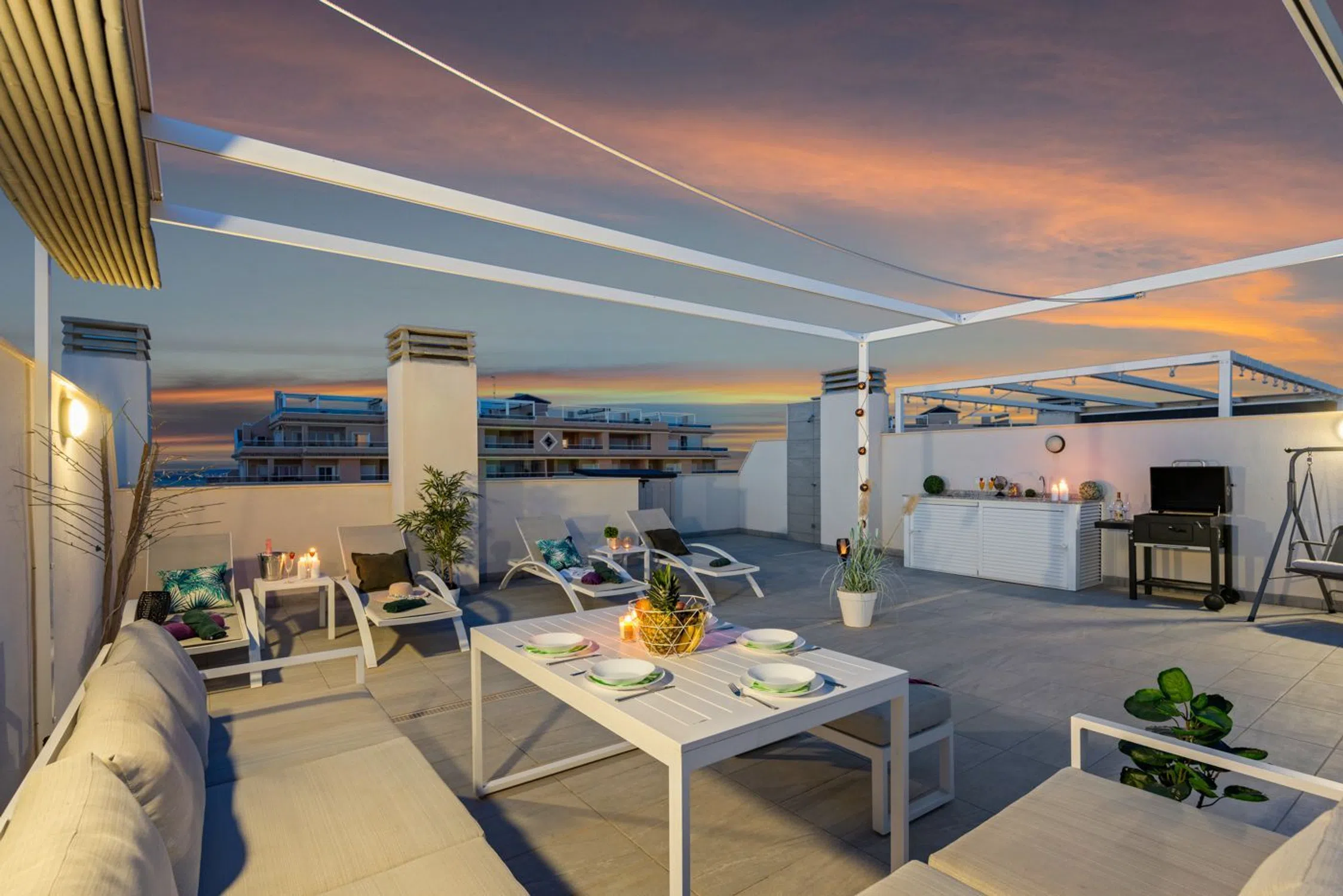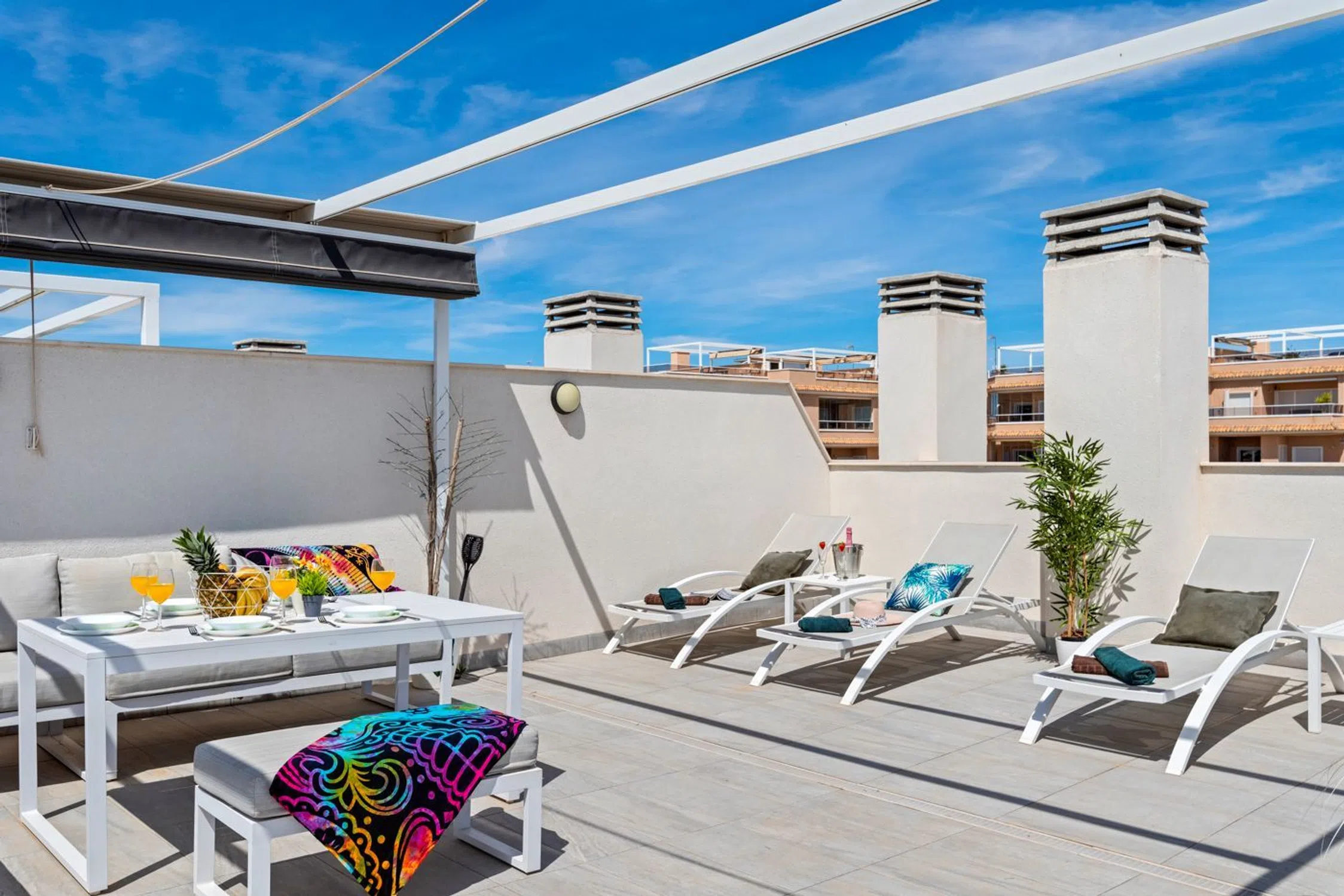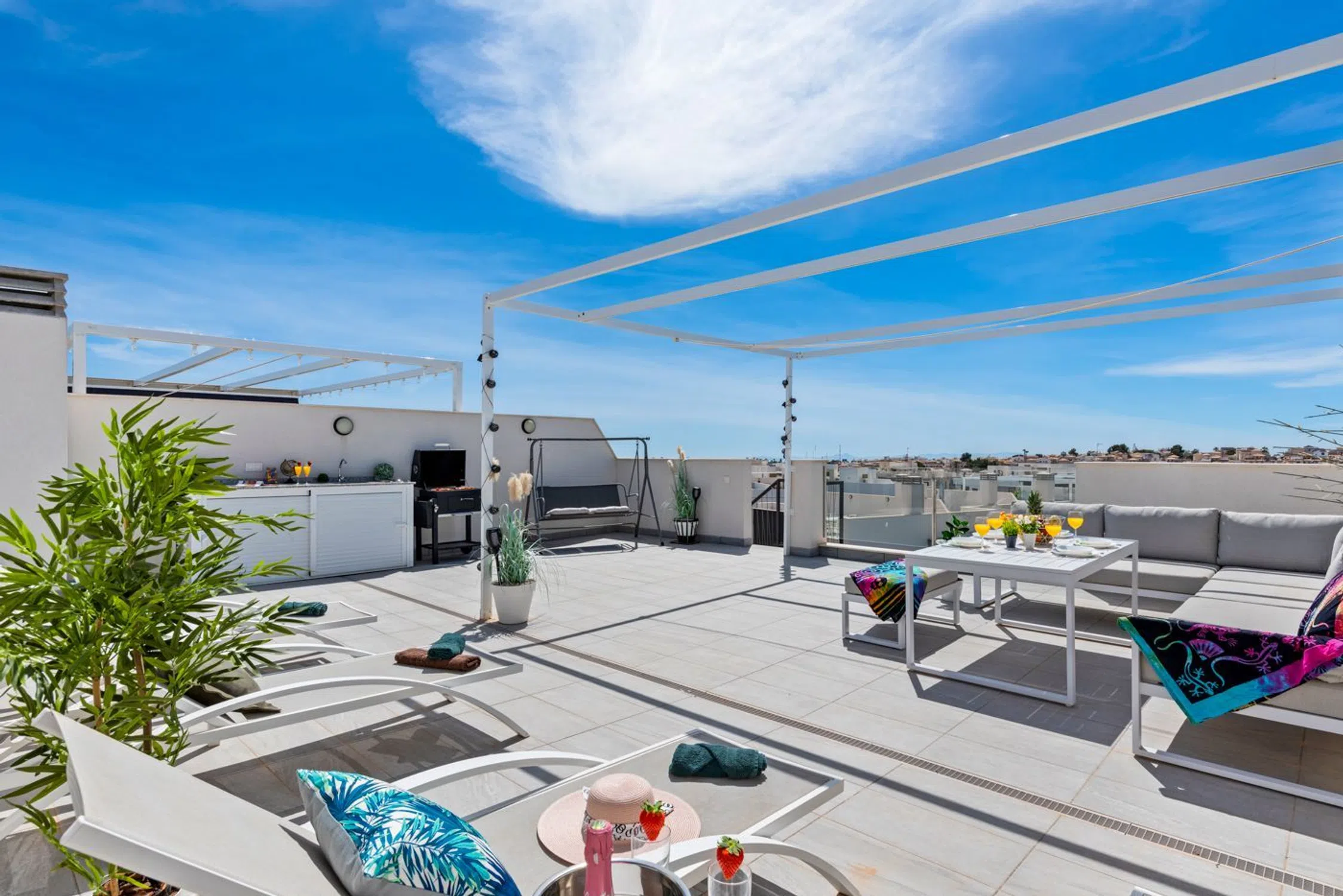 Impresionante ático con amplia azotea y vistas panorámicas en Villamartín, Orihuela Costa ¡No pierda esta oportunidad única! Este impresionante ático se encuentra en la codiciada Villamartín, Orihuela Costa, y ofrece una excepcional combinación de lujo, comodidad y ubicación. La propiedad se ofrece completamente amueblada y cuenta con dos amplios dormitorios y dos baños, uno de ellos en suite. Al entrar, accederá inmediatamente al luminoso y acogedor salón, que se integra a la perfección con la moderna cocina americana. Gracias a los amplios ventanales, disfrutará de abundante luz natural. En la parte delantera del salón se encuentra una espaciosa terraza orientada al sur con impresionantes vistas a las piscinas comunitarias. Desde esta terraza, una escalera conduce a la joya de la corona de la propiedad: la enorme azotea, donde podrá disfrutar de impresionantes vistas panorámicas al mar, la montaña y los alrededores: el lugar perfecto para relajarse o disfrutar de largas tardes de verano. Características de la propiedad: • Orientación sur • Totalmente amueblada • Dos dormitorios • Dos baños, uno en suite • Ubicada en un resort de lujo en Villamartín, Orihuela Costa • Dos amplias piscinas comunitarias • Jacuzzi • Gimnasio al aire libre • Aparcamiento subterráneo privado • Lista para entrar a vivir • A poca distancia de todos los servicios, como tiendas, bares y restaurantes • Cerca de varios campos de golf, La Zenia Boulevard y las hermosas playas de arena blanca de Orihuela Costa Una propiedad ideal como residencia permanente, casa de vacaciones o inversión. ✨.