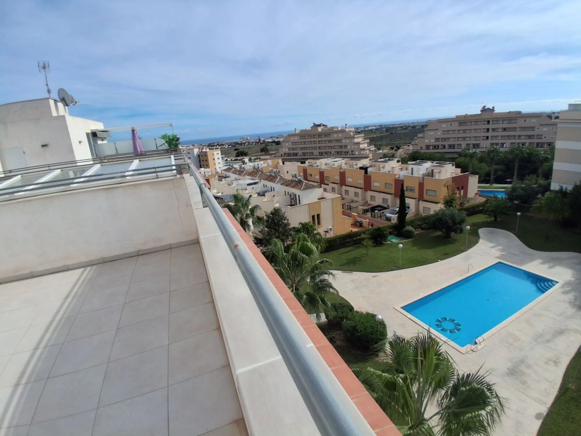 Espectacular Ático diseño moderno con Terraza y Solárium con Vistas al Mar y a Piscina cerca de Zenia Boulevard, Orihuela Costa, Alicante ESPECTACULAR ÁTICO CON TERRAZA Y SOLARIUM CON VISTAS AL MAR JUNTO A ZENIA BOULEVARD DISEÑO MODERNO Situado en zona residencial muy tranquila, andando a todo tipo de Servicios, como Parada de Bus, Supermercados, Farmacia, Colegios, a menos de 10 minutos a pie de Centro Comercial Zenia Boulevard, a 3 km de la Playa de La Zenia y a 2 km del Campo de Golf de Villamartin. La vivienda está construida en una urbanización privada, perimetralmente vallada, con Aparcamiento para residentes, Piscina y Jardines. Se trata de un Ático en Tercera Planta con ascensor. Entrada Hall, dormitorio doble en suite completo, dormitorio doble muy amplio, baño completo, Salón amplio con Cocina Francesa abierta y acceso directo a Terraza con Vistas directas a Piscina y al Mar. Orientación Sur. Muy Bien cuidado. Muy Buena Inversión.