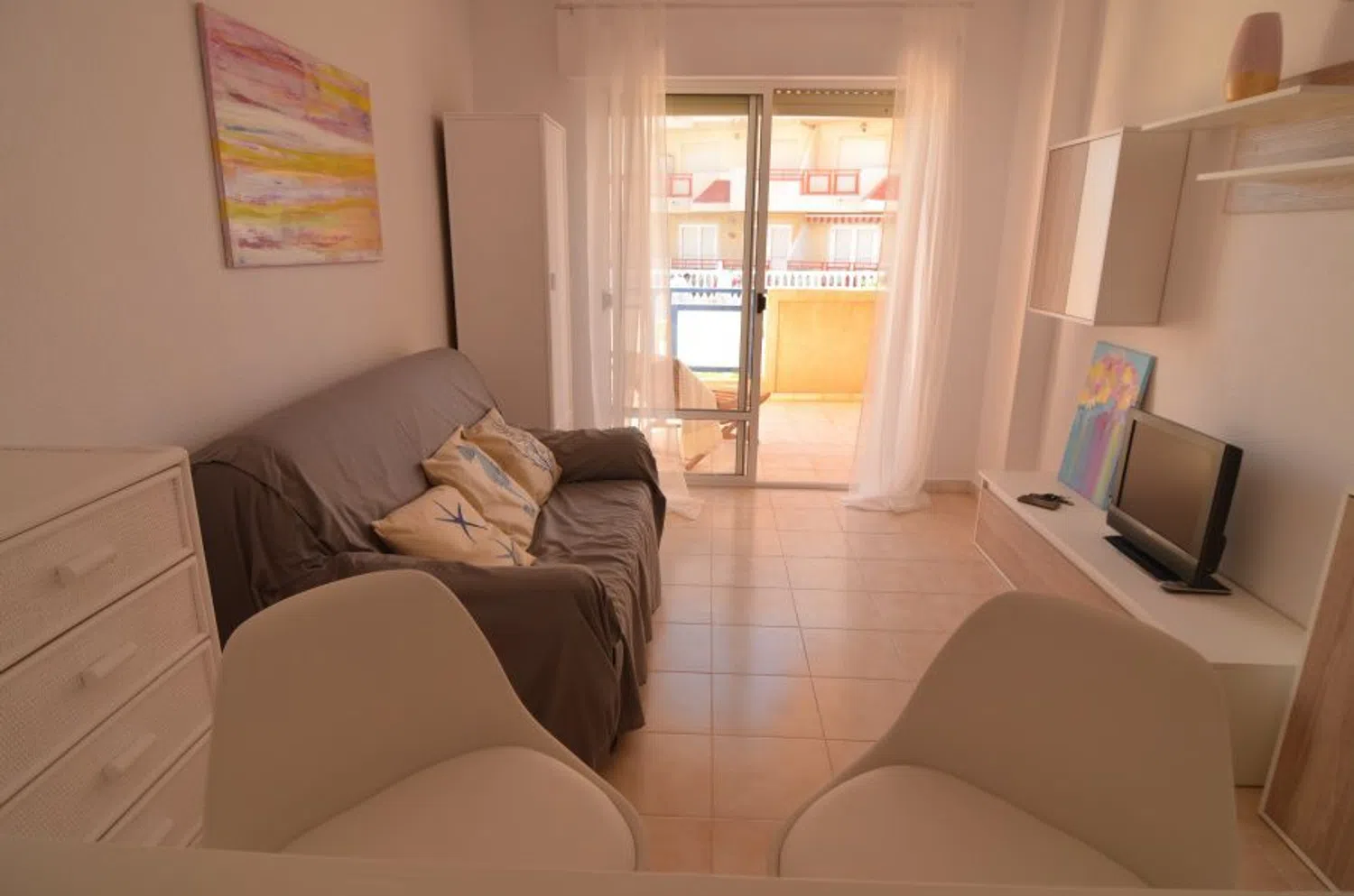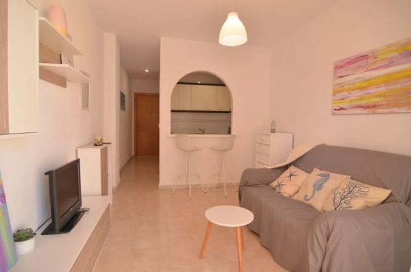 Le presentamos este encantador apartamento en planta baja, ubicado en primera línea de playa y con vistas espectaculares al mar. La vivienda cuenta con 28 m2 increíblemente bien distribuidos, dispone de un acogedor salón-comedor, amueblado con un sofá que se puede convertir en cama, ofreciendo comodidad adicional. Desde la terraza, podrá disfrutar de unas impresionantes vistas al mar, un lugar perfecto para relajarse, disfrutar de una agradable velada o tomar el sol. La cocina, equipada con electrodomésticos cómodos y funcionales, además, cuenta con una práctica barra americana con dos taburetes, ideal para comidas informales. El baño está equipado con una bañera, fácil de airear pues cuenta con ventana propia. El estudio se encuentra en uno de los bloques más cercanos a la playa, una de las mejores de la zona, con bandera azul, una ubicación excepcional debido a que, según las nuevas normativas, los nuevos edificios deben estar más distantes del mar. Esta cercanía lo hace especialmente valioso, ya que disfrutar de una vista o acceso directo al mar ya no es posible para nuevas construcciones debido a las restricciones. Es una oportunidad única de estar tan cerca del mar. La zona cuenta con fácil aparcamiento. El apartamento se encuentra en la urbanización Mil Palmeras junto a Campoamor, una zona tranquila que está perfectamente conectada cerca de todos los servicios esenciales: supermercado, farmacia, banco y restaurantes. Además, se encuentra junto al paseo marítimo, ideal para dar paseos mientras disfruta de la brisa marina, o bien explorar la extensa zona verde de los alrededores.