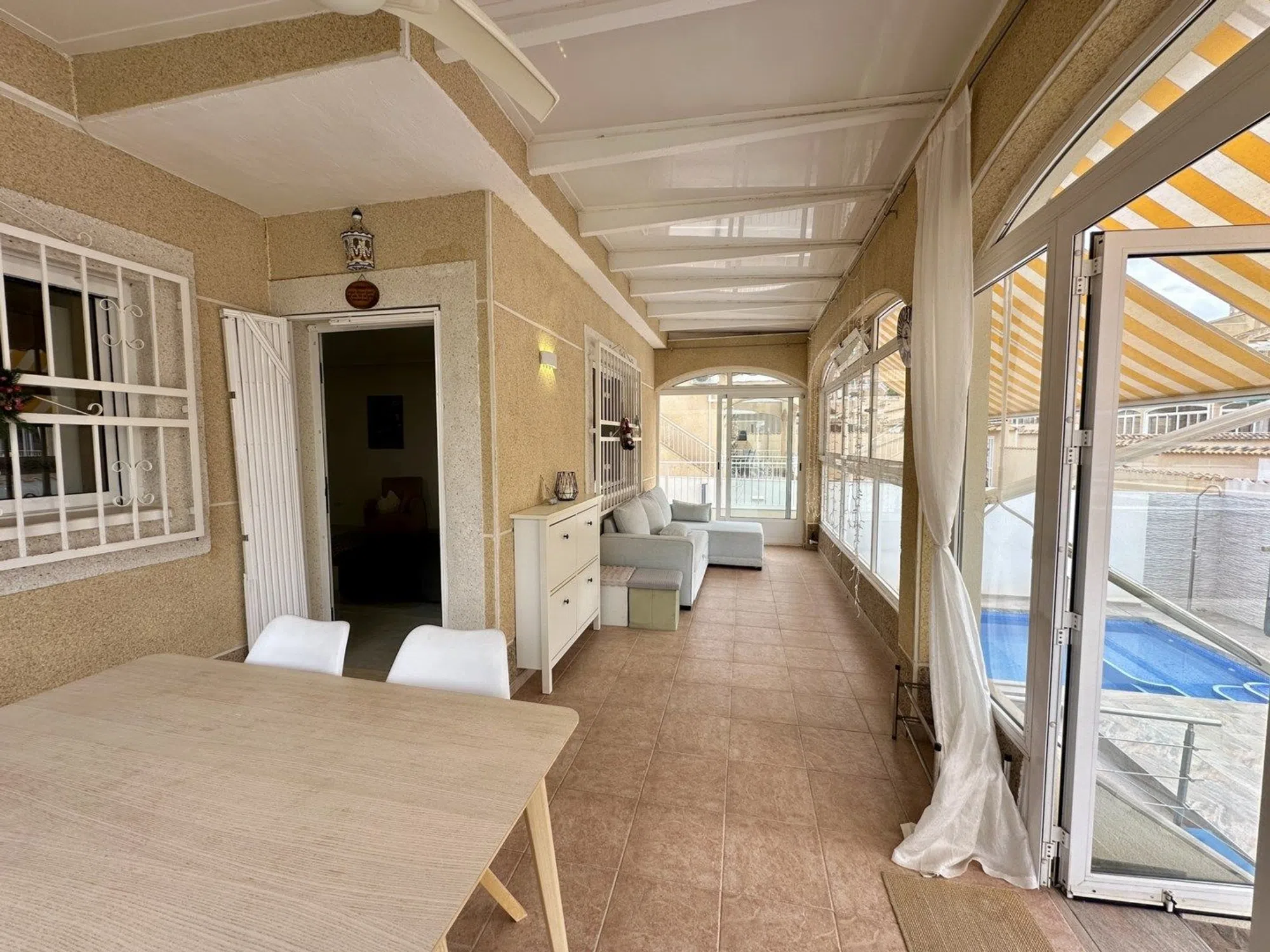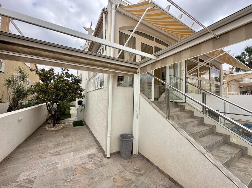 Nos complace presentar esta villa independiente renovada con buen gusto en una ubicación privilegiada en el popular Los Altos. Aquí vivirá a poca distancia a pie de todos los servicios de la zona, mientras que la casa ofrece un ambiente tranquilo y privado. Gracias a su soleada orientación sur, la villa disfruta de abundante luz natural durante la mayor parte del día, creando un ambiente cálido y acogedor desde la mañana hasta la noche. En su interior, la casa ofrece tres dormitorios con armarios empotrados y tres baños, distribuidos en amplios espacios bien distribuidos. Dispone de dos agradables salones con comedor, ambos equipados con chimenea, que aportan carácter y comodidad. Las dos cocinas totalmente equipadas, una de las cuales ha sido recientemente renovada con electrodomésticos nuevos, hacen que la casa sea aún más versátil. El aire acondicionado y los radiadores eléctricos están instalados en toda la casa para garantizar un clima interior agradable durante todo el año. Las zonas exteriores son igual de atractivas, con varias terrazas privadas que invitan a relajarse y socializar. También hay aparcamiento, una ducha exterior y una atractiva piscina de agua salada, perfecta para disfrutar al máximo de la vida mediterránea. Uno de los puntos fuertes de la casa es el amplio sótano renovado, accesible tanto desde el interior como desde el exterior. Este espacio versátil alberga una cocina totalmente equipada, una sala de estar, un baño y una sauna, lo que lo convierte en el lugar ideal para invitados, para disfrutar de sus aficiones o como zona de relax privada. En la planta superior hay una amplia azotea donde podrá relajarse y disfrutar del sol. También hay una terraza acristalada que se puede utilizar todo el año. Los Altos se encuentra a solo cinco kilómetros del centro de Torrevieja y ofrece todo lo necesario para el día a día, como grandes supermercados, colegios, cafeterías, restaurantes, correos y buenas conexiones de autobús. Se puede llegar a la Isla Esmeralda en unos siete minutos en coche o quince minutos a pie. La playa más cercana está a diez minutos en coche, al igual que el centro comercial La Zenia Boulevard, mientras que Villamartín Plaza está a solo cinco minutos en coche. Esta vivienda combina comodidad, ubicación y calidad de vida de la mejor manera. ¡Le invitamos a contactarnos en Notar para una visita!