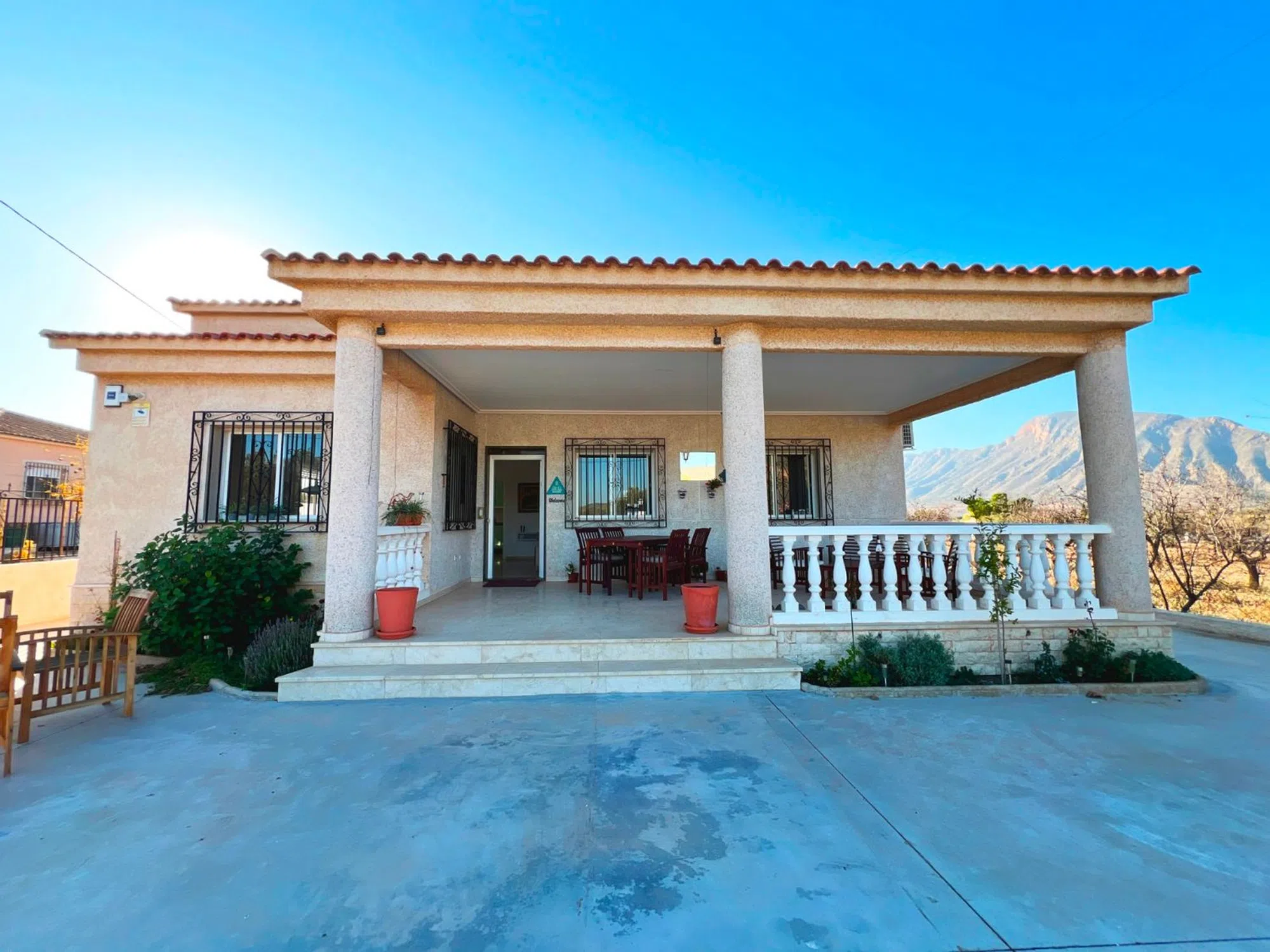 NO SE ALQUILA. A solo 2 km de Hondón de los Frailes, en la tranquila pedanía de Barbarroja, se encuentra esta acogedora villa rodeada de montañas y una atmósfera serena que invita al descanso. Barbarroja goza de un entorno natural espectacular, ideal para desconectar del ajetreo de la ciudad, pero a su vez bien conectada: Elche y su famoso centro comercial Aljub están a tan solo 30 km, mientras que las playas doradas de la Costa Blanca, Alicante, y el aeropuerto se encuentran a menos de 40 minutos en coche. Al llegar, serás recibido por un camino totalmente asfaltado que te lleva a una parcela perfectamente cuidada, adornada con olivos y árboles frutales. En el porche, con vistas a las majestuosas montañas, podrás relajarte con un buen libro, disfrutar de una copa de vino o una limonada, o simplemente contemplar las noches estrelladas que caracterizan este rincón del Mediterráneo. La Villa: El interior de la villa es un espacio acogedor, diseñado para combinar confort y practicidad. El salón comedor, amplio y luminoso, cuenta con chimenea y aire acondicionado frío/calor, creando un ambiente ideal durante todo el año. Desde aquí, accedemos a una cocina completamente equipada que conecta con un patio exterior, perfecto para las reuniones familiares. En el patio, la cocina de verano y barbacoa invitan a organizar largas veladas al aire libre. Desde esta zona accedemos a un alojamiento adicional, ideal para huéspedes, que incluye una habitación y un baño. Además, encontrarás otra estancia que actualmente se utiliza como trastero, pero que fácilmente puede convertirse en un dormitorio adicional o un espacio de ocio. La casa principal dispone de 3 habitaciones con aire acondicionado y 1 baño completo, además de beneficiarse de 8 placas solares y un calentador eléctrico. El exterior de la propiedad es tan práctico como encantador. Un garaje independiente de 81 m² ofrece espacio más que suficiente para vehículos o incluso para un taller. La parcela, completamente de hormigón fratasado, cuenta con espacio para estacionar autocaravanas, con dos accesos asfaltados que facilitan la movilidad. La casa está conectada a la red eléctrica y también al alcantarillado. Esta villa en Barbarroja es el lugar perfecto para quienes buscan un hogar en plena naturaleza, con todas las comodidades y a una corta distancia de los servicios esenciales. ¿Te imaginas viviendo aquí? ¡No pierdas la oportunidad de descubrir esta joya mediterránea! .