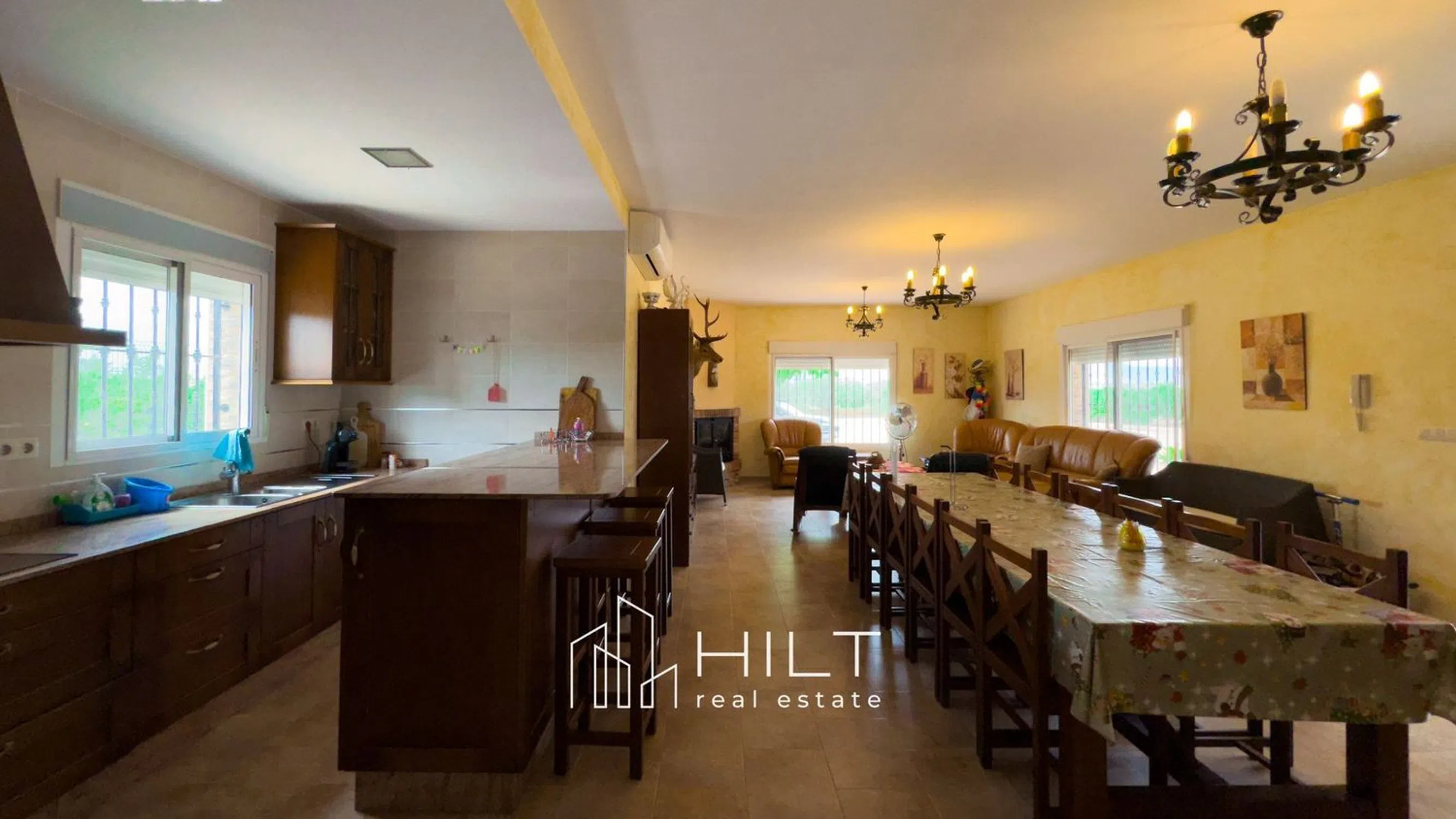 Con una parcela de 2.645 m² y una vivienda principal de 115 m², esta propiedad independiente ofrece espacio, comodidad y entorno natural a solo 10 minutos de Orihuela y con acceso directo a la autovía Alicante–Murcia. La finca está completamente vallada y combina zonas ajardinadas con vegetación autóctona —incluyendo palmeras, olivos y árboles frutales— con amplias superficies despejadas, lo que facilita el aparcamiento de varios vehículos o caravanas sin restricciones. Tanto el interior como el exterior han sido diseñados para requerir un mantenimiento mínimo, ideal para quienes buscan disfrutar sin preocupaciones. La casa se distribuye en una sola planta y cuenta con un salón comedor luminoso conectado a una cocina moderna y funcional. Dispone de un dormitorio doble con armario empotrado y un baño completo en el interior. En el exterior hay dos baños adicionales, uno junto al porche y otro junto al cenador, para mayor comodidad. La zona exterior está pensada para el uso diario. La piscina privada de 45 m² se encuentra junto a una zona de barbacoa y un cenador cubierto con una construcción auxiliar equipada con electricidad, ideal como espacio de invitados, trastero o zona de trabajo. El amplio porche cubierto permite crear una segunda habitación o simplemente disfrutar de un espacio de sombra al aire libre. La propiedad cuenta con calefacción por bomba de frío/calor, placas solares, iluminación exterior y una excelente orientación en las cuatro direcciones, lo que garantiza luz natural y buena ventilación durante todo el día. Su ubicación permite también llegar a las playas más cercanas en solo 20 minutos y al aeropuerto de Alicante en aproximadamente 45 minutos por carretera. Una vivienda lista para ser disfrutada todo el año, ya sea como residencia habitual o como refugio en plena naturaleza, con amplitud y buenas conexiones. [IW].